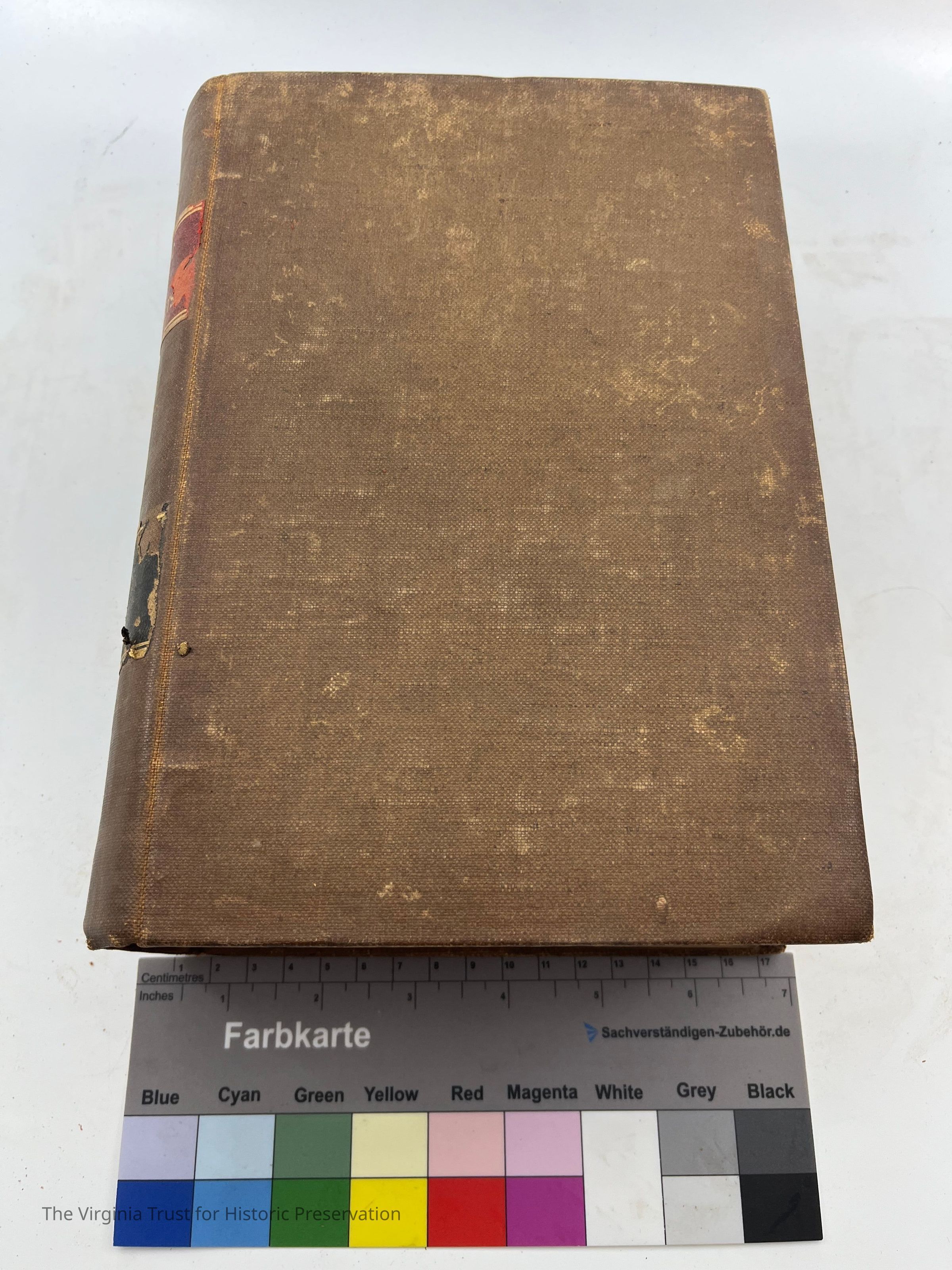 Dark brown, good binding, readable spine