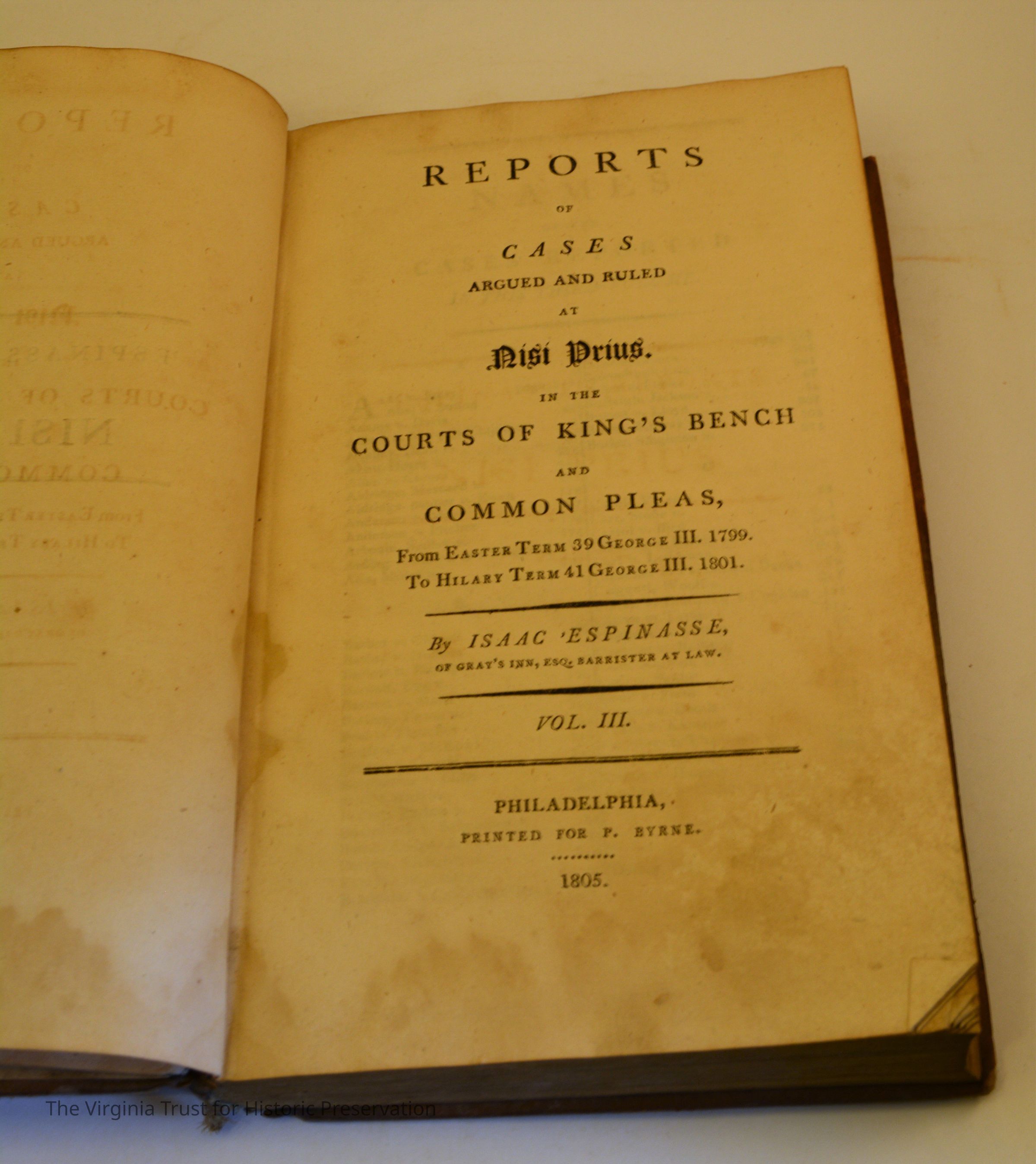 Espinasse, Isaac. Reports of Cases Argued and Ruled at Nisi Prius. In the Courts of King's Bench and Common Pleas, From Easter term 39 George III. 1799. To Hilary Term 41 George III. 1801. Vol. III. Philadelphia: P. Byrne, 1805.