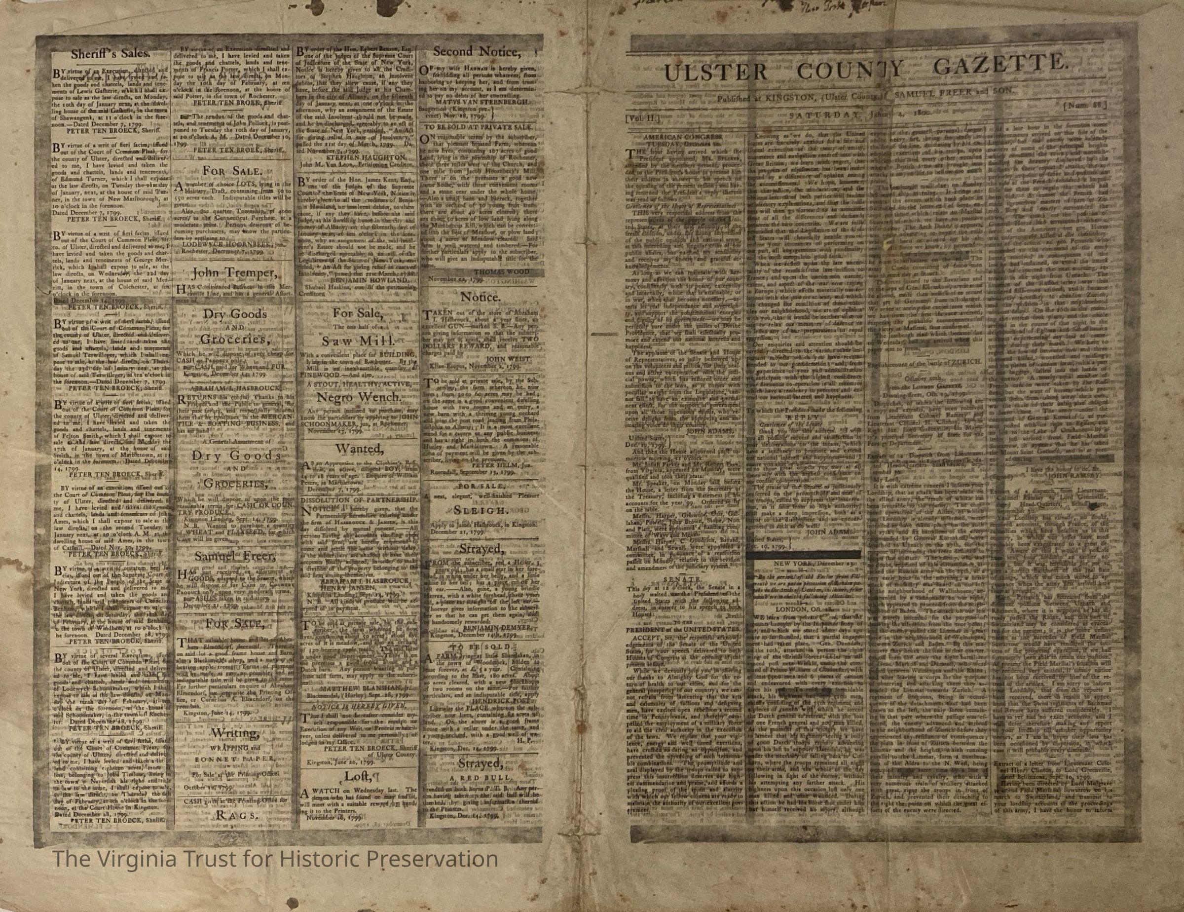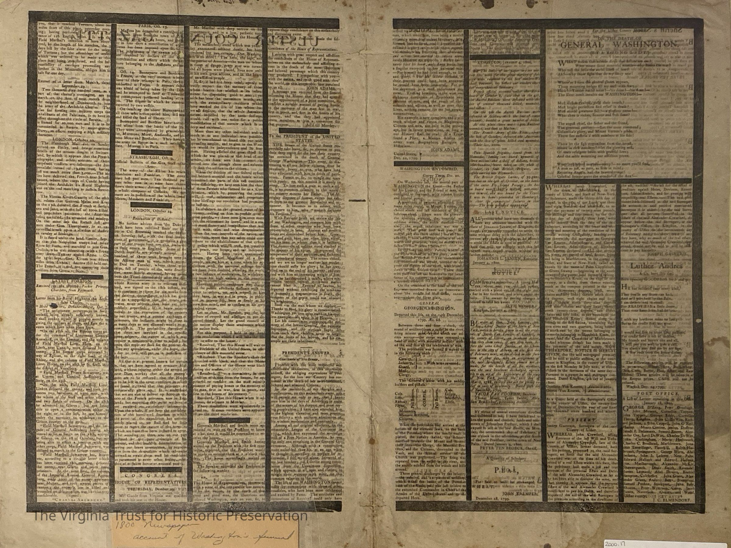 Original publication by the Ulster County Gazette (est. in Kingston, New York in 1798) that has a report on George Washington's Funeral. The date of the gazette is January 4, 1800. George Washington passed away on December 14, 1799.
