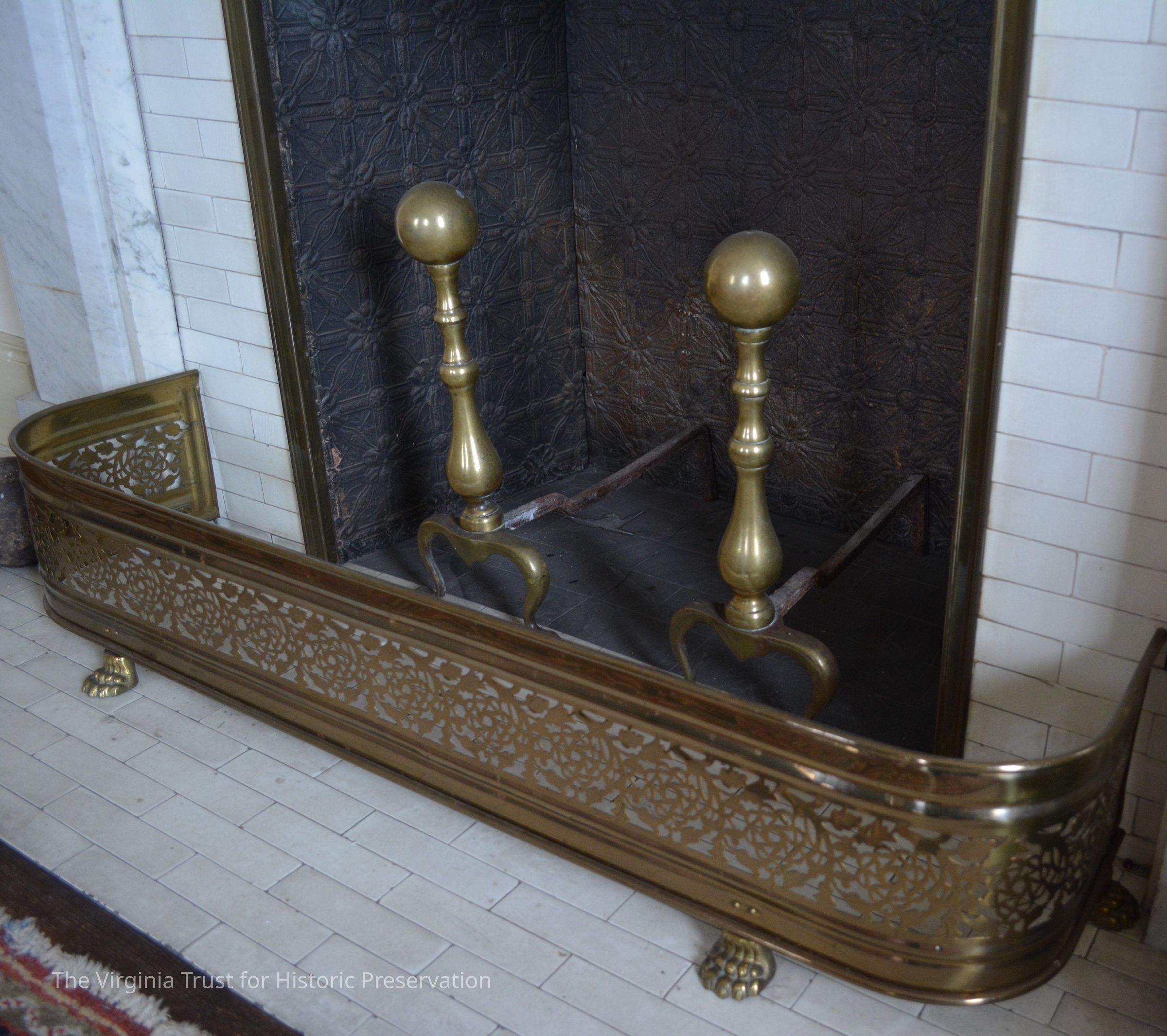 Pair of brass andirons with large balls on top. Baluster form. American.