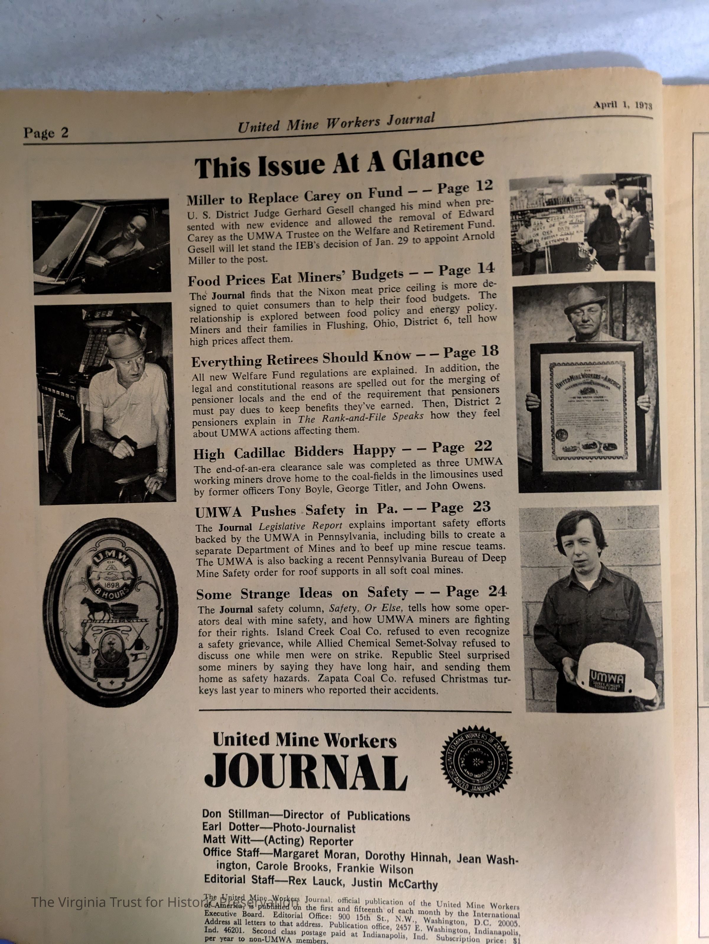 United Mine Workers Journal, 84th Year, No. 5, April 1, 1973, pp. 31. Headline "Miner's Food Budgets Fried in Oil - Page 14"