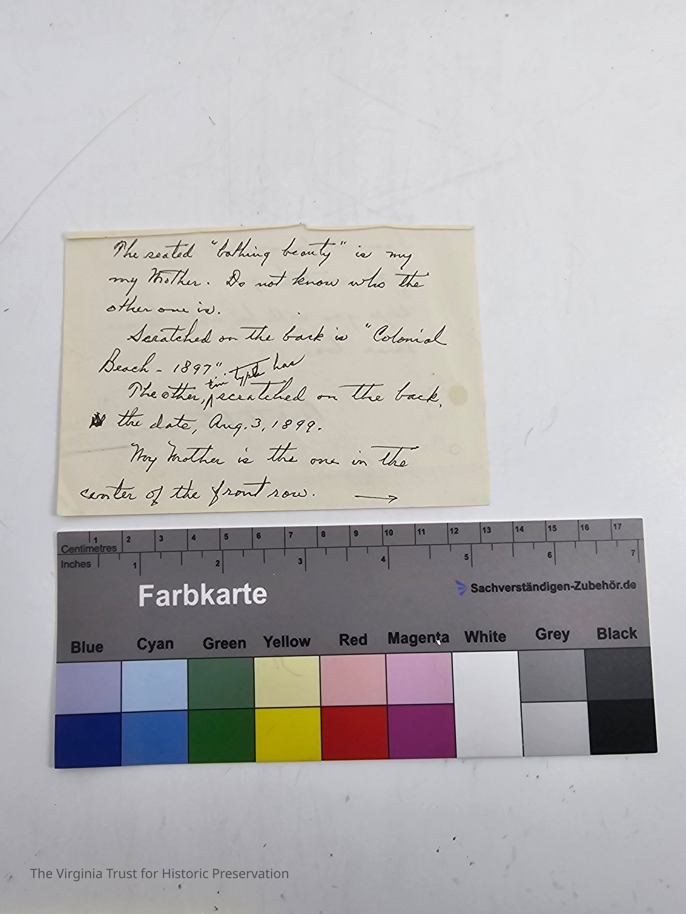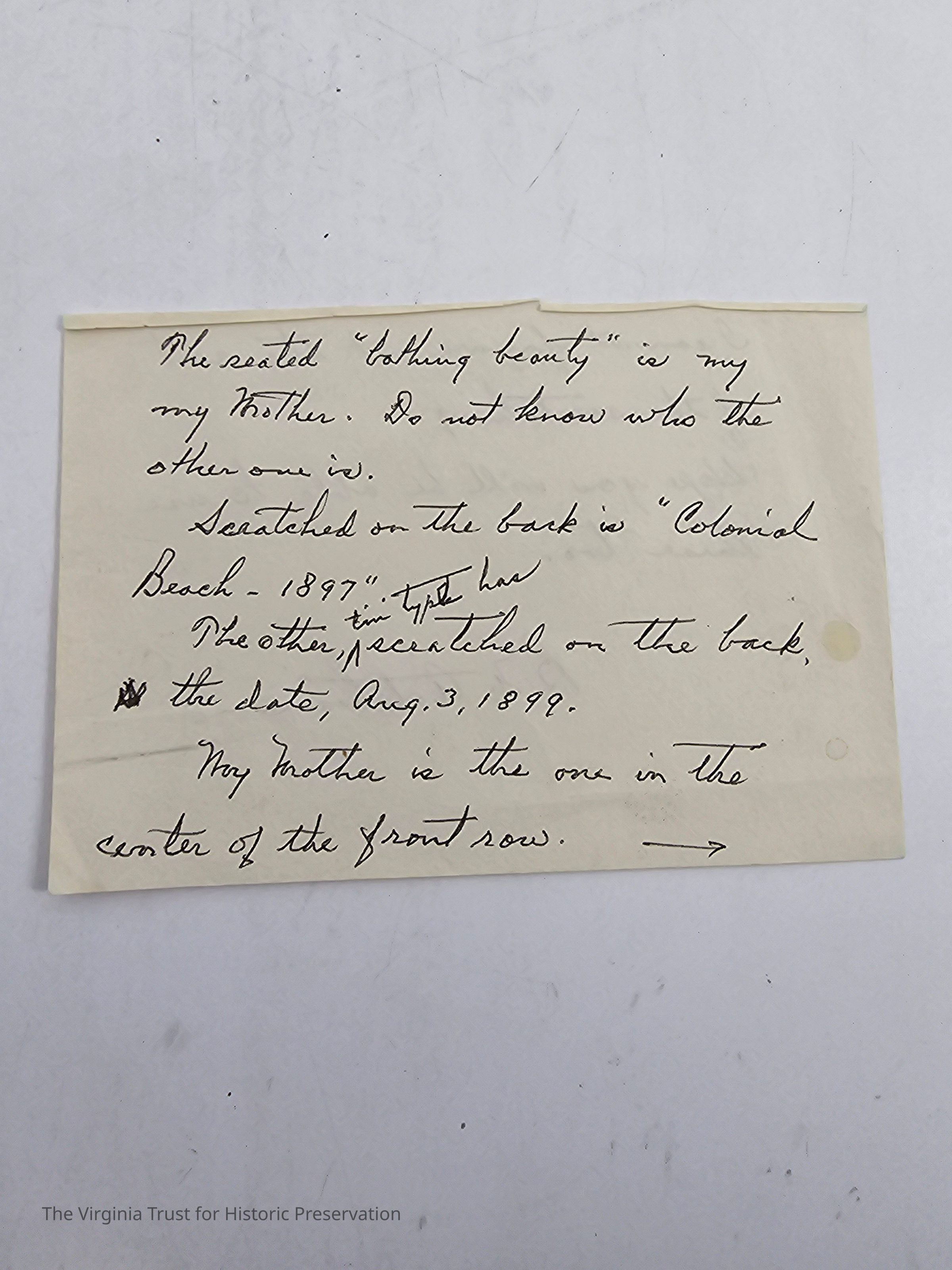 One of 24 theater programs, souvenirs, photos, and papers collected by Maude Downham. Sarah Maude Downham Aitcheson seated with other unknown girl in 1897 at Colonial Beach.