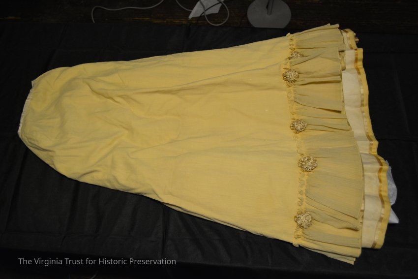 Skirt that goes with 1993.006 B - Bodice. Skirt made of soft heavy gauze. 1890s wedding dress worn by donor's grandmother in Ohio.