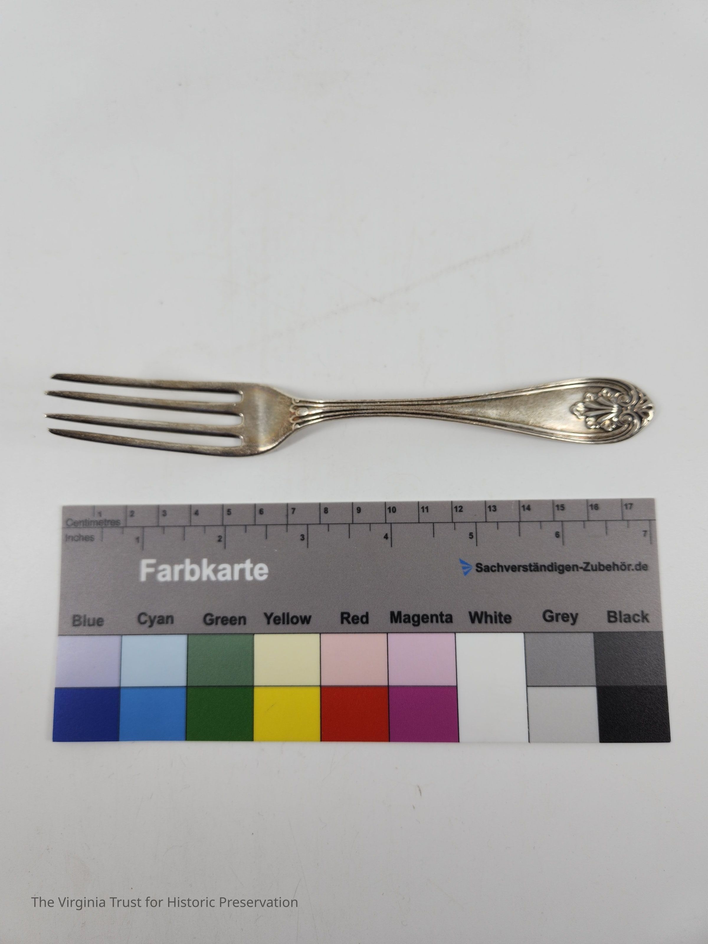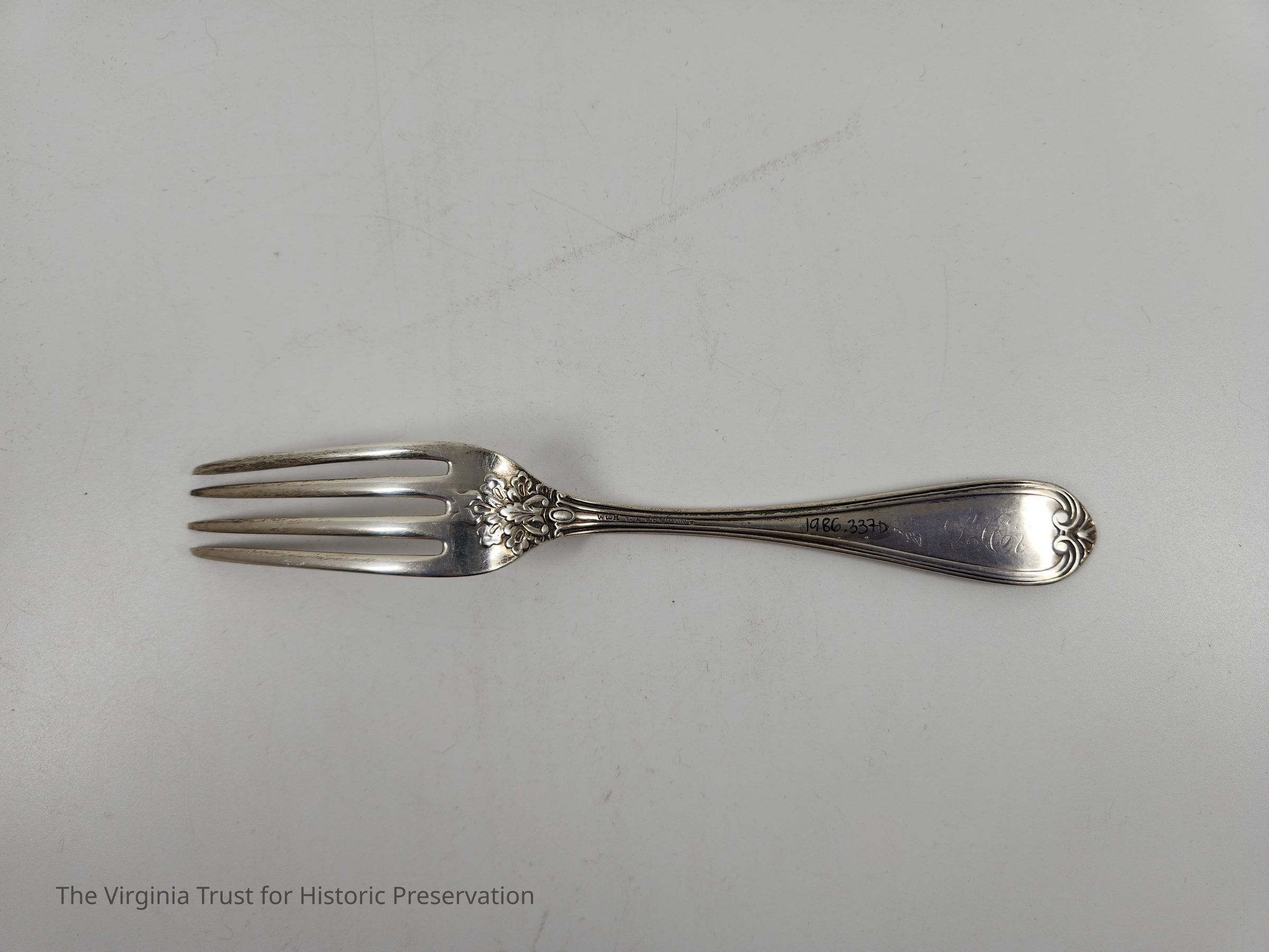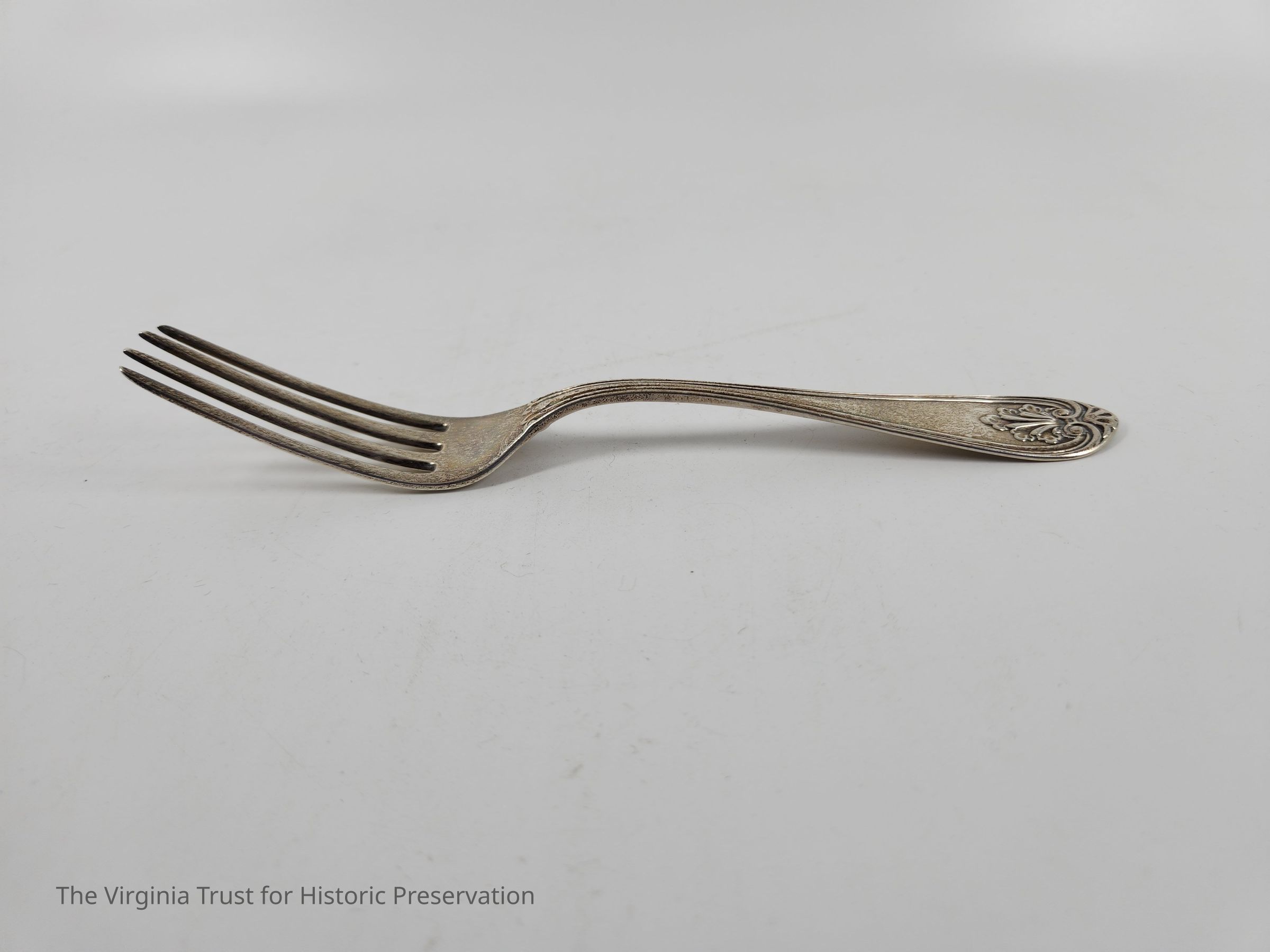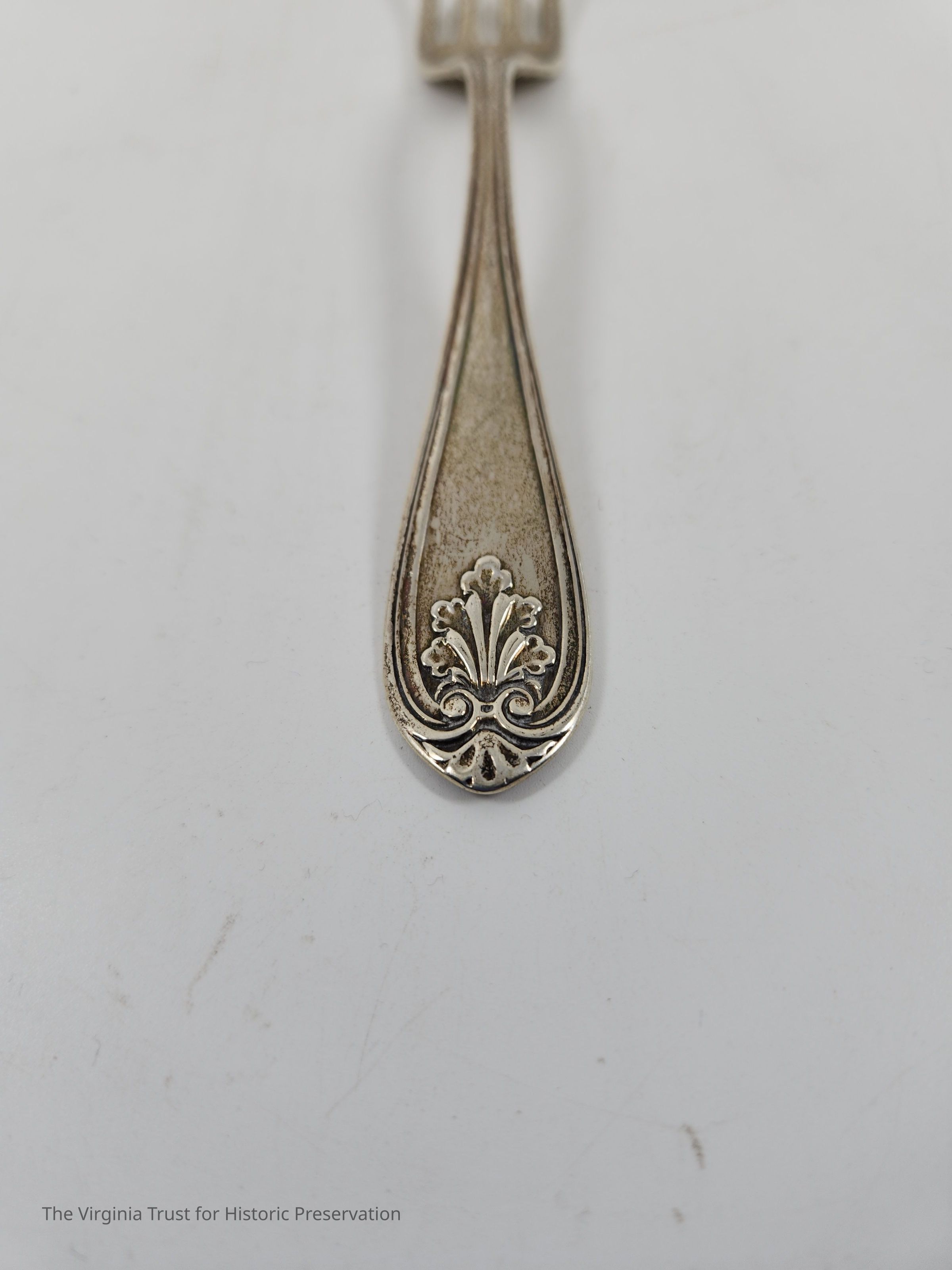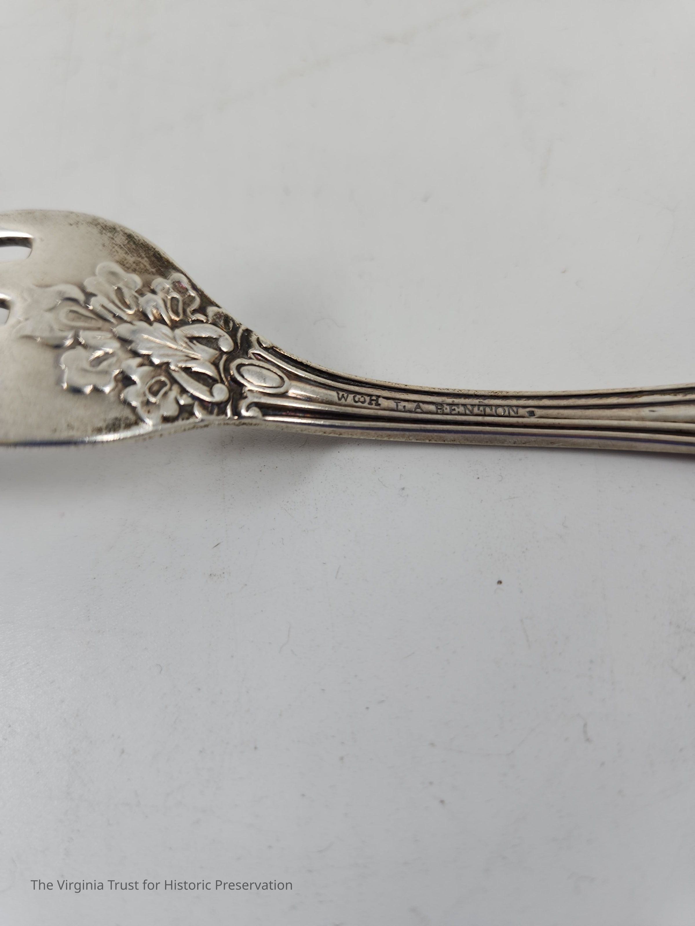 Set of four silver dinner forks; Acanthus leaf pattern. monogrammed on reverse of handle "L H K" ?; Stamped: "W&H" "L.A. Benton"