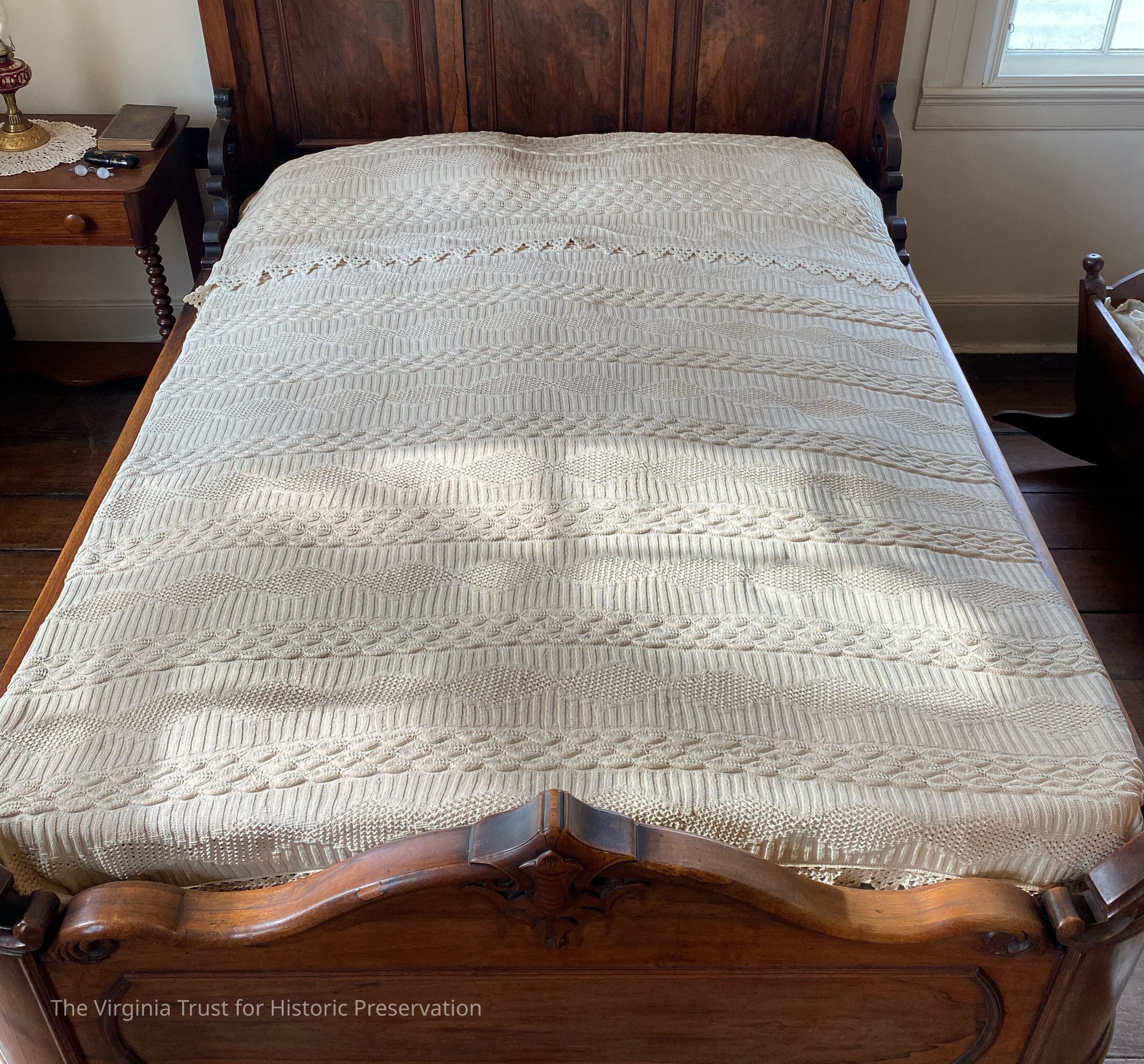 White knit cotton with crocheted edginging.