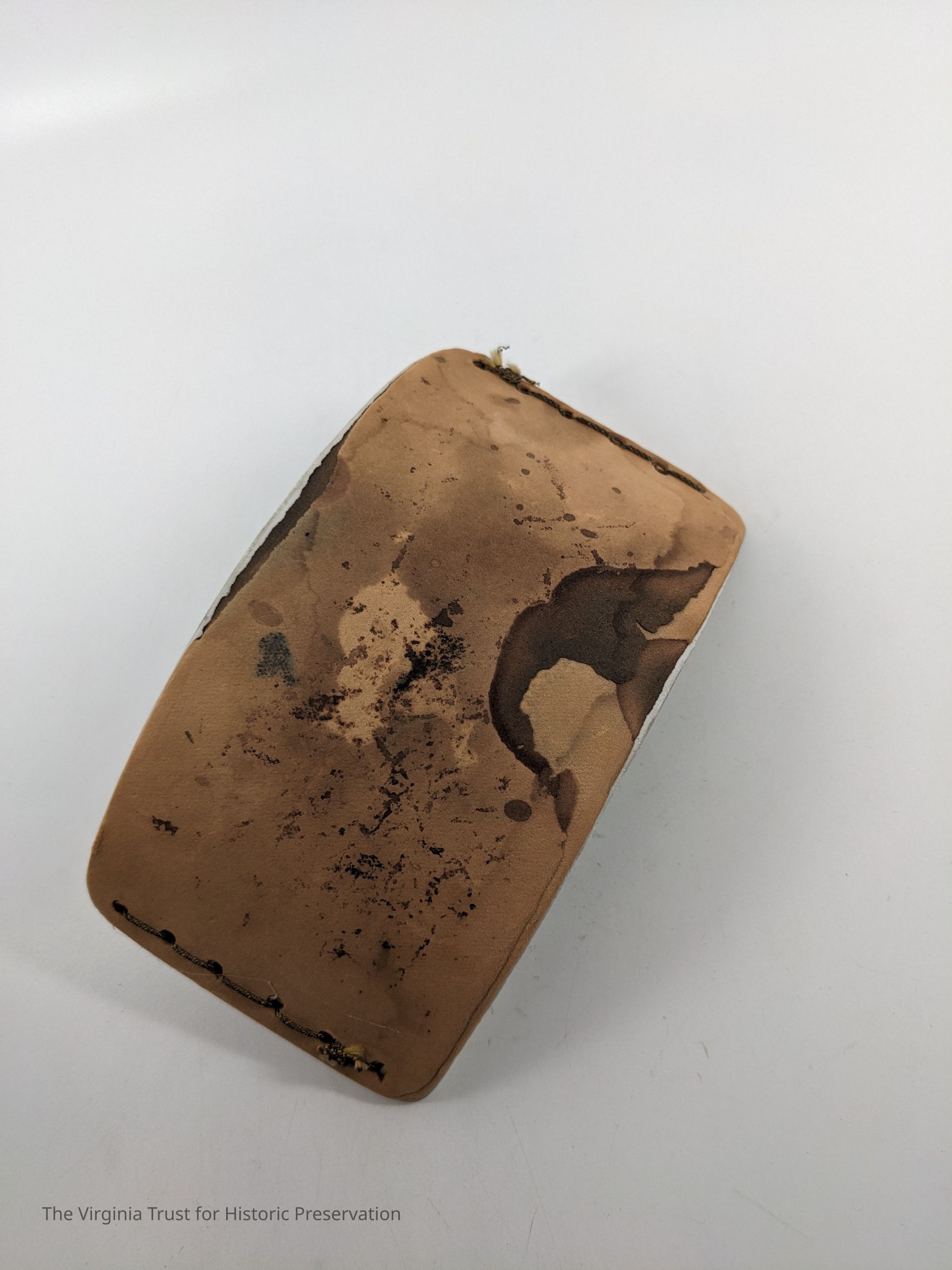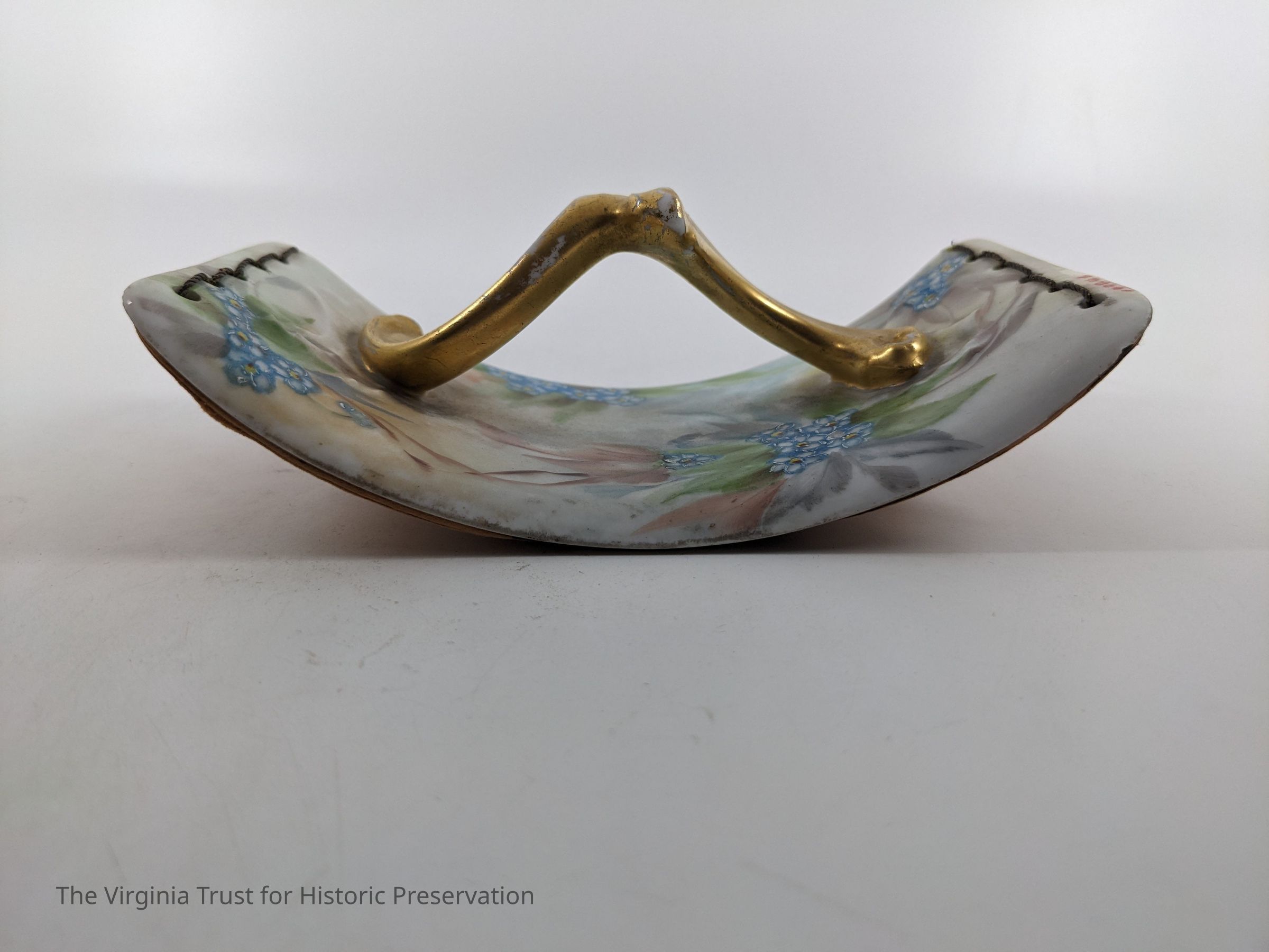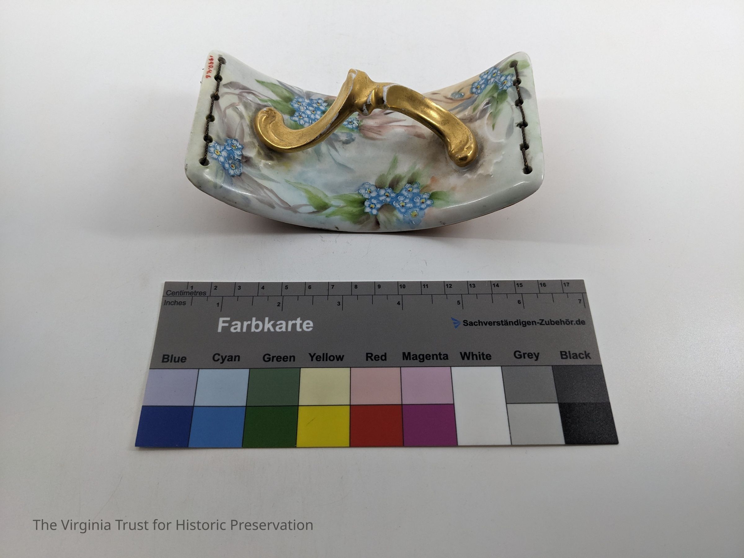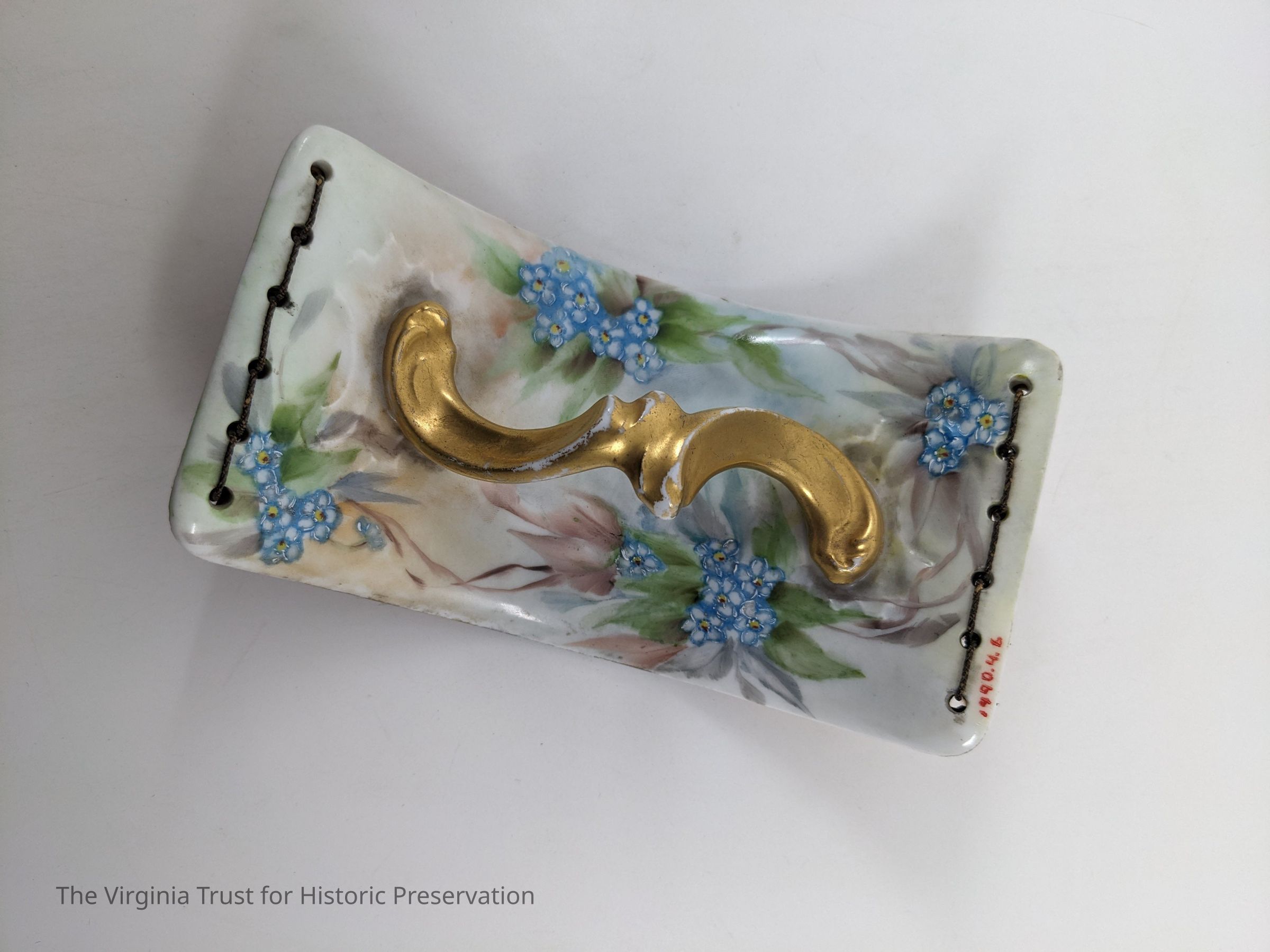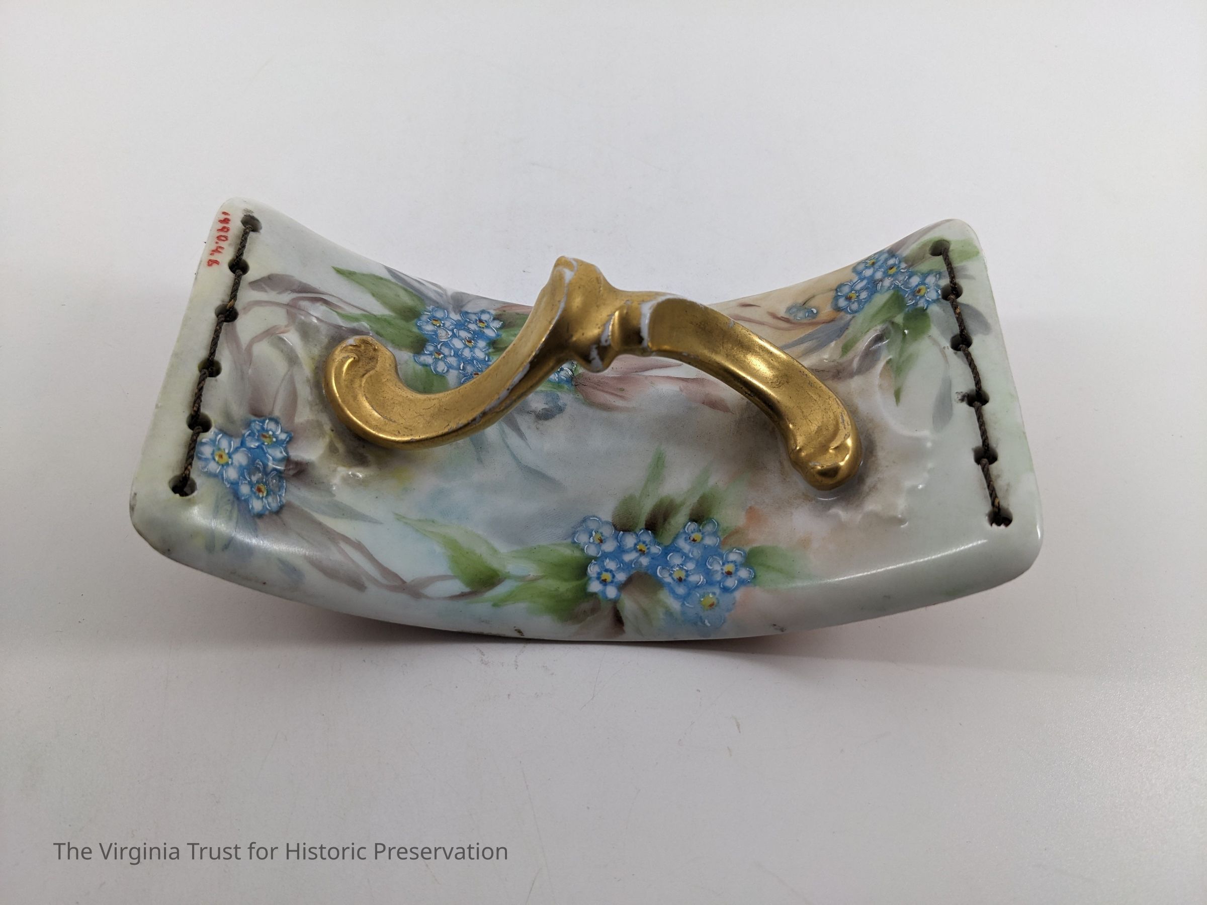 Porcelain blotter. Painted with blue flowers and green leaves. Gold handle