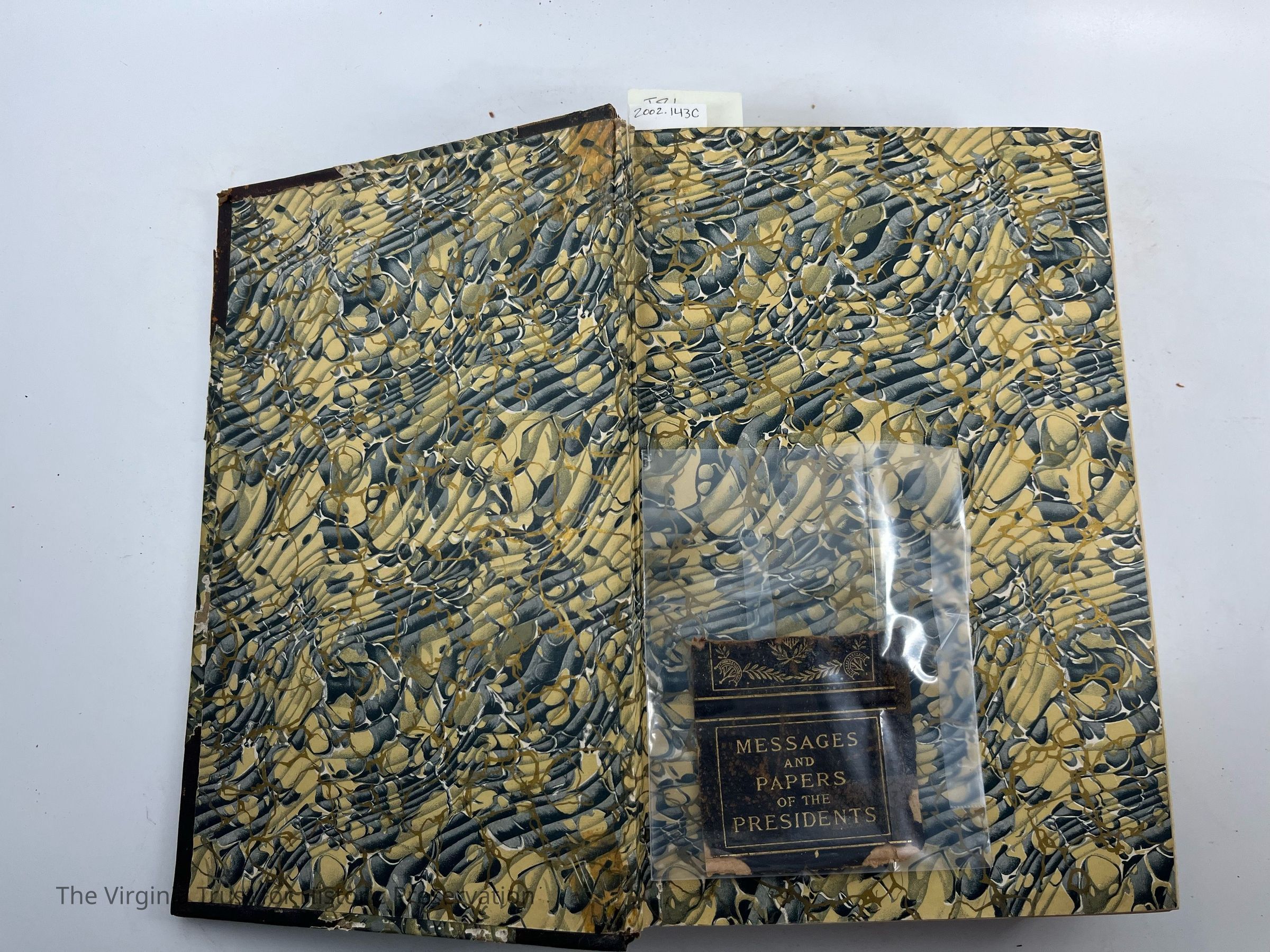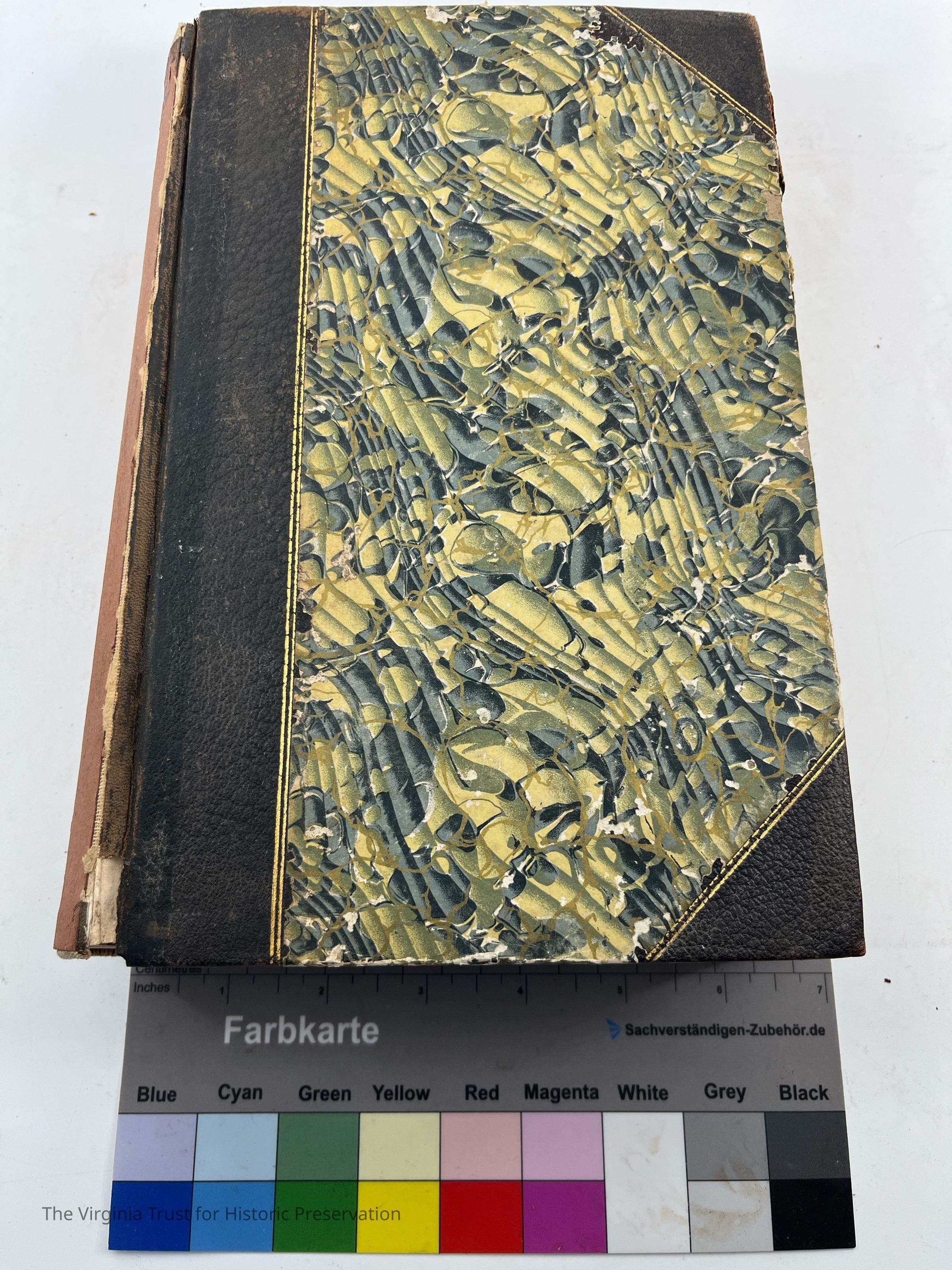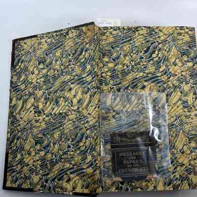 Green/blue patterned cover, good binding, worn/unreadable spine