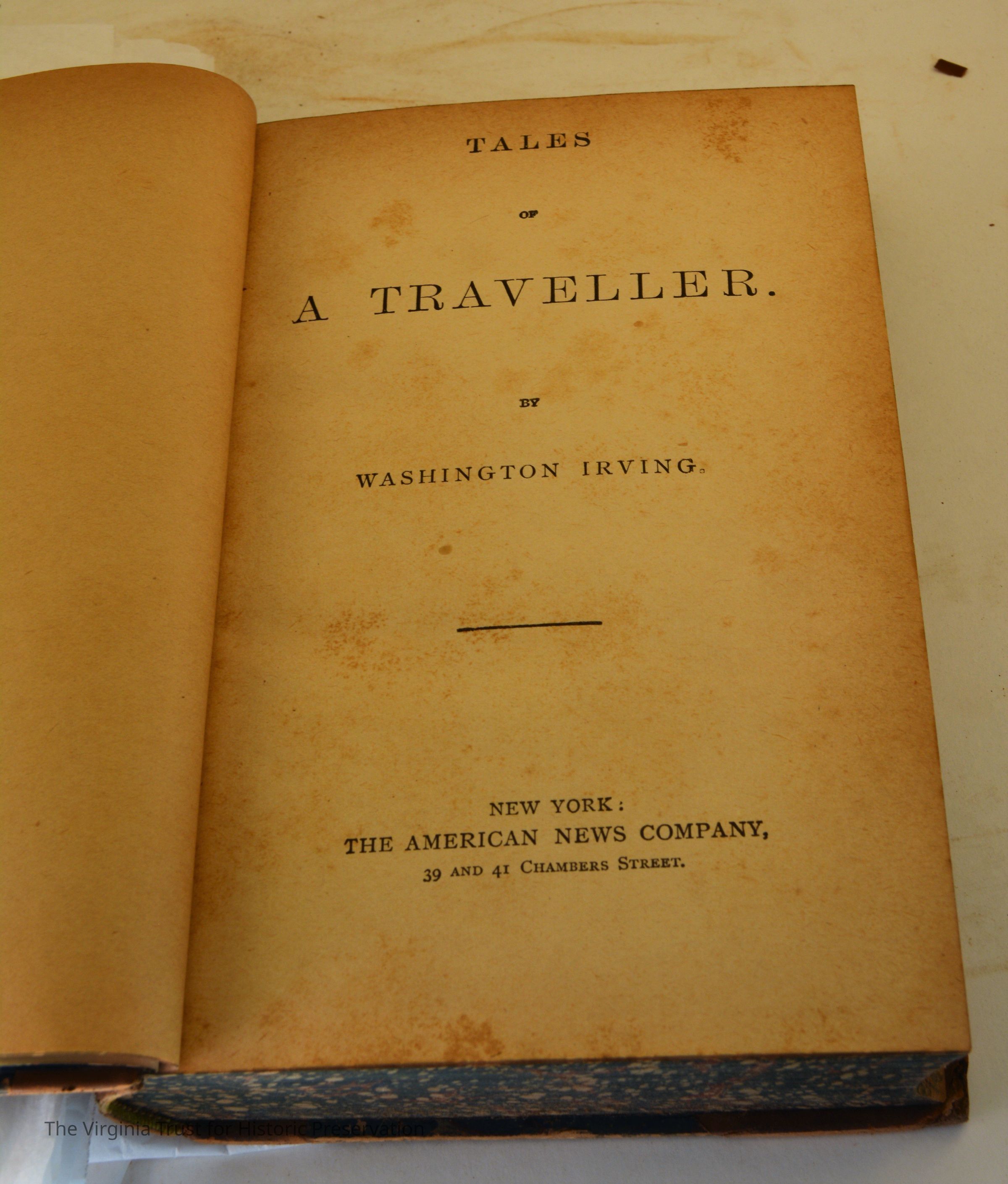 Irving, Washington. Tales of a Traveller. New York: The American News Company, [n.d.] One of a set of 10 volumes by Washington Irving.