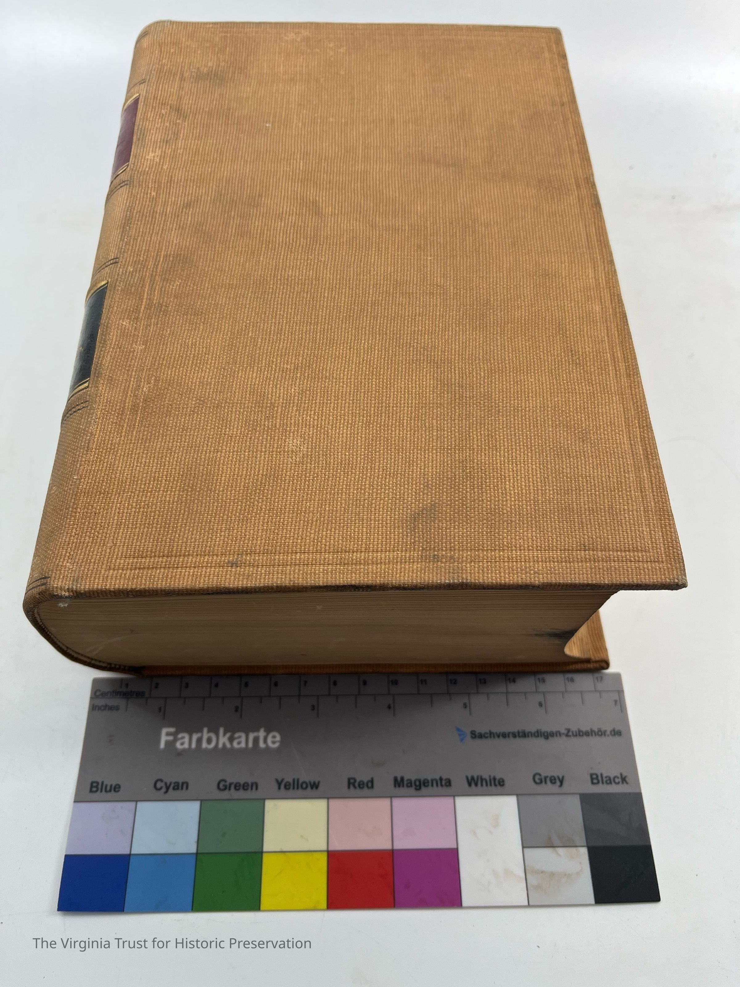 Tan colored front and back cover, excellent binding, readable/multicolored spine
