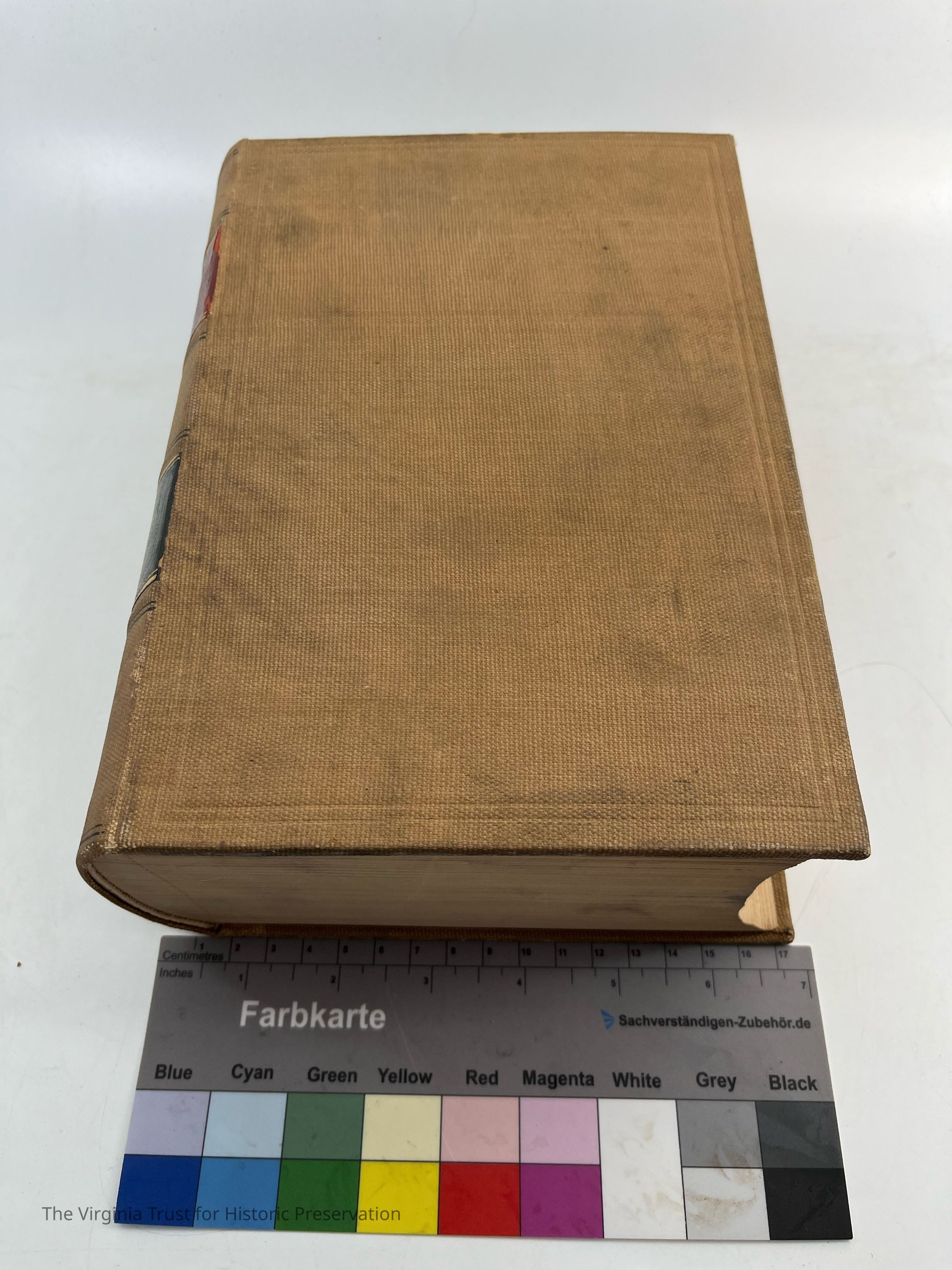 Tan colored front and back cover, excellent binding, readable/multicolored spine