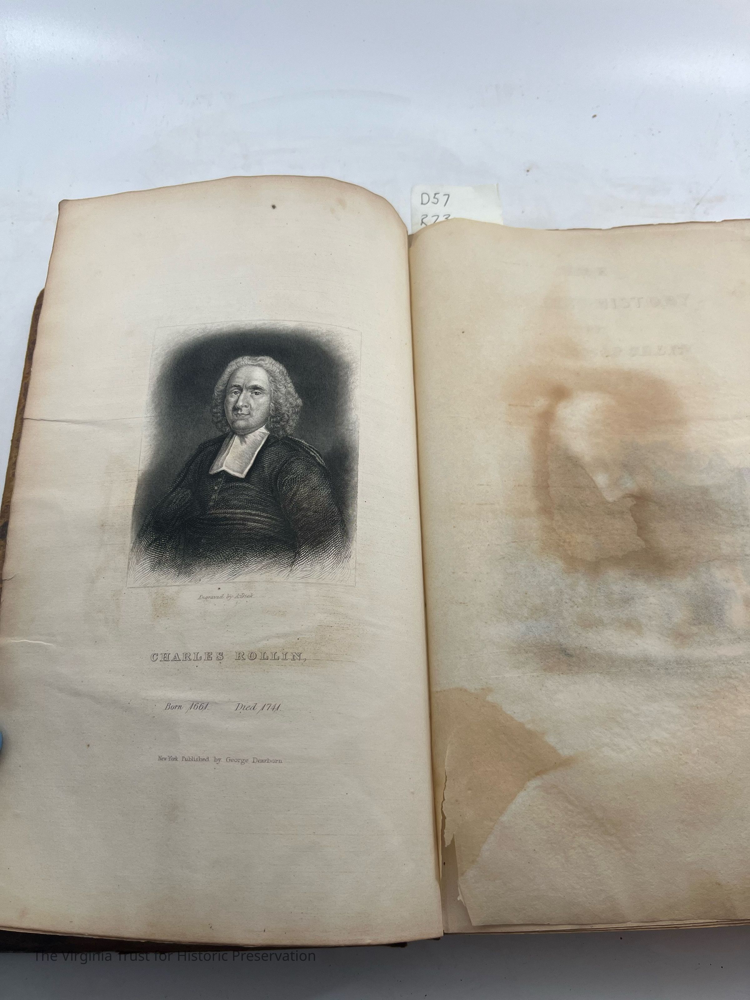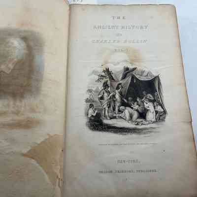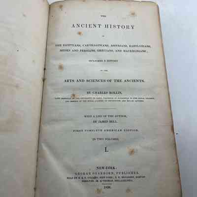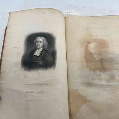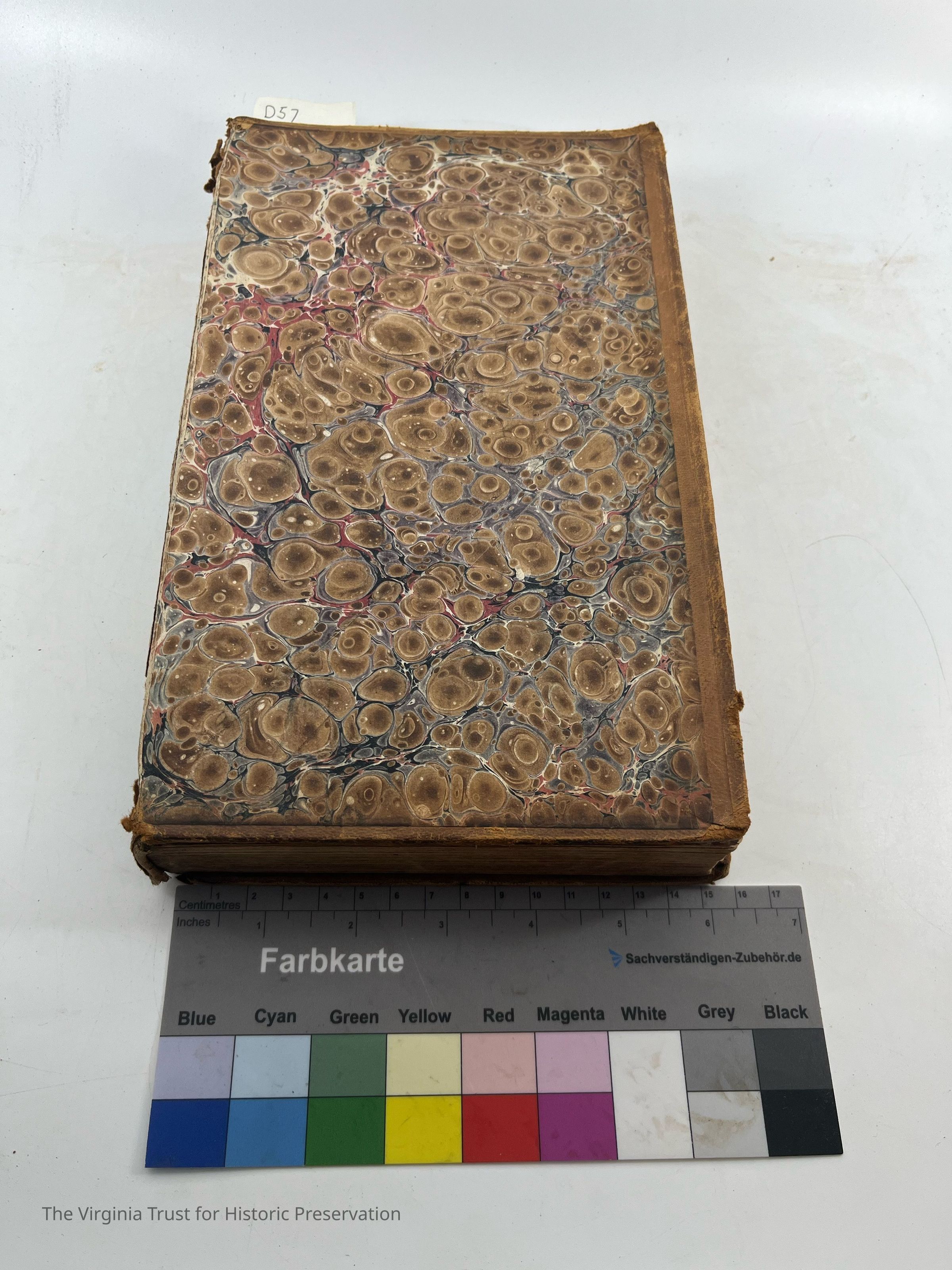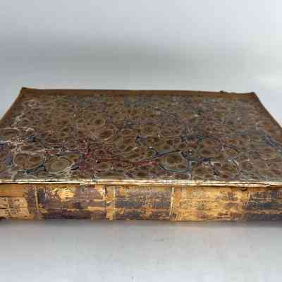 Brown/patterned front cover, front cover is detached from the book, good binding, worn/semi-readable spine