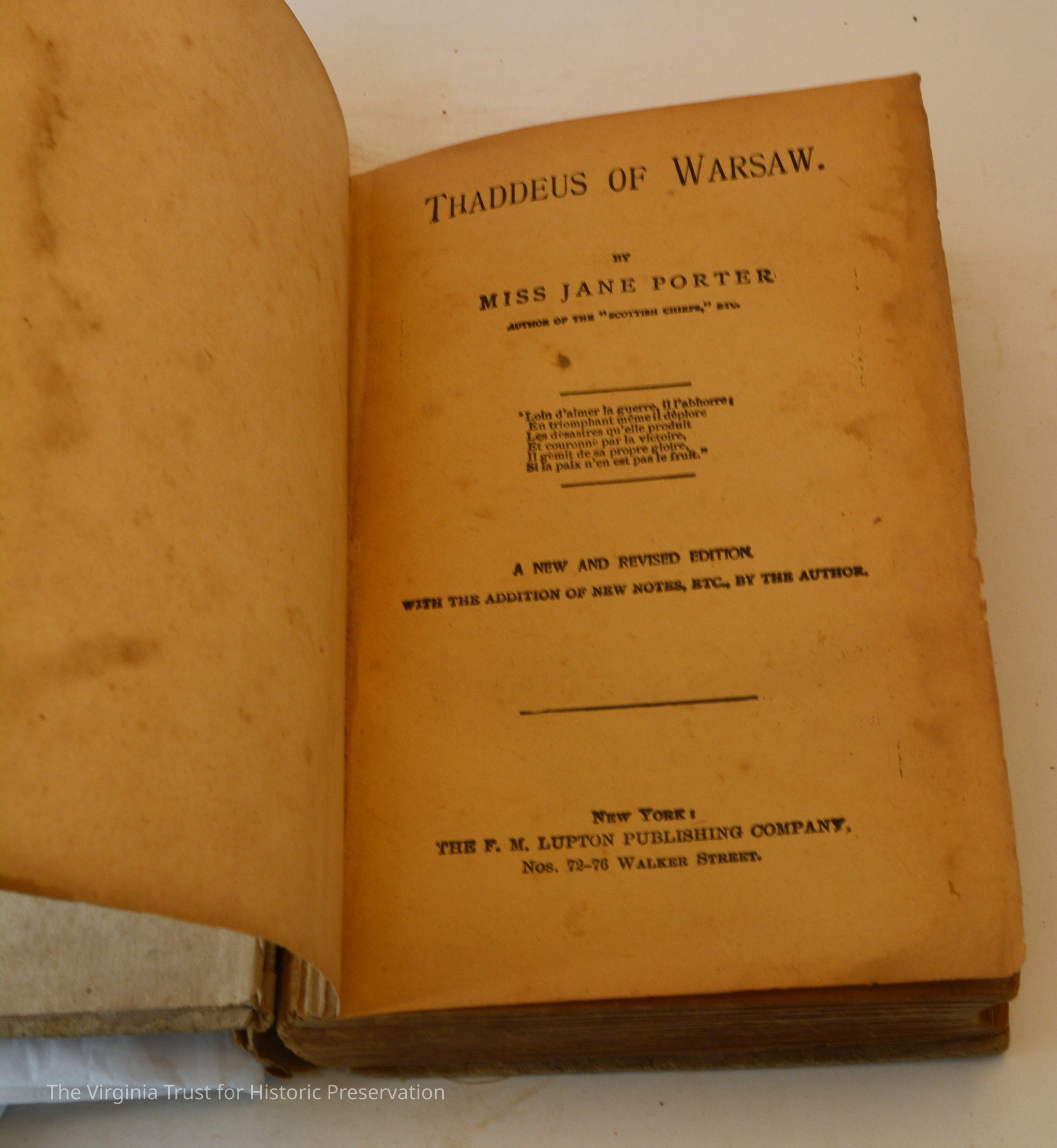 Porter, Jane. Thaddeus of Warsaw. New York: F.M. Lupton Publishing Company, [n.d.]