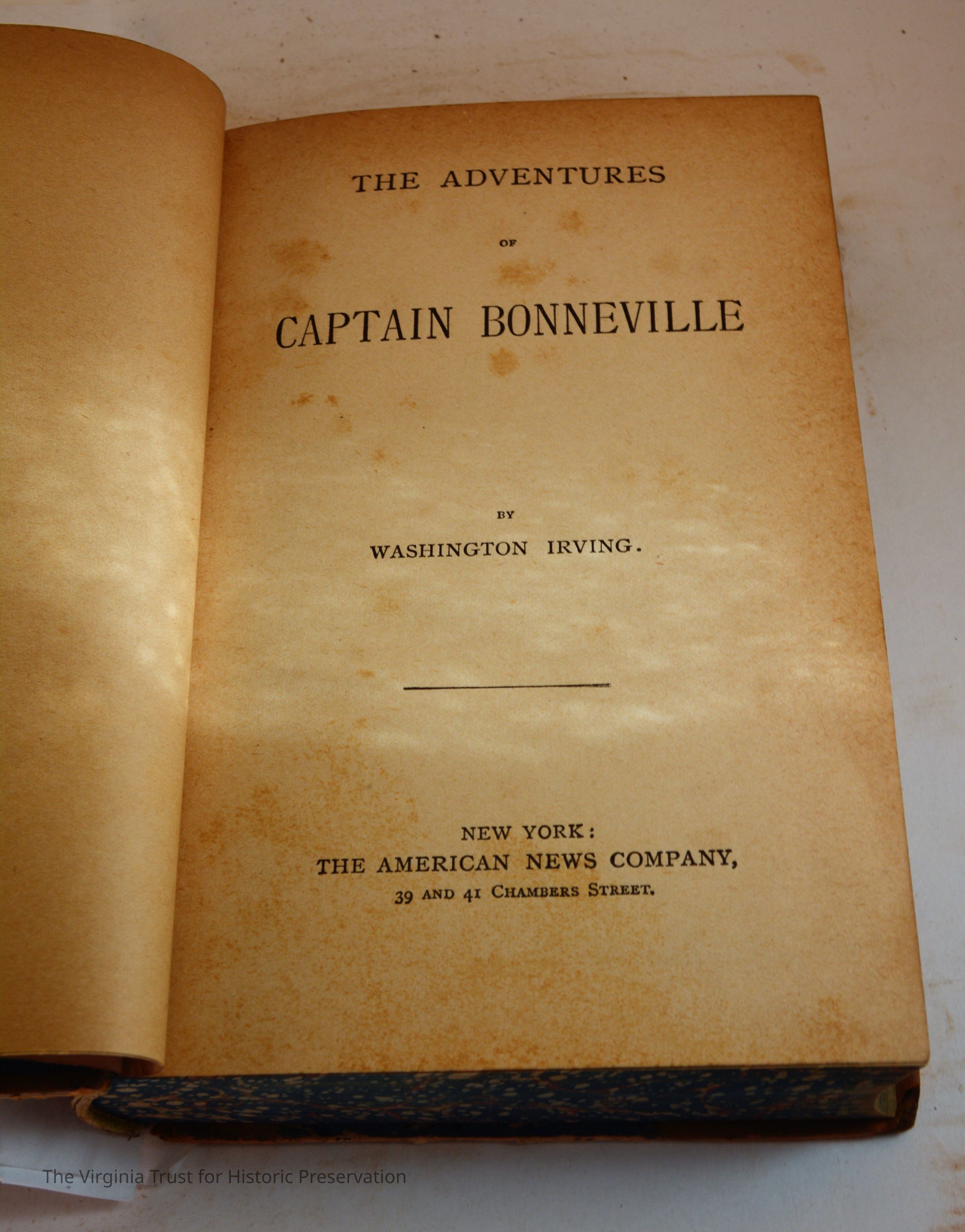 Irving, Washington. The Adventures of Captain Bonneville. New York: The American News Company, [n.d.] One of a set of 10 volumes by Washington Irving.