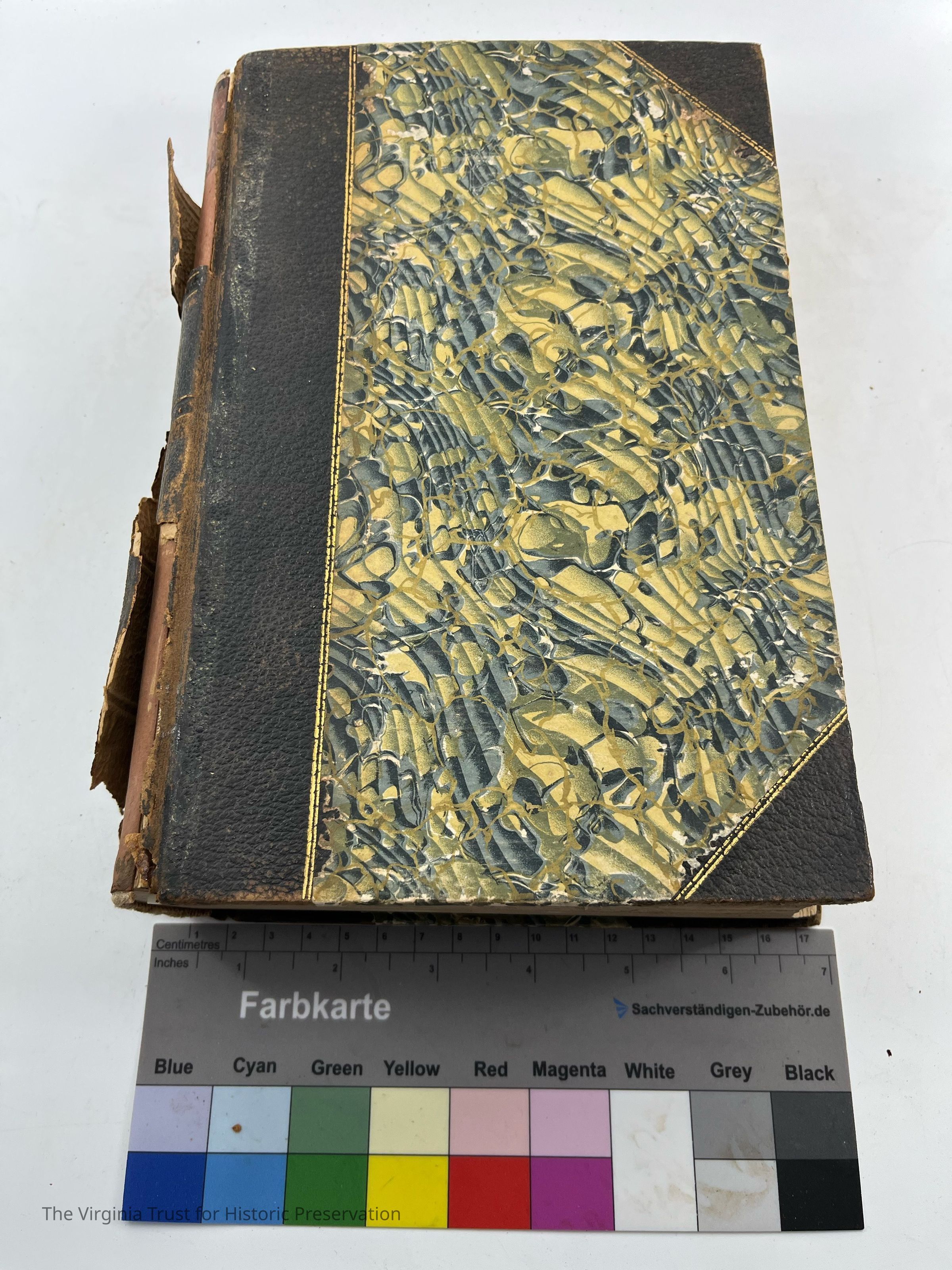 Green and blue patterned cover, good binding, torn/readable spine