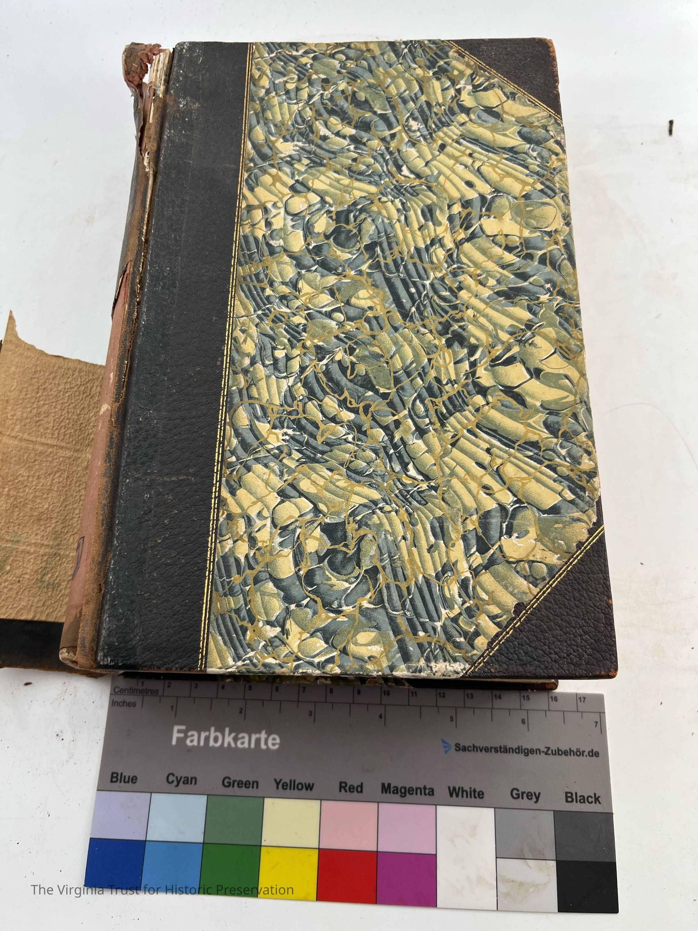 Green/blue patterned cover, decent binding, tearing/readable spine