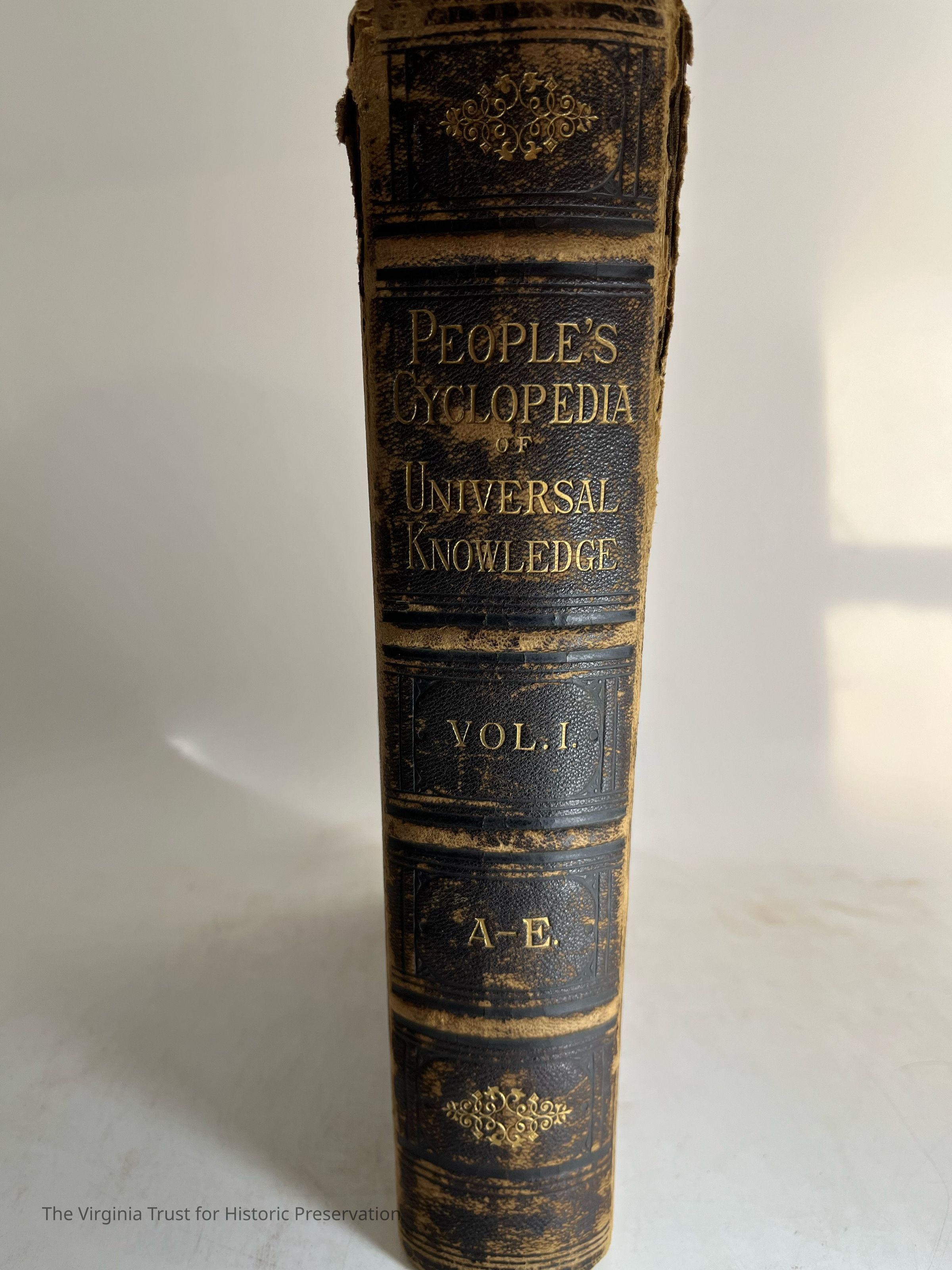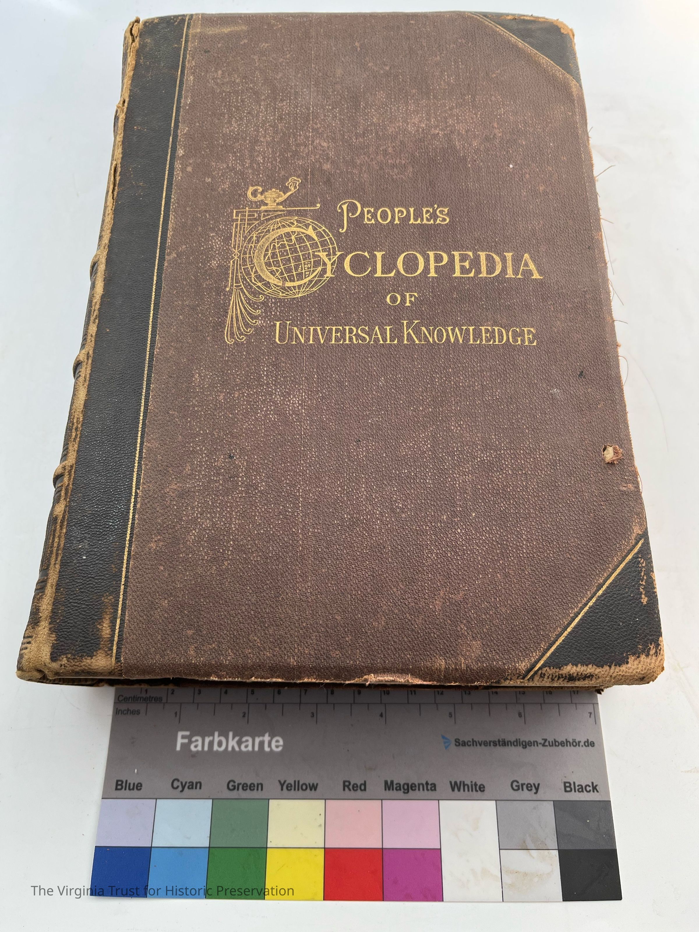 Dark brown front cover, good binding, worn/readable spine