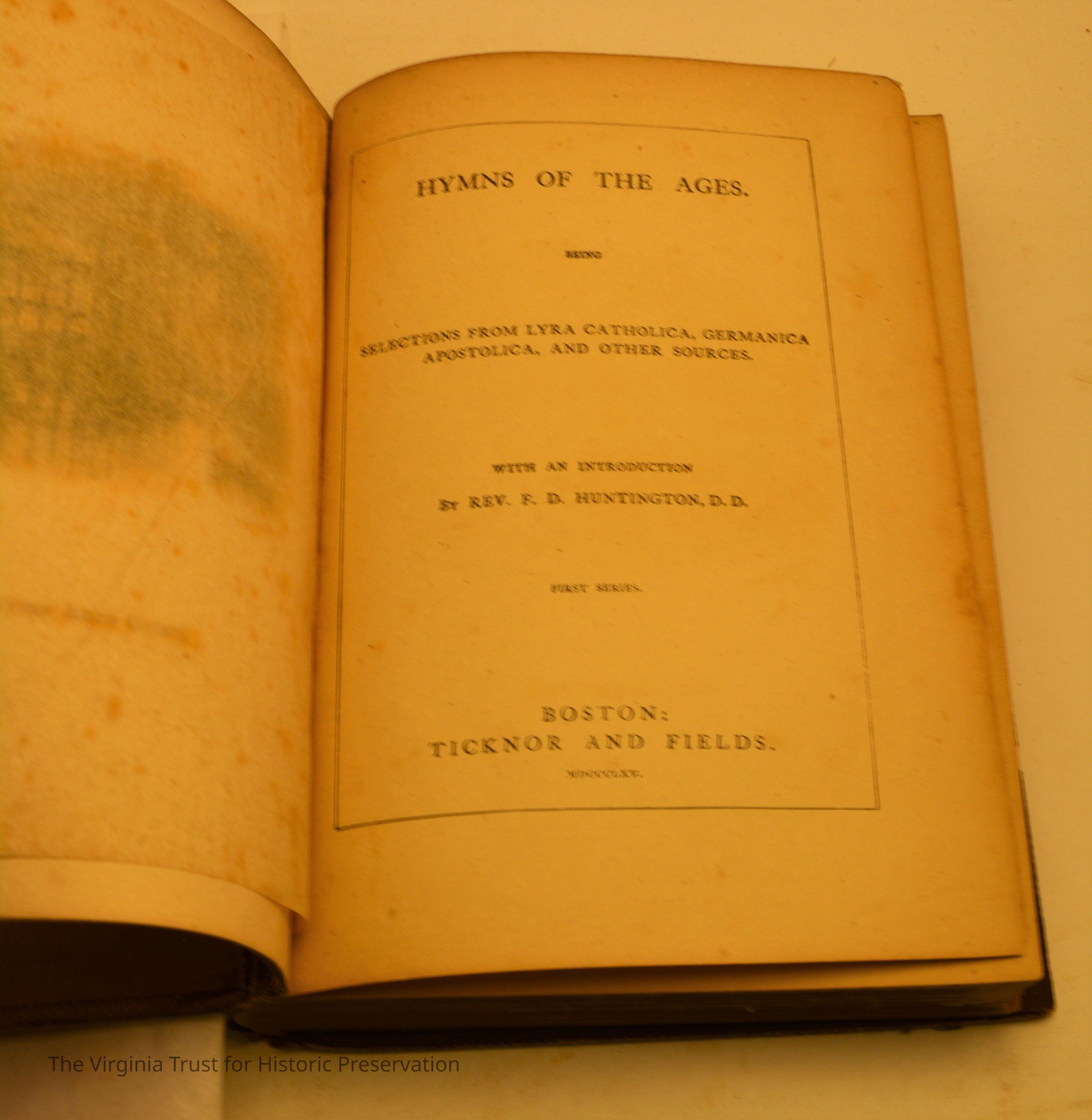 Huntington, Rev. F.D., intro. Hymns of the Ages. Being Selections from Lyra Catholica, Germanica Apostolica, and Other Sources. Boston: Ticknor and Fields, 1865. Missing paper file. No known old number.