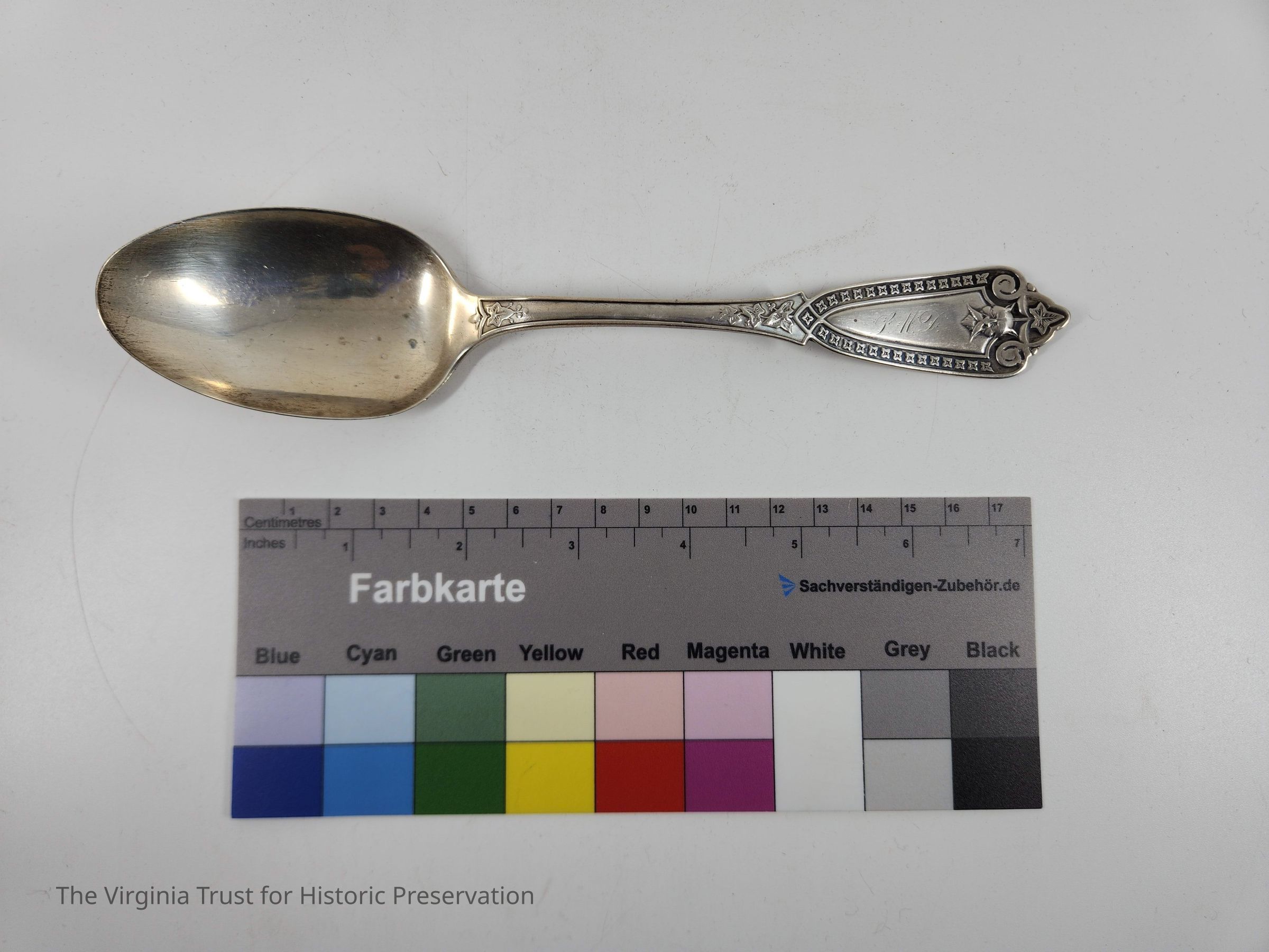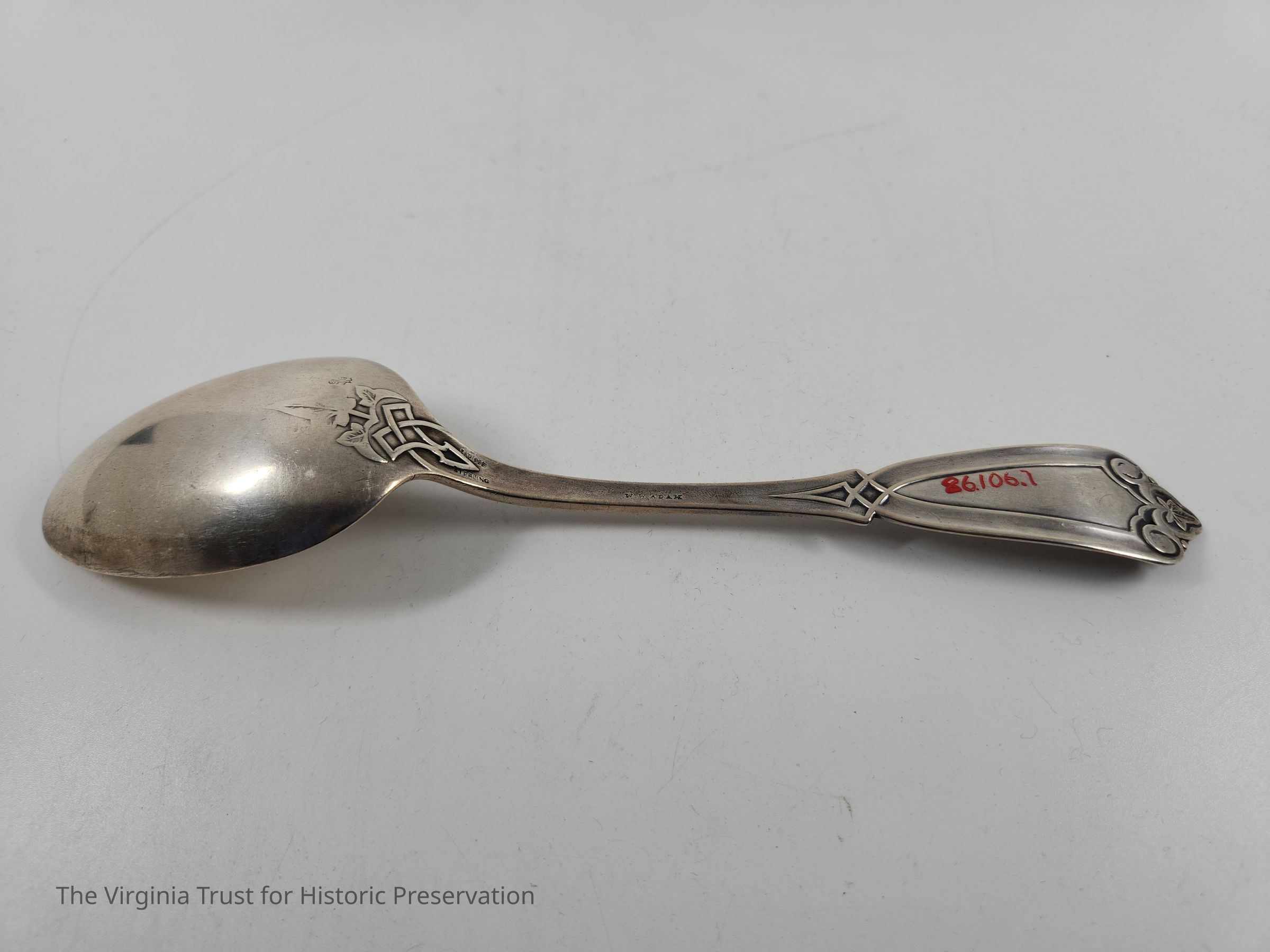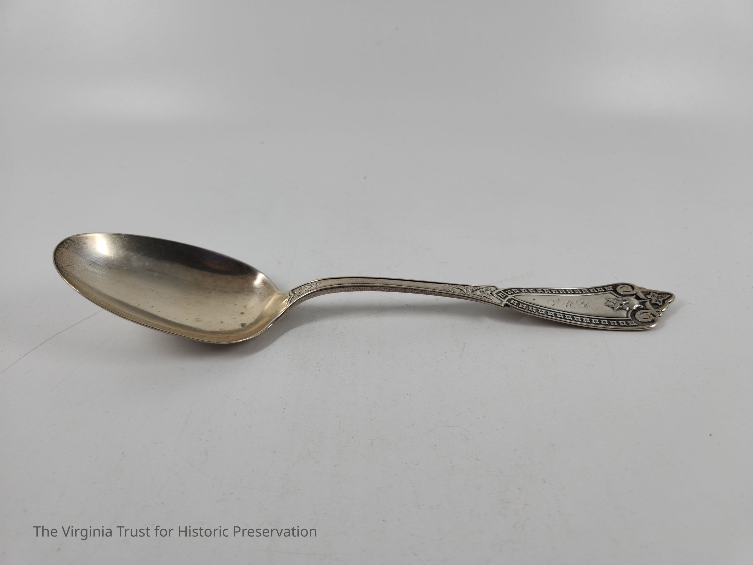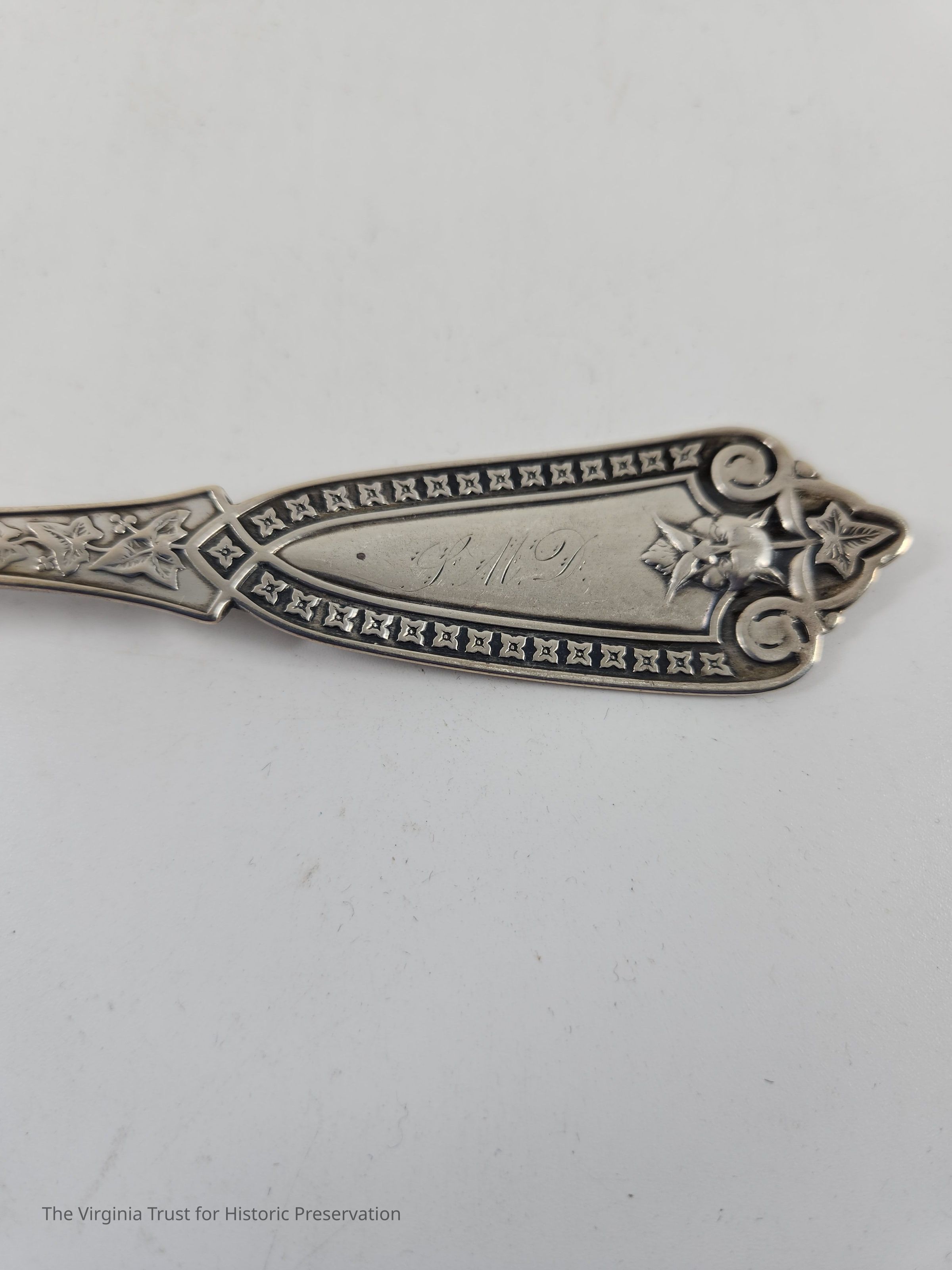 Part of six matching sterling silver tablespoons part of 16 piece spoon set of three different sizes. SMD monogram (probably for Sarah Miranda Downham). Whiting Ivy Pattern originally produced by Henry Hebbard.