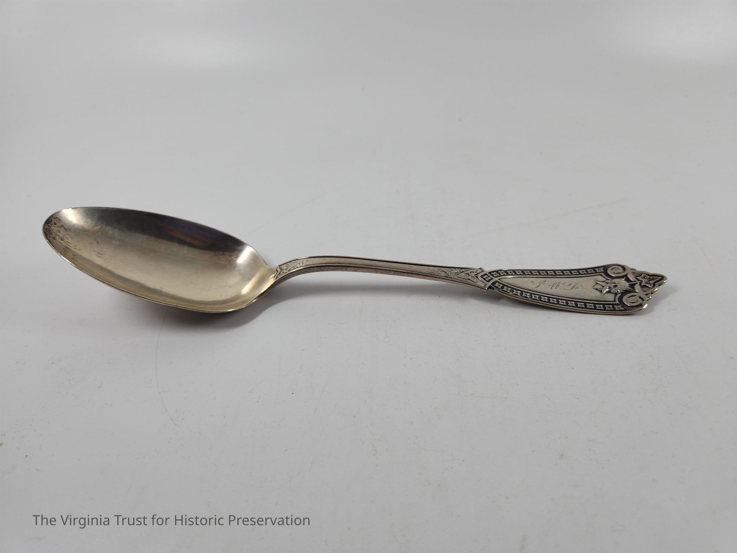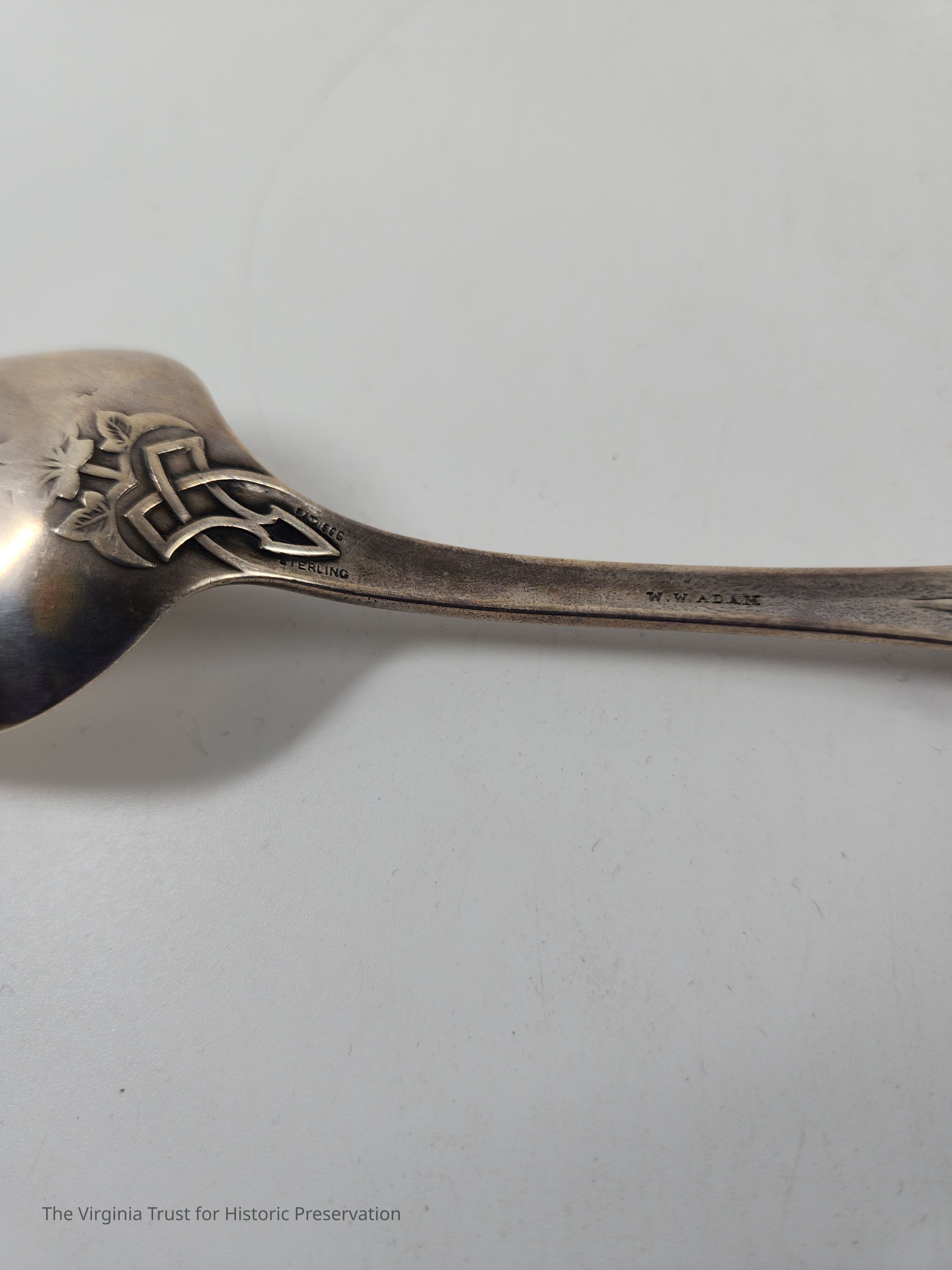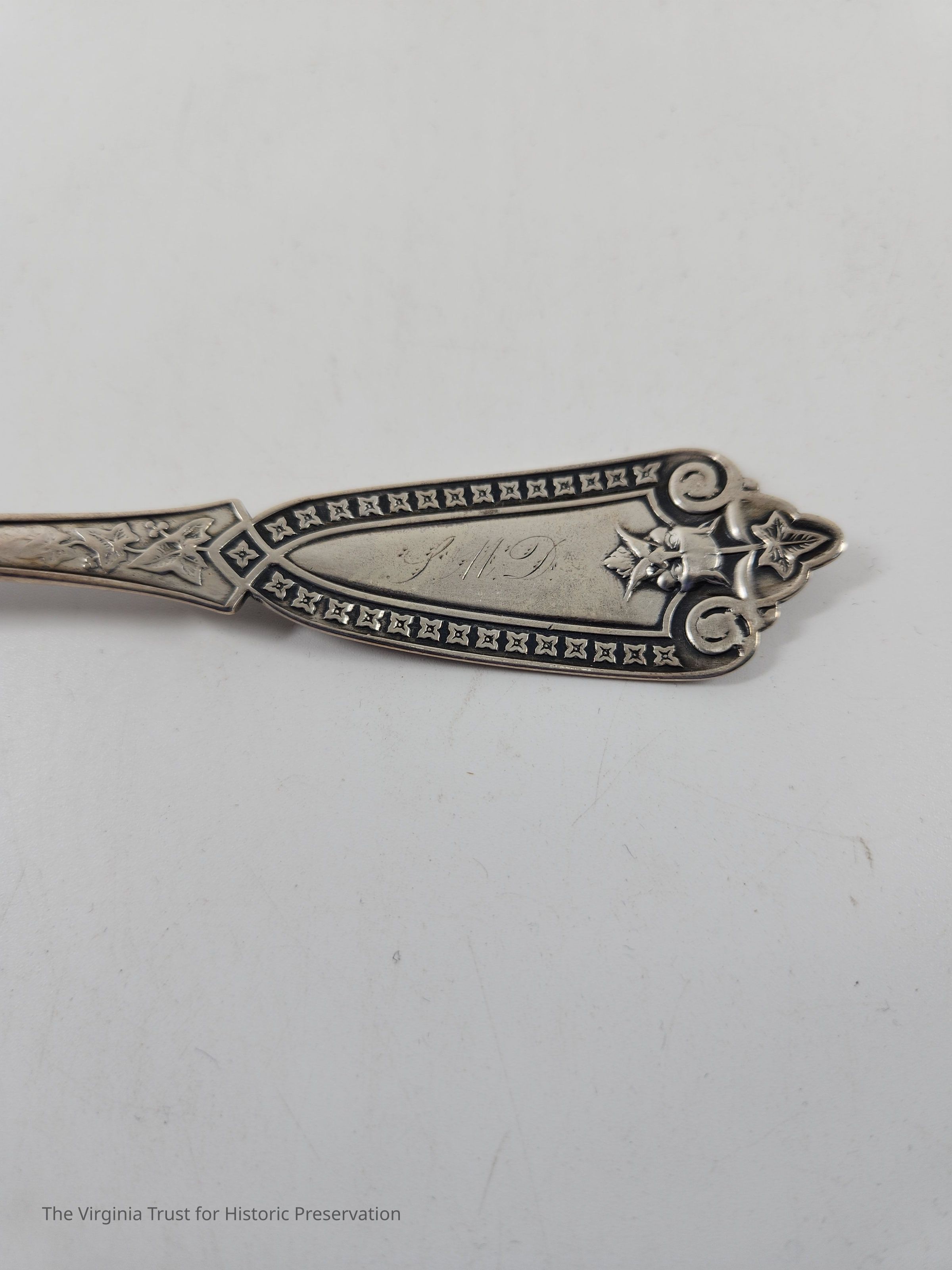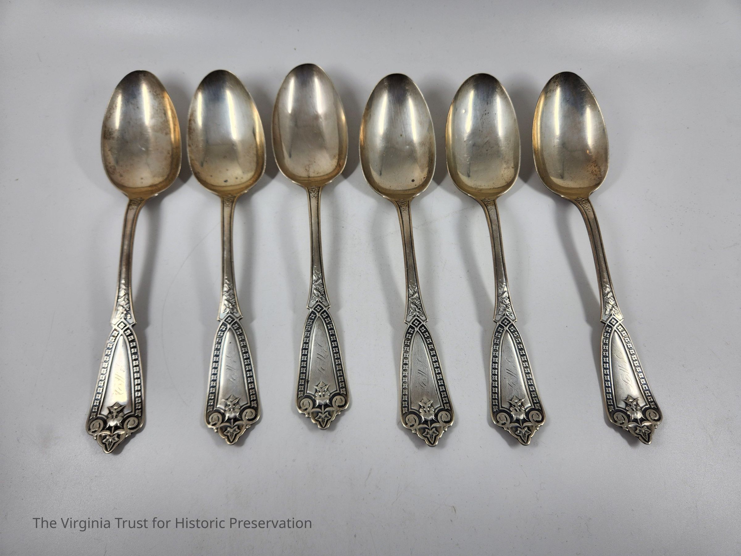 Part of six matching sterling silver tablespoons part of 16 piece spoon set of three different sizes. SMD monogram (probably for Sarah Miranda Downham). Whiting Ivy Pattern originally produced by Henry Hebbard.