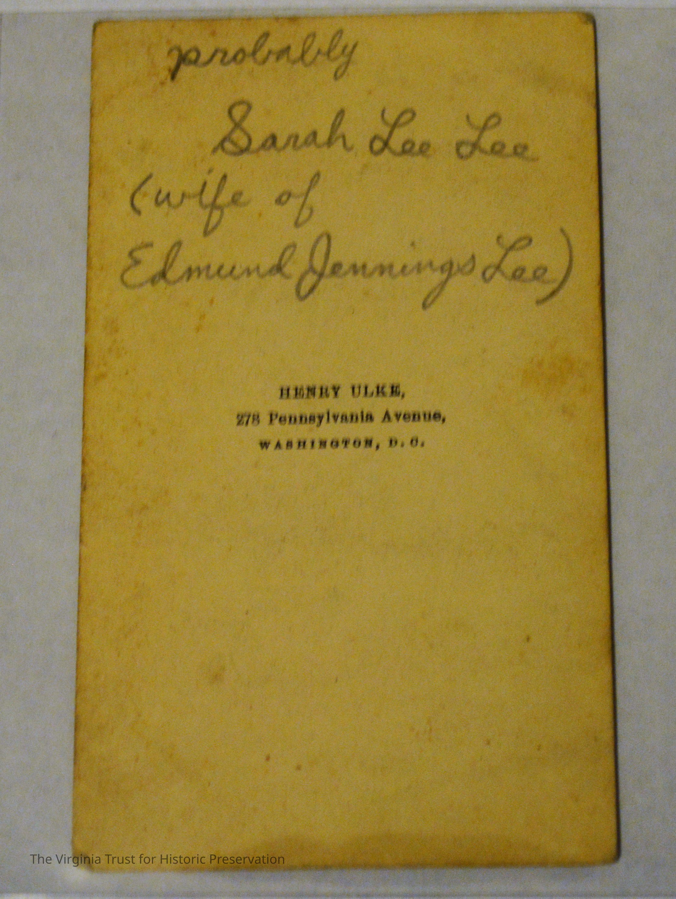 Photograph of a woman, believed to be Sarah Lee, daughter of Edmund Jennings Lee and Sarah Lee.