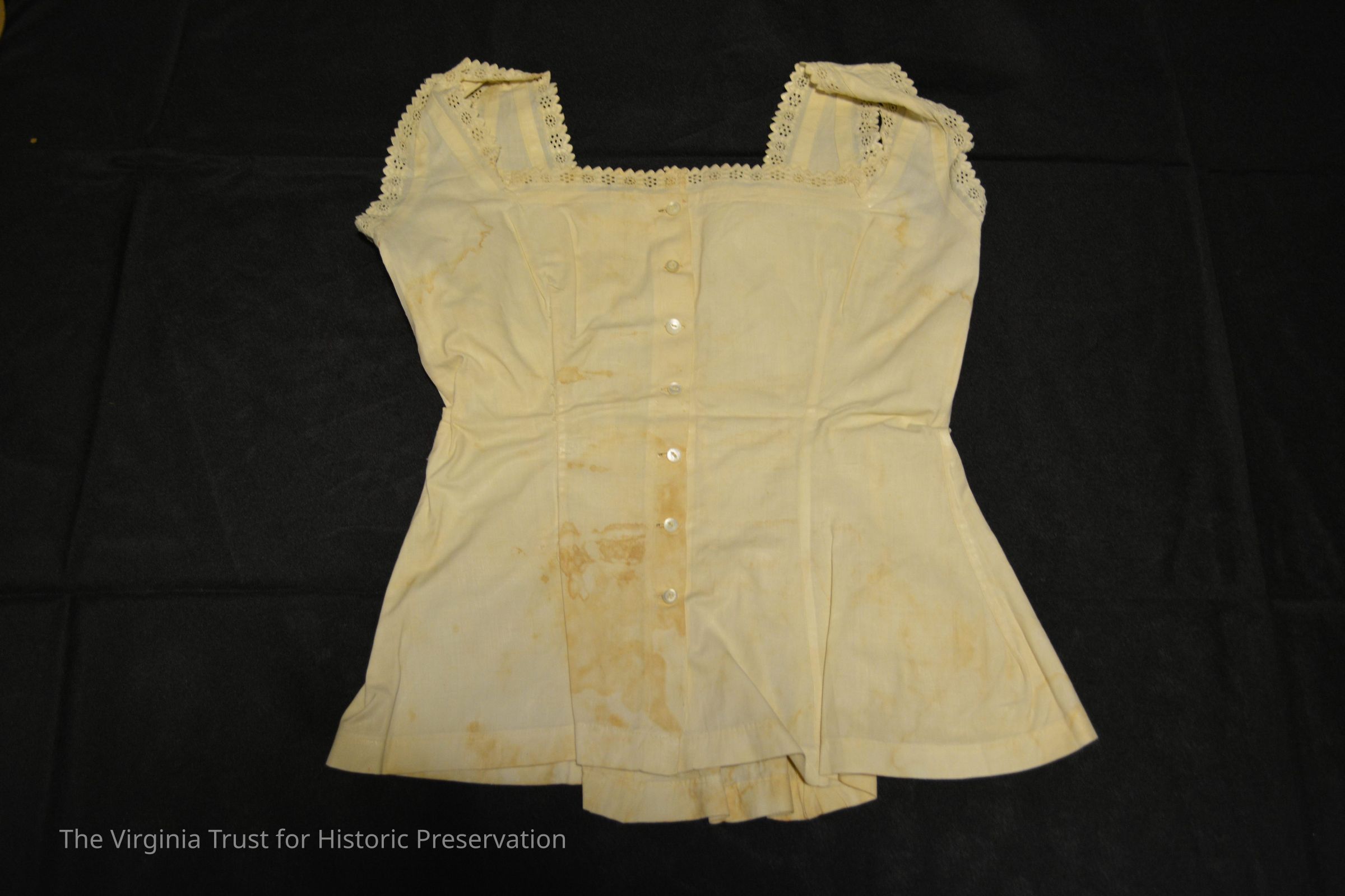 Off white chemise/camisole with front button closure. Eyelet trim at neckline and armholes.