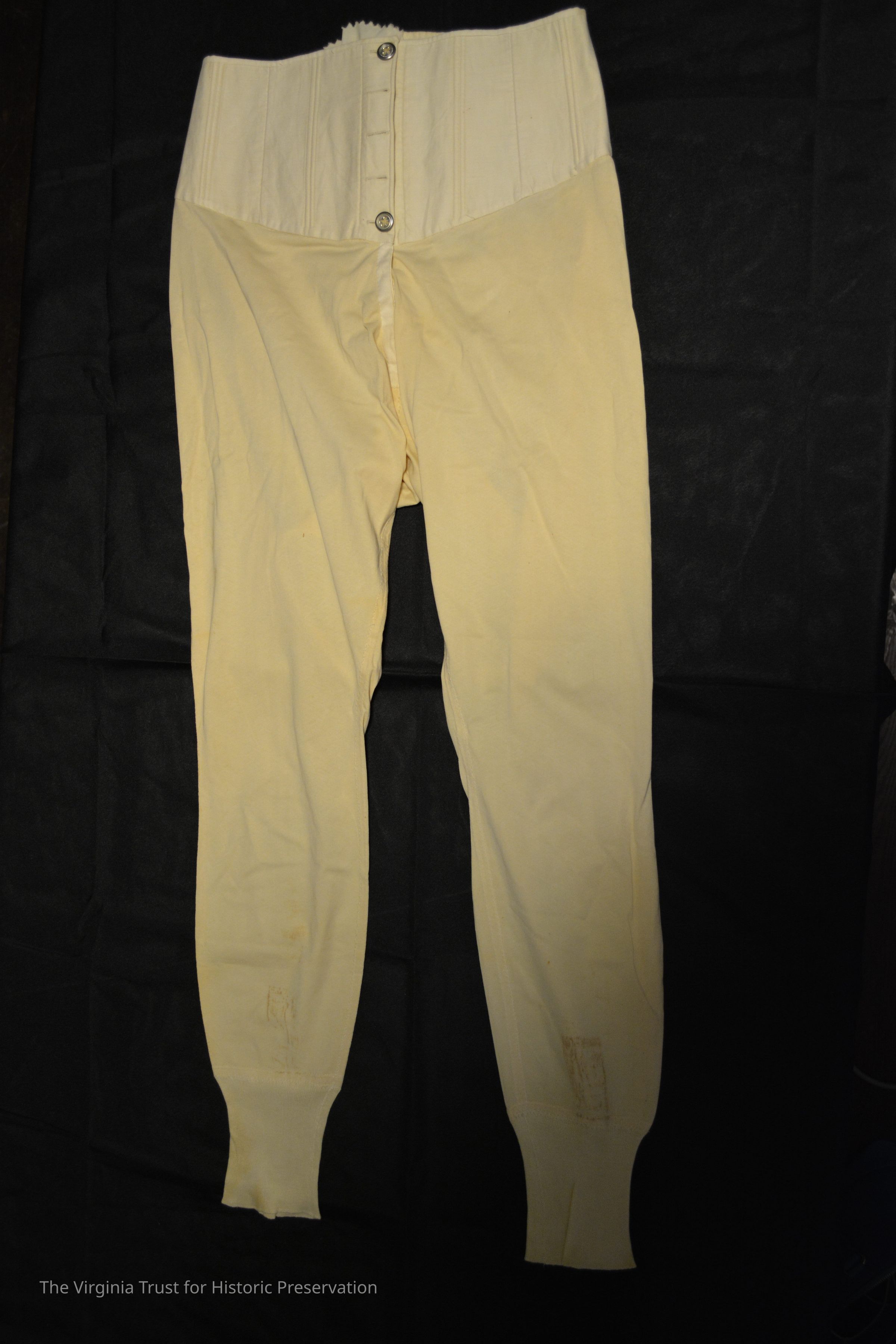 Men's long underpants, matching set of 5 all with varying mending and repairs.