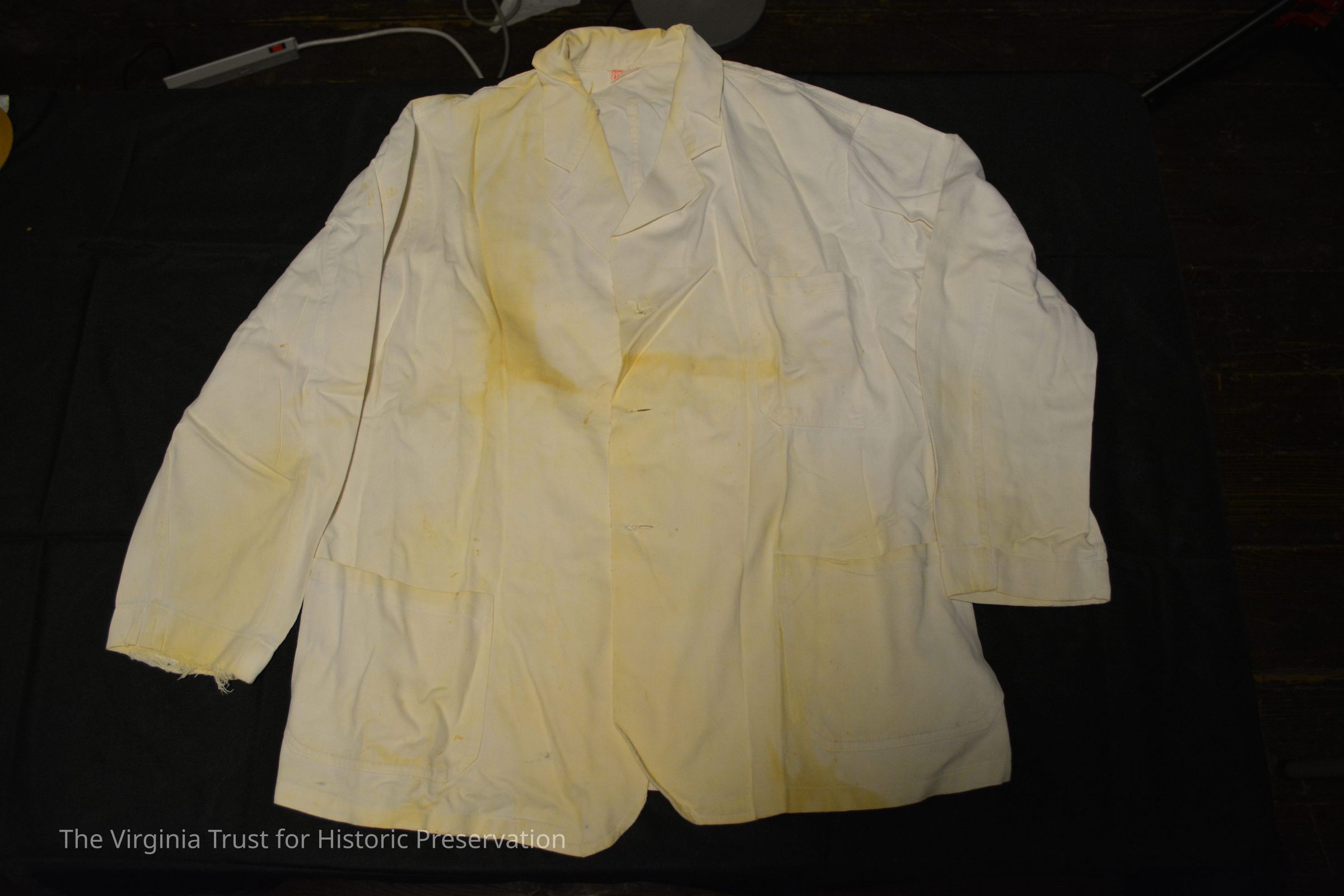 White jacket worn by James Lewis, Jr. in the Lee-Fendall House. Lewis served as steward from 1941-1969. Piece returned to Lewis family on 06/08/2023.