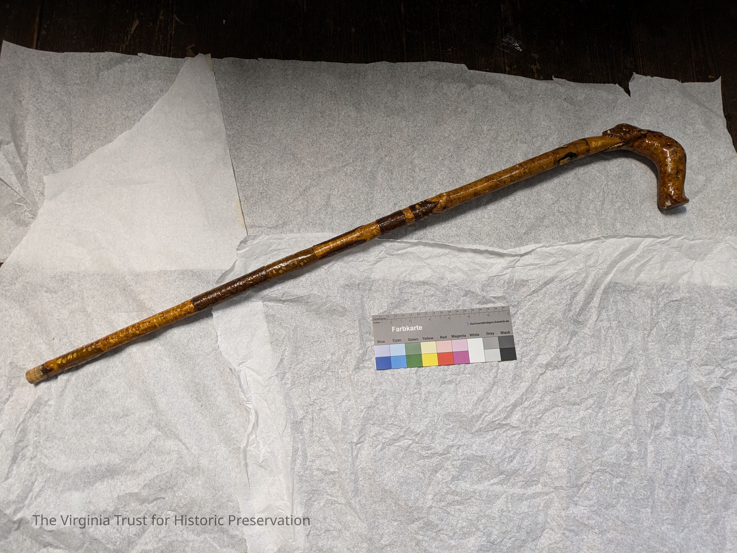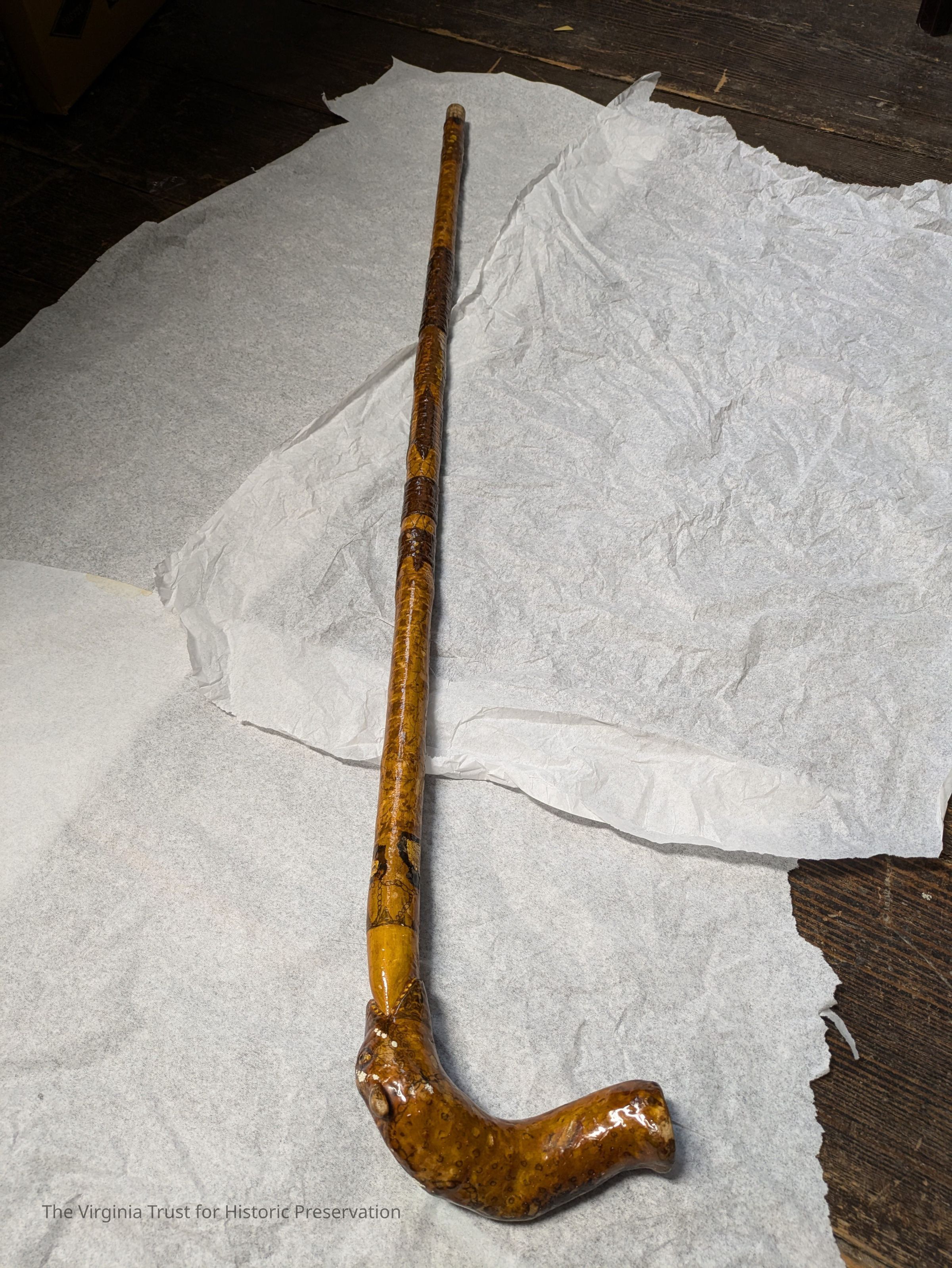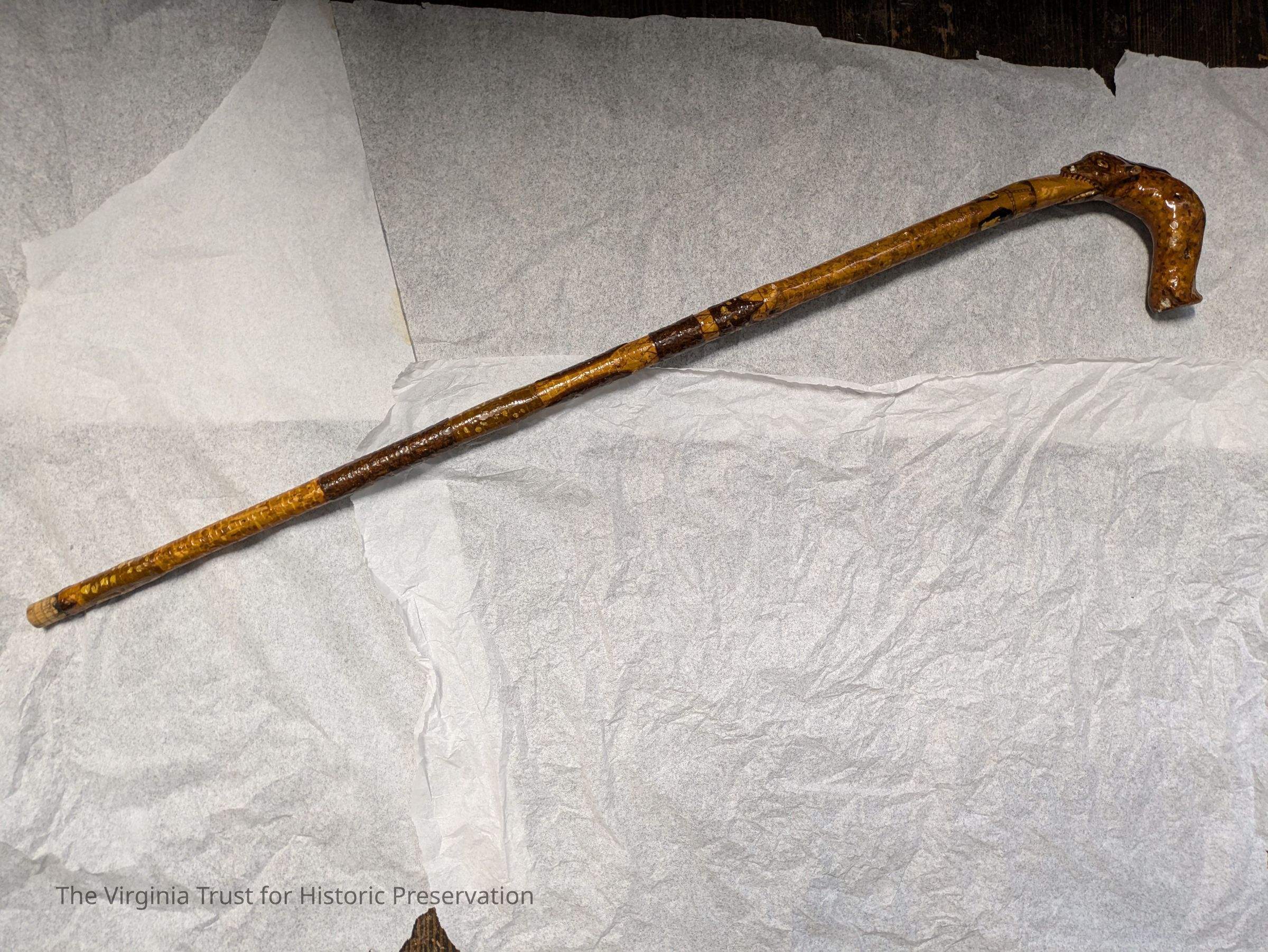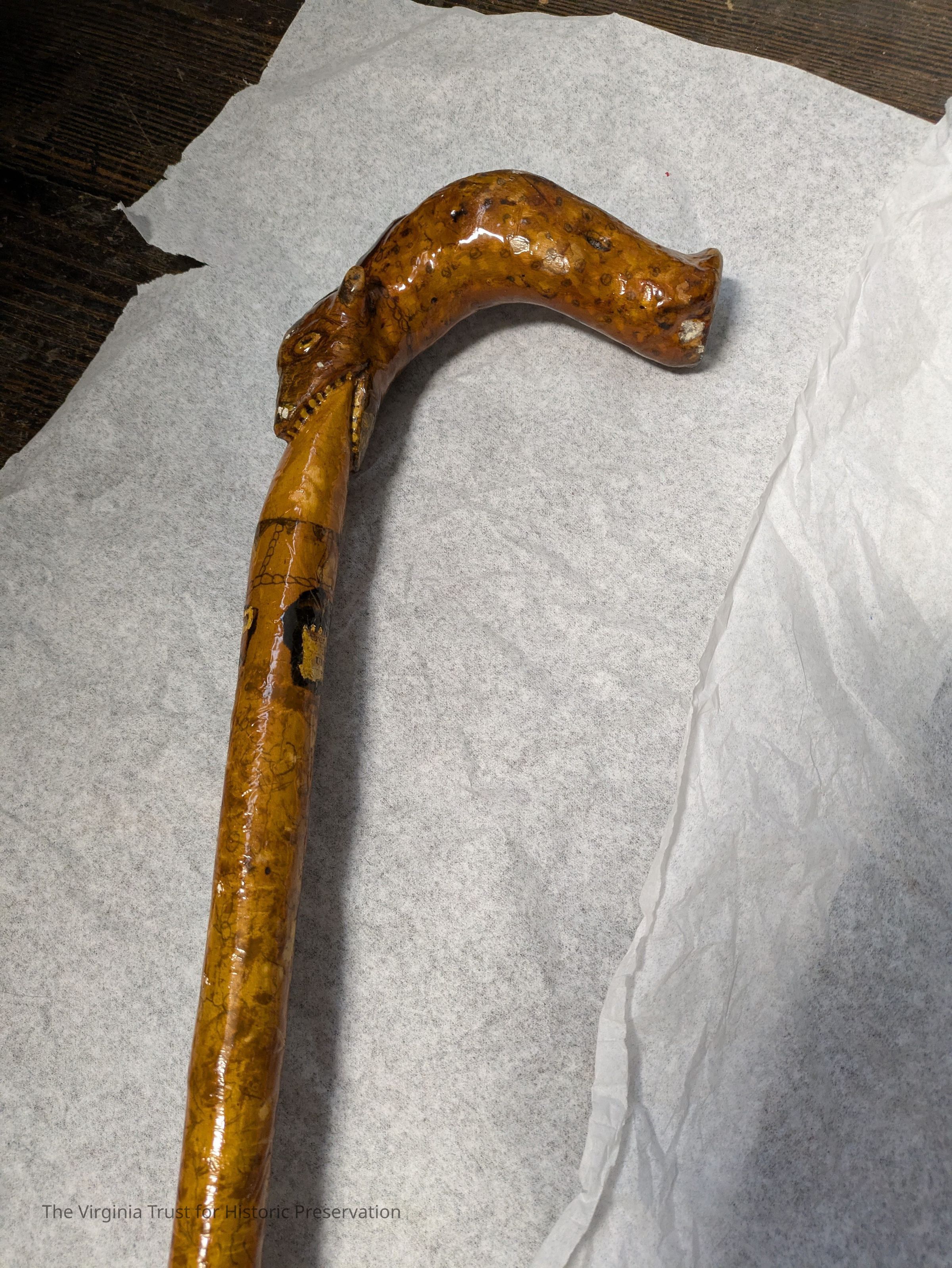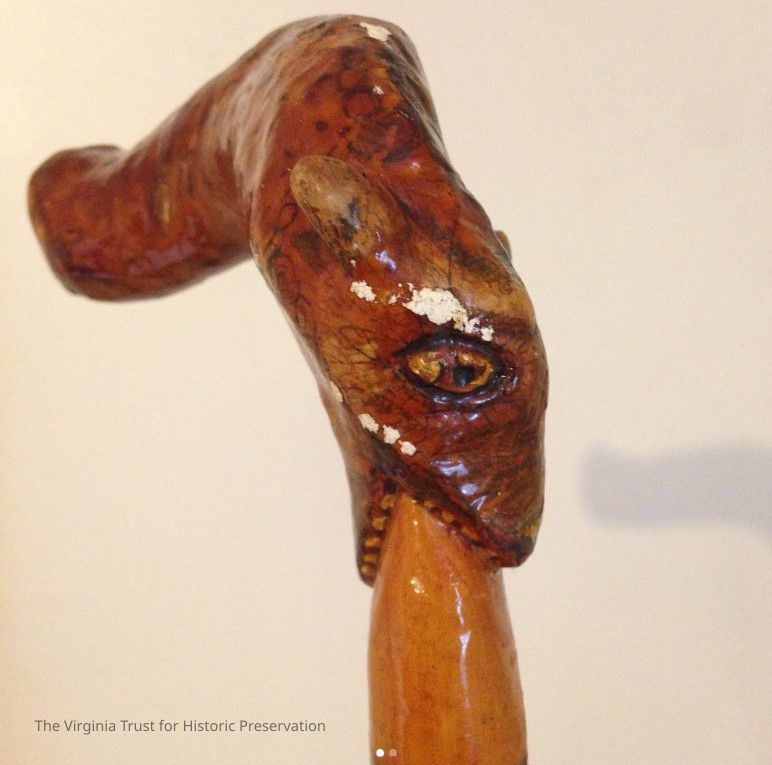 Wooden walking stick with a carved animal head at the top, used by John L. Lewis.