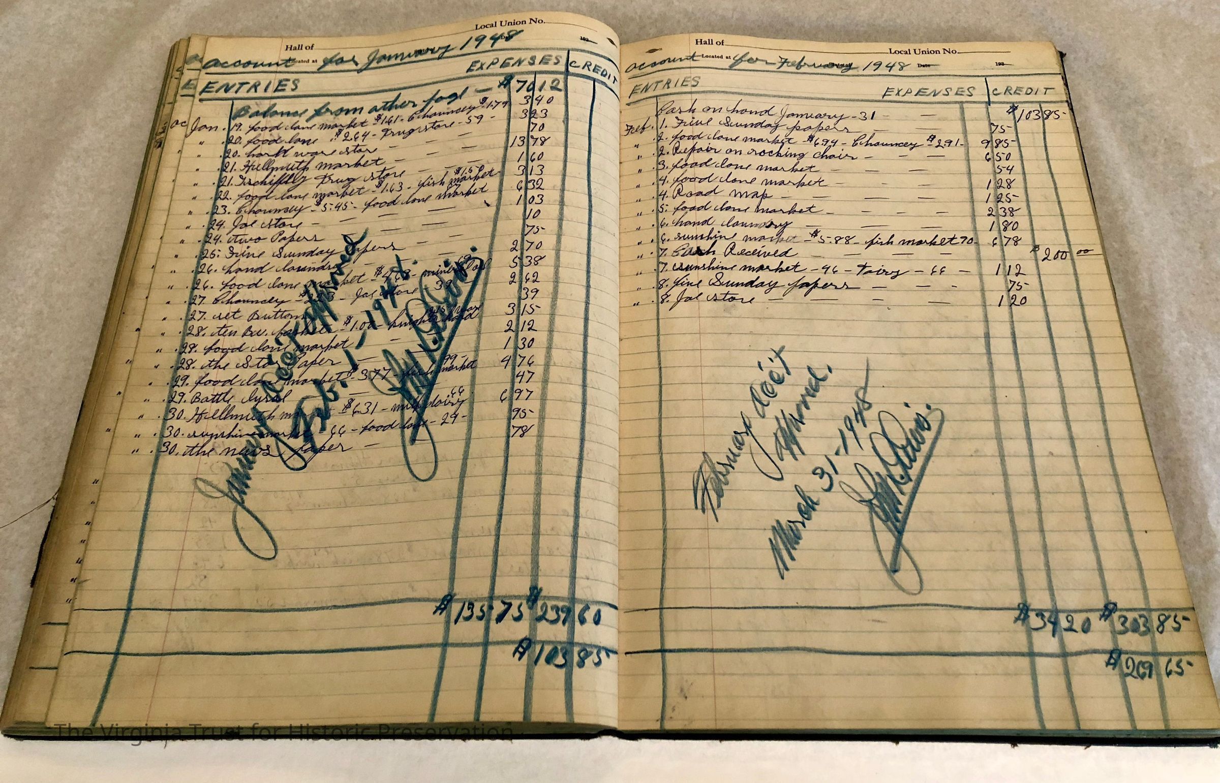 An account book of household expenses, maintained by James Lewis who worked as a steward for John L. Lewis at 614 Oronoco St.
