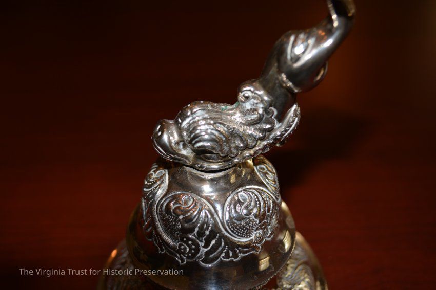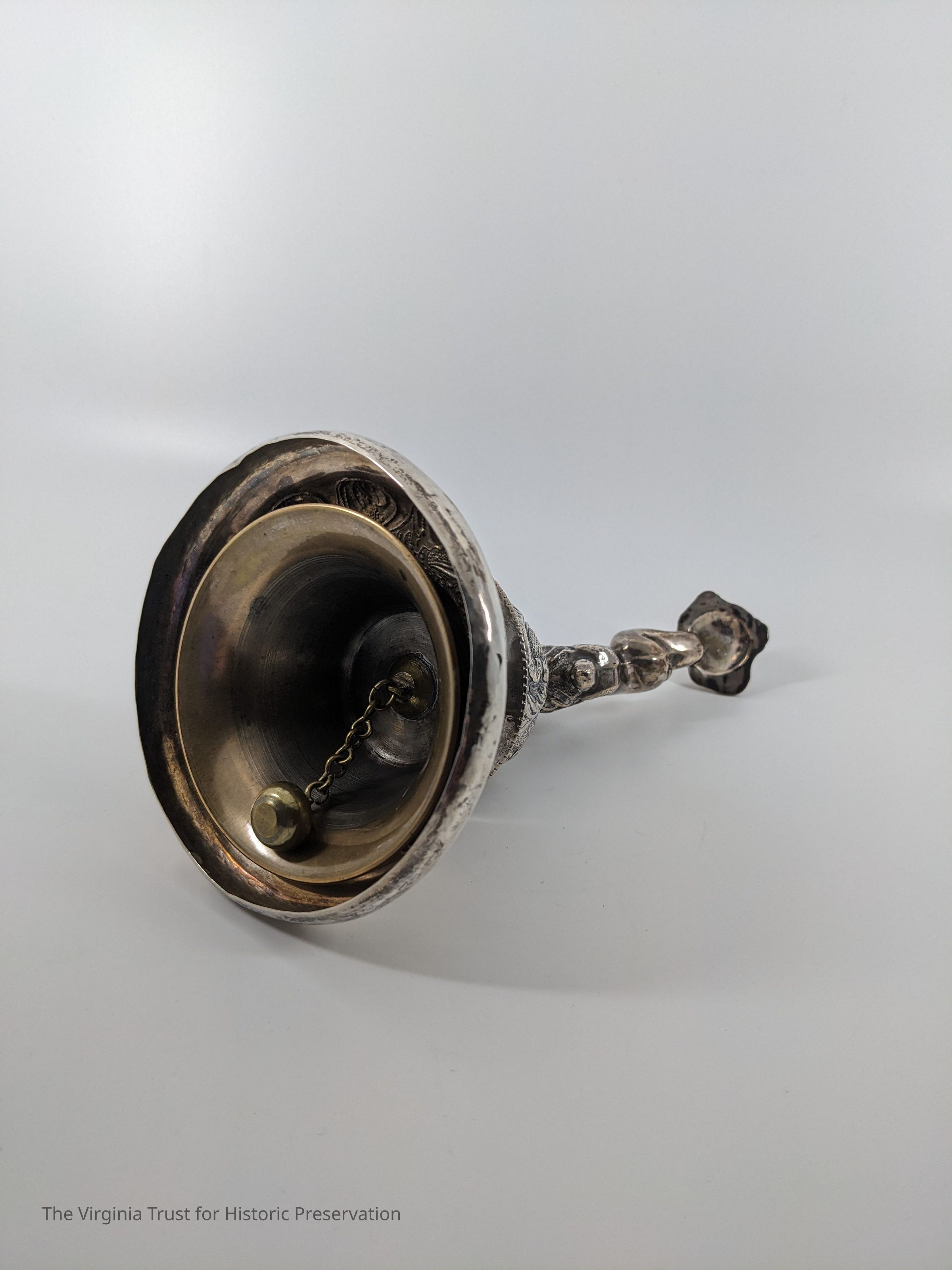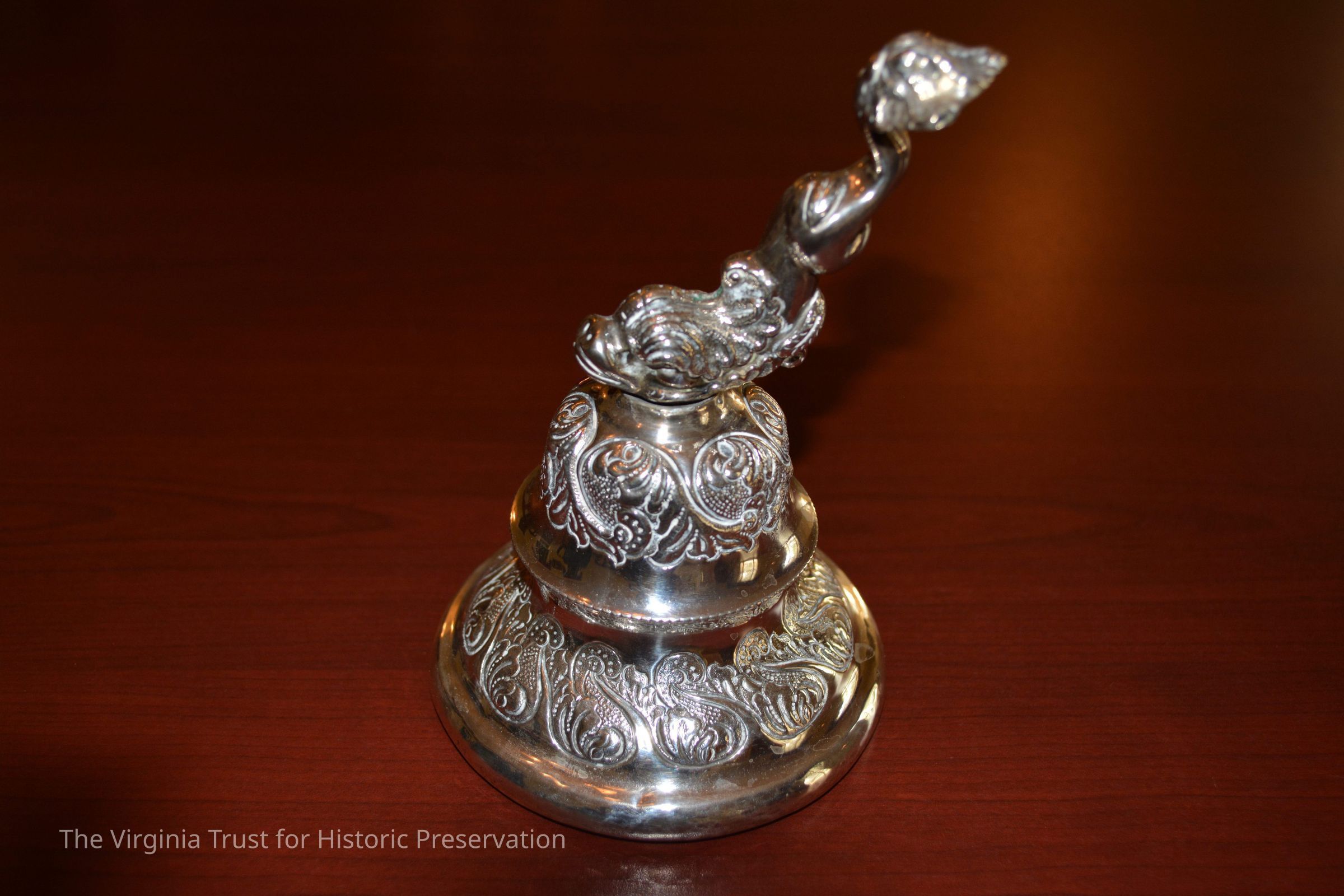 Mid 19th century, Dutch, solid sliver, ogee table bell. Tapering circular form. C.1860. Sea and dolphin motifs, dolphin handle. Good condition.