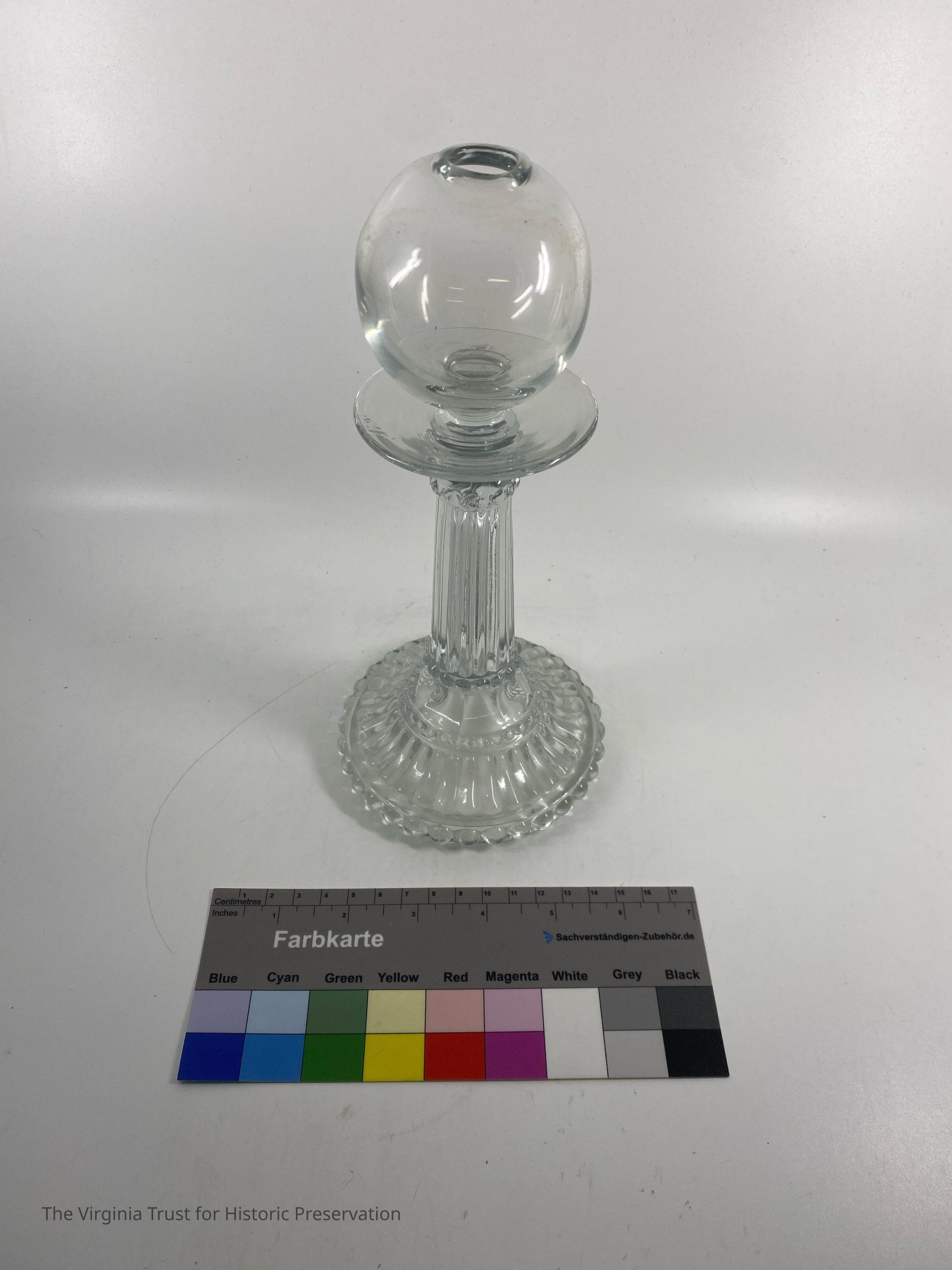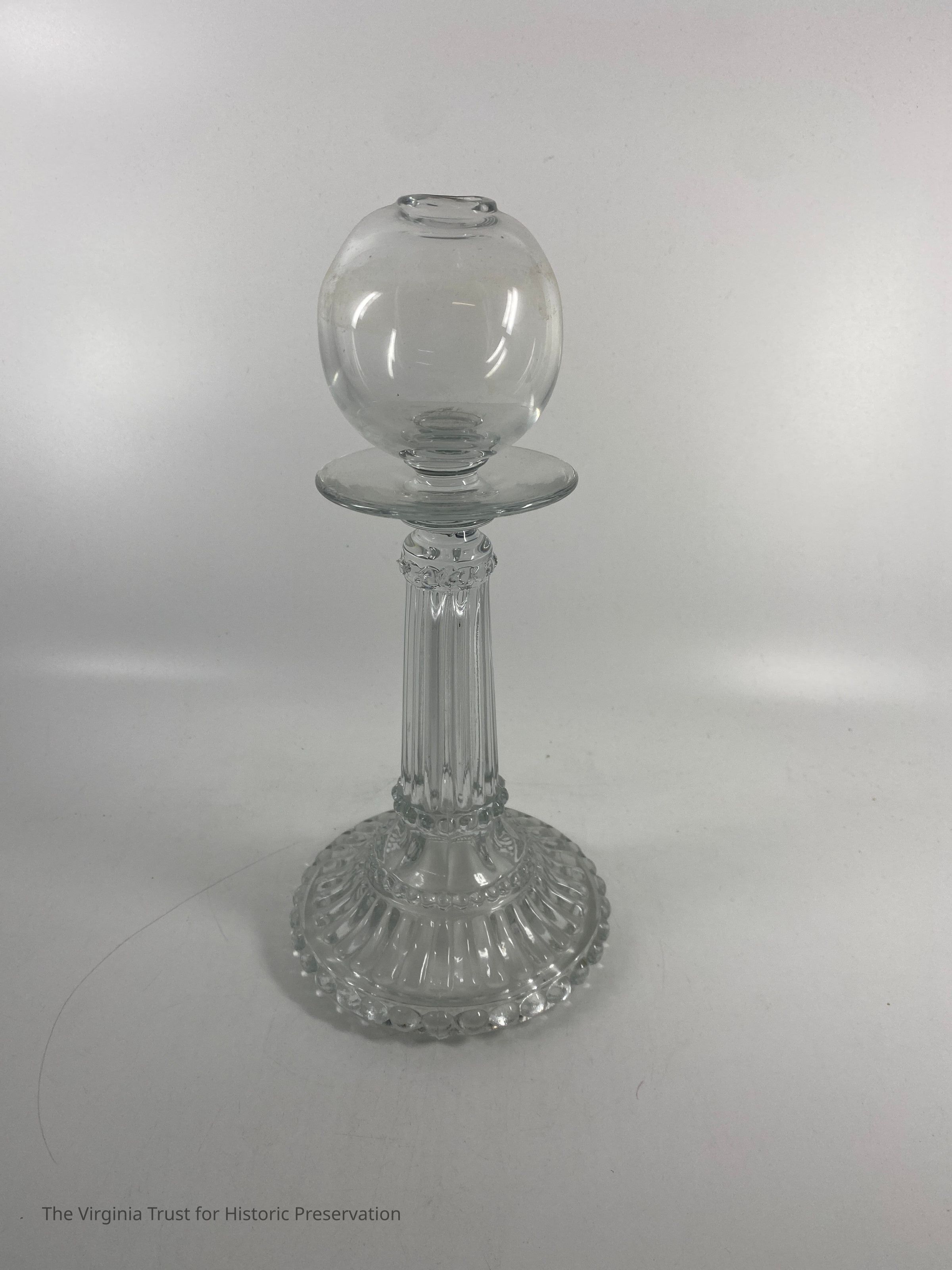 Glass Whale oil lamp, nineteenth century, molded base with blown top. Dimensions: 9.5" height x 4.5" Diameter