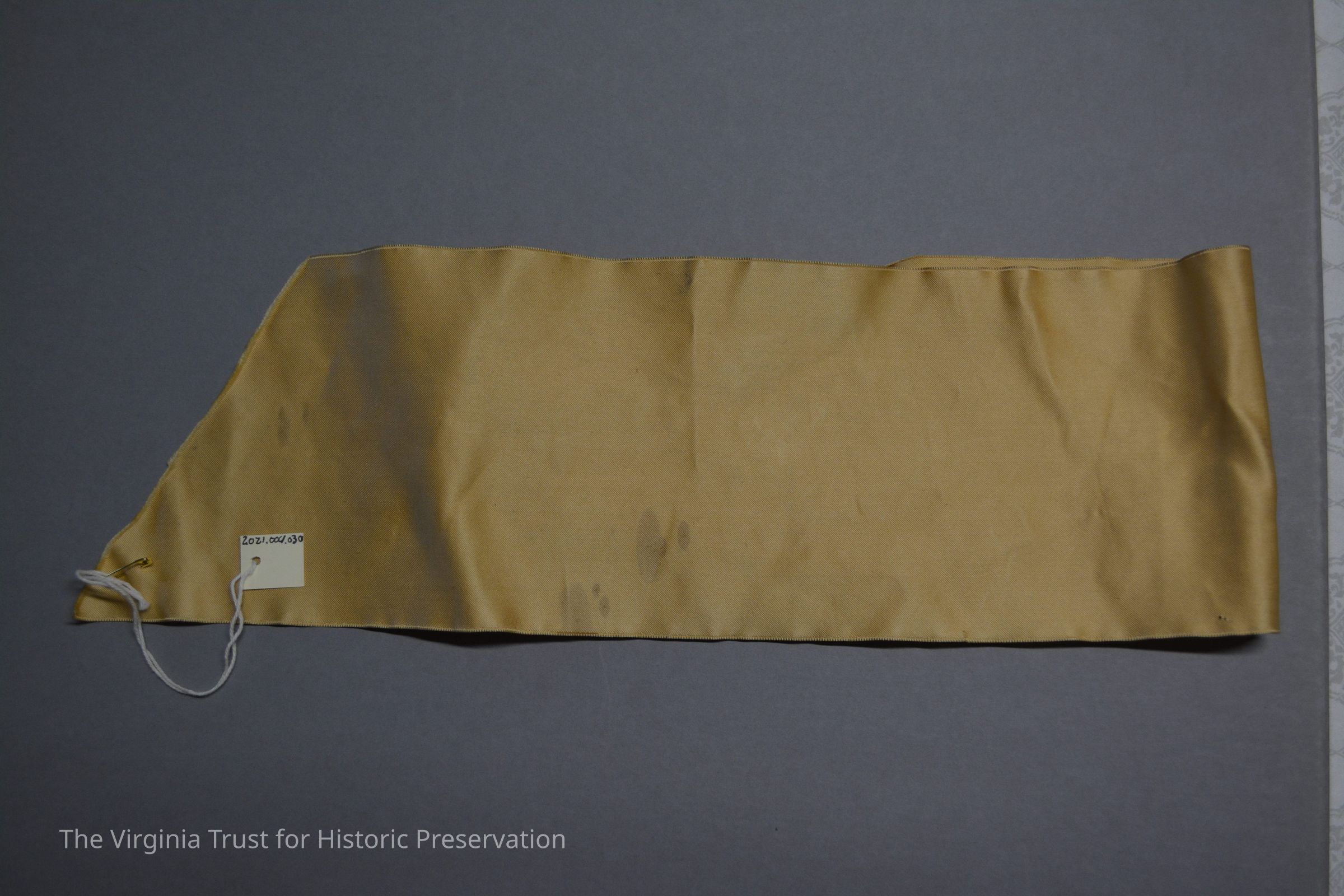 Bolt of gold fabric, possibly left over from another project that was unfinished.