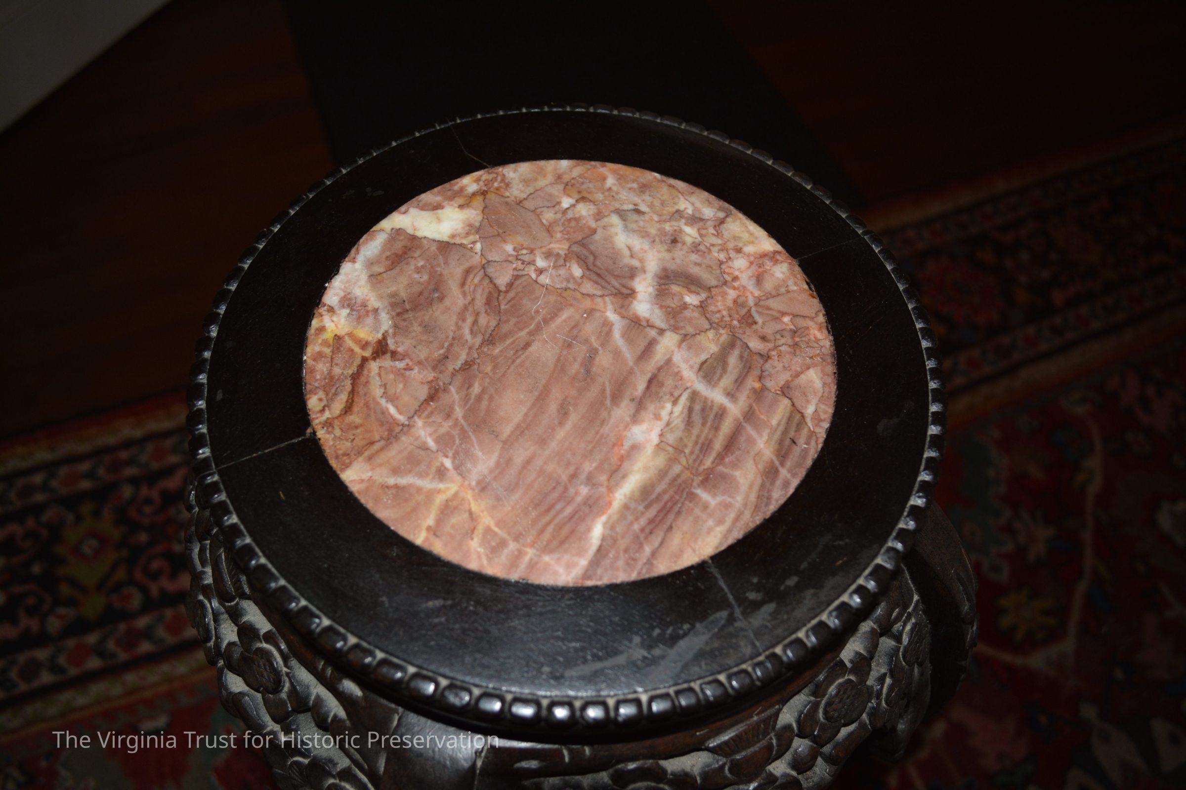 Asian Style Plant Stand with Pink Marble Top