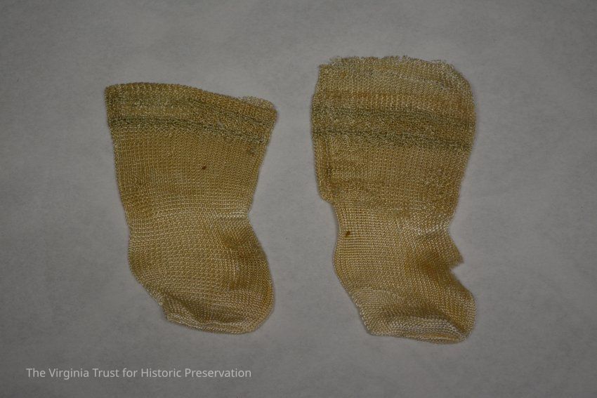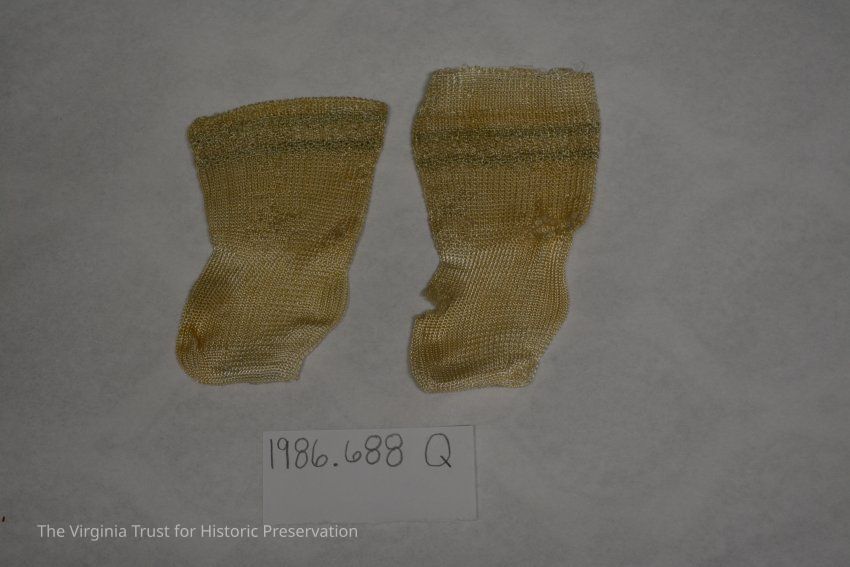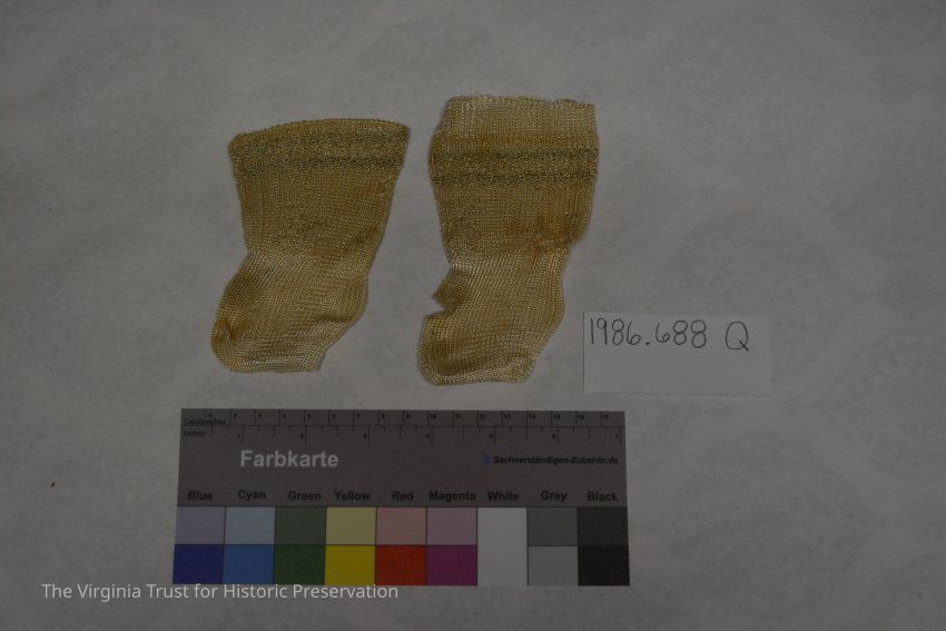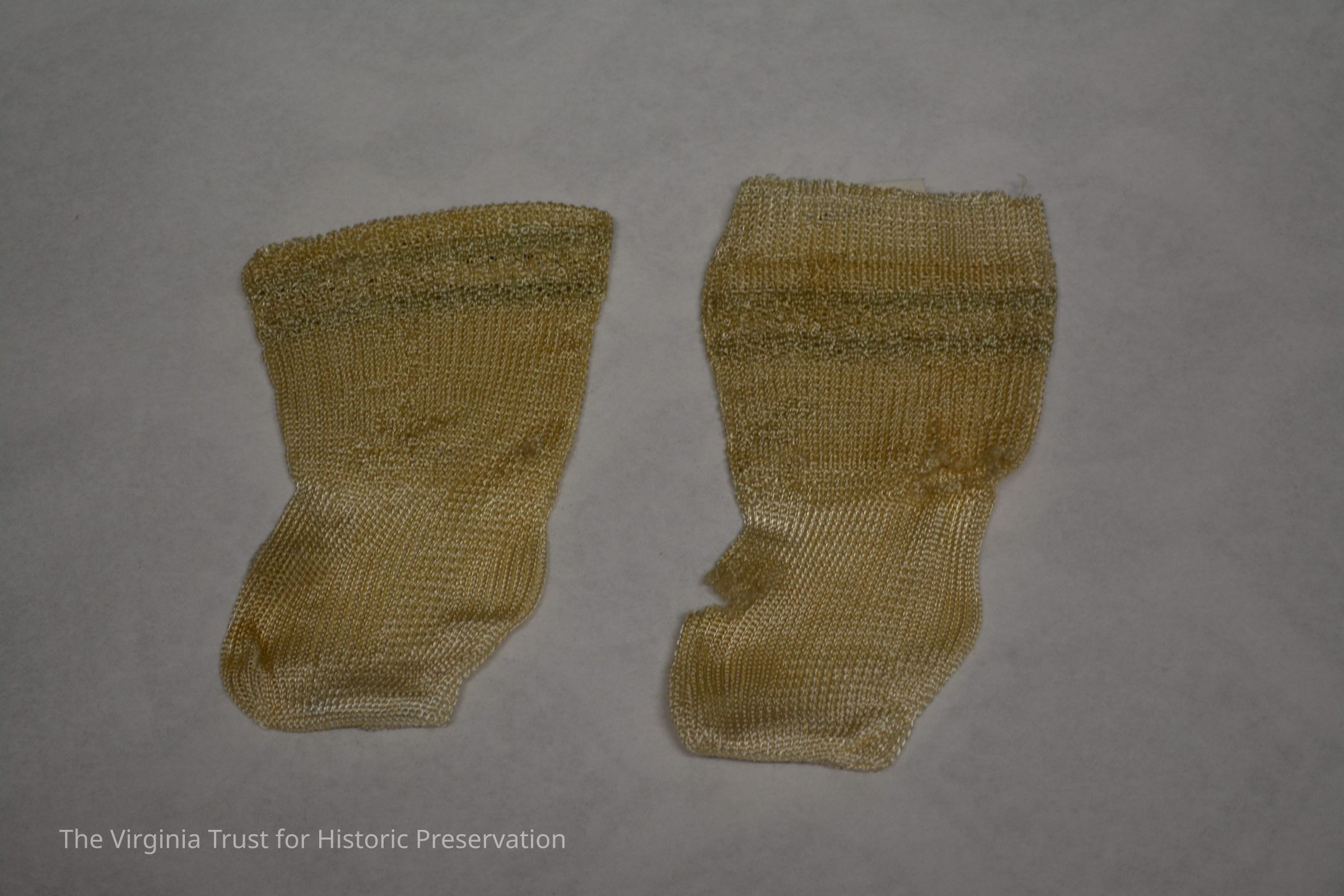 Pair of stockings. Originally reported as white in color but now (2022) more gold.