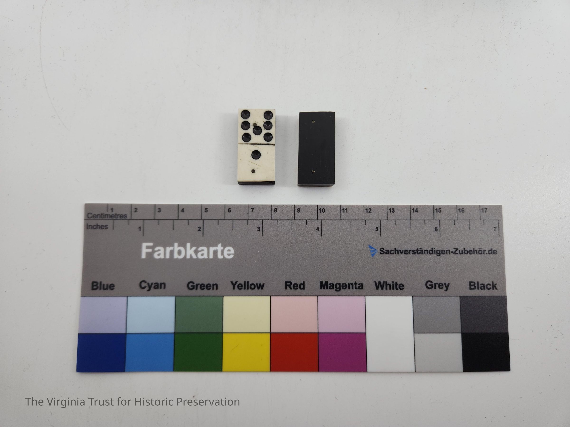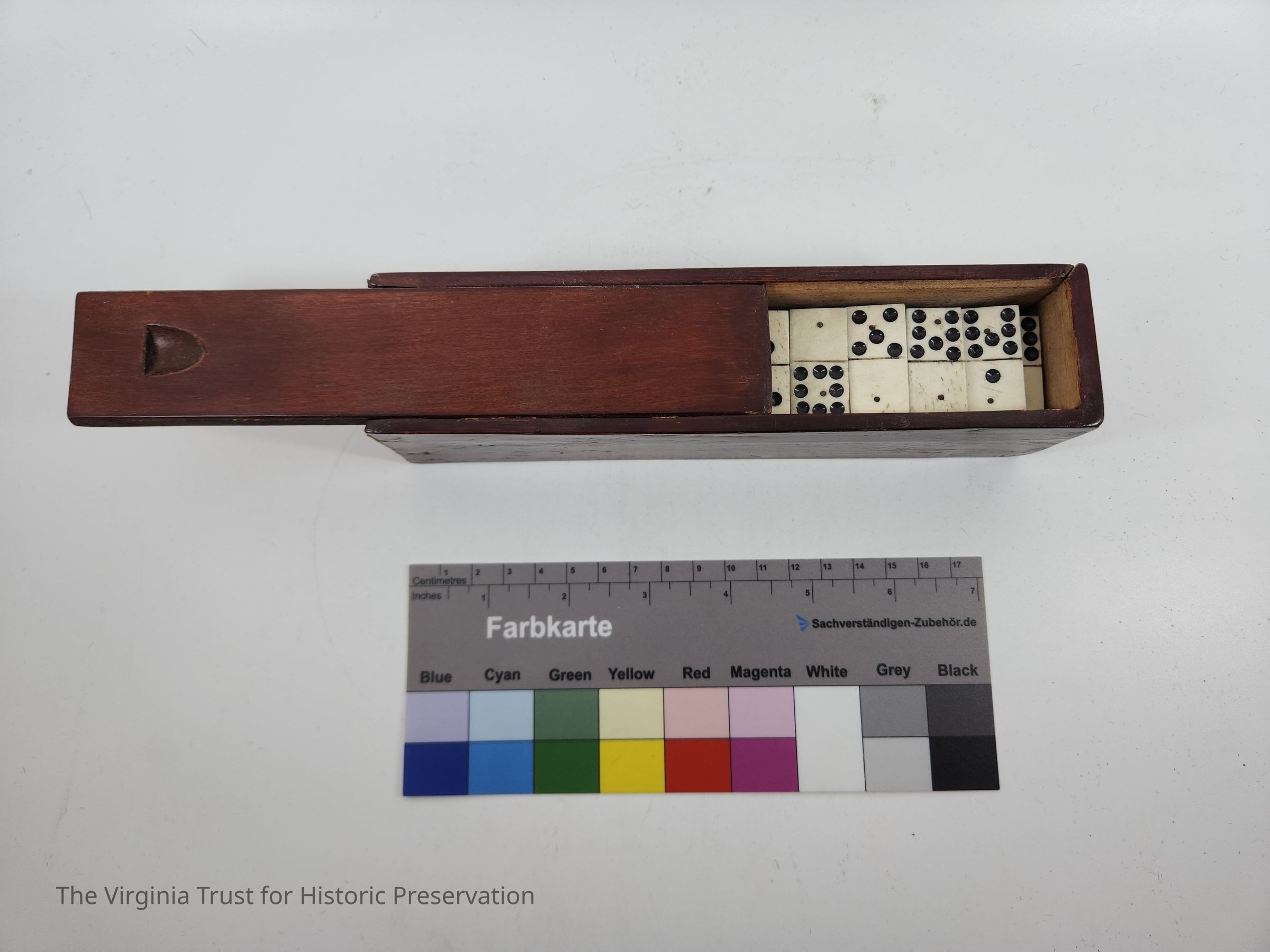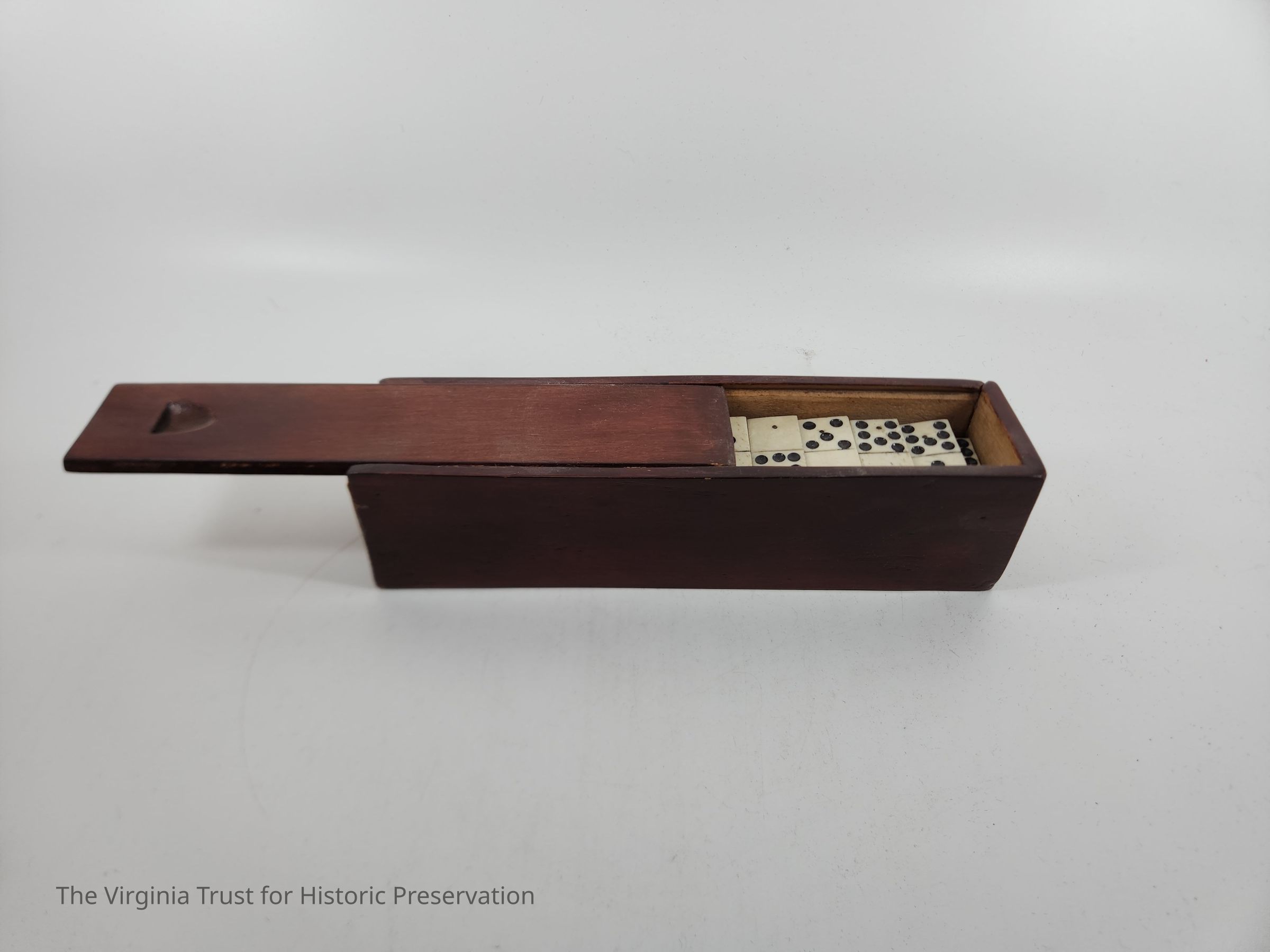 Box: 7.5" x 1.75" x 2" Domino pieces: 1.25" x 0.625"