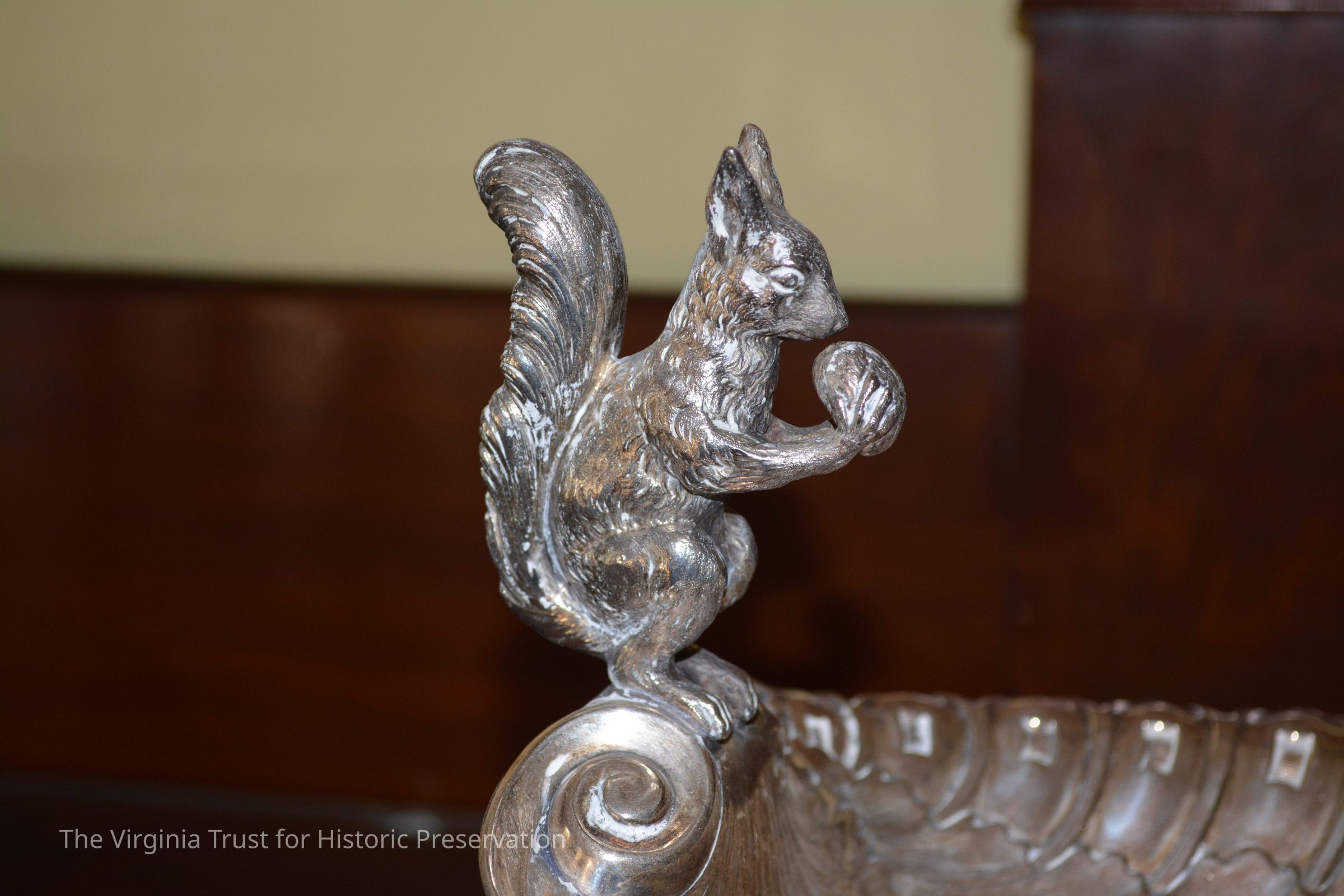 Antique silver plates squirrel nut dish. Victorian, c. 1900. Underside is stamped EPNS (Electro-Plated Nickel Silver), making this an English-made example.