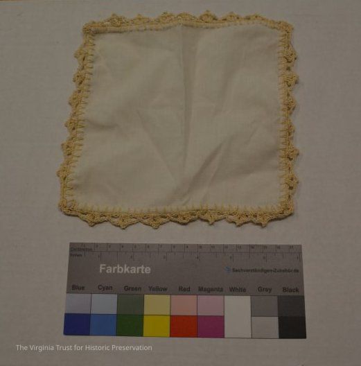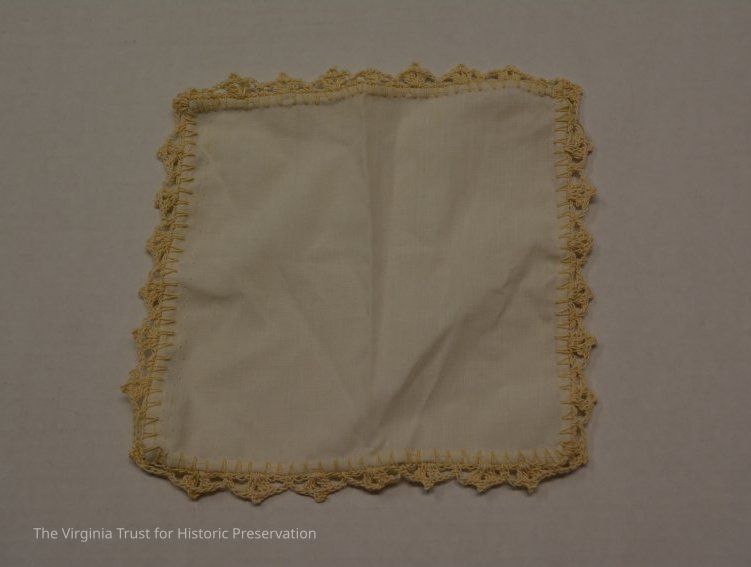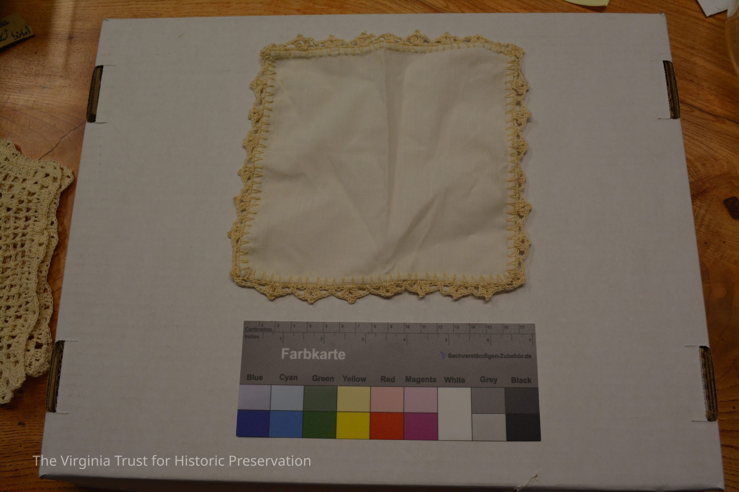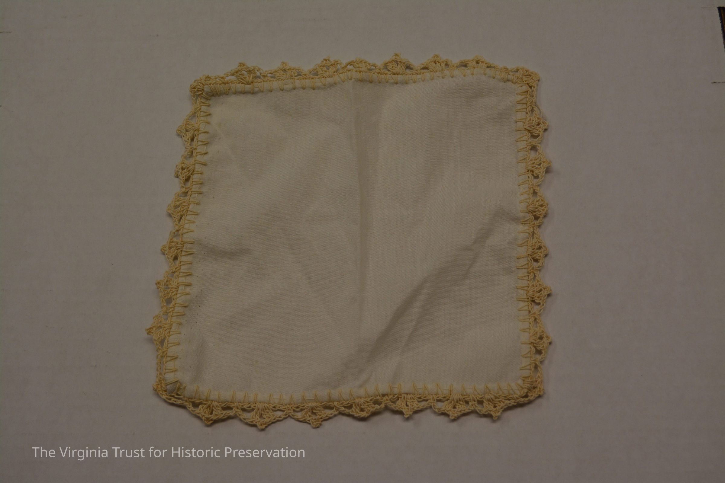 One of three vintage handmade and crocheted doilies. Crocheted only around the edges of plain cotton cream material.