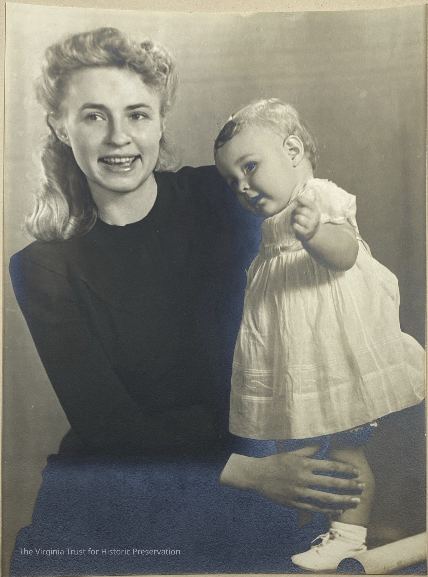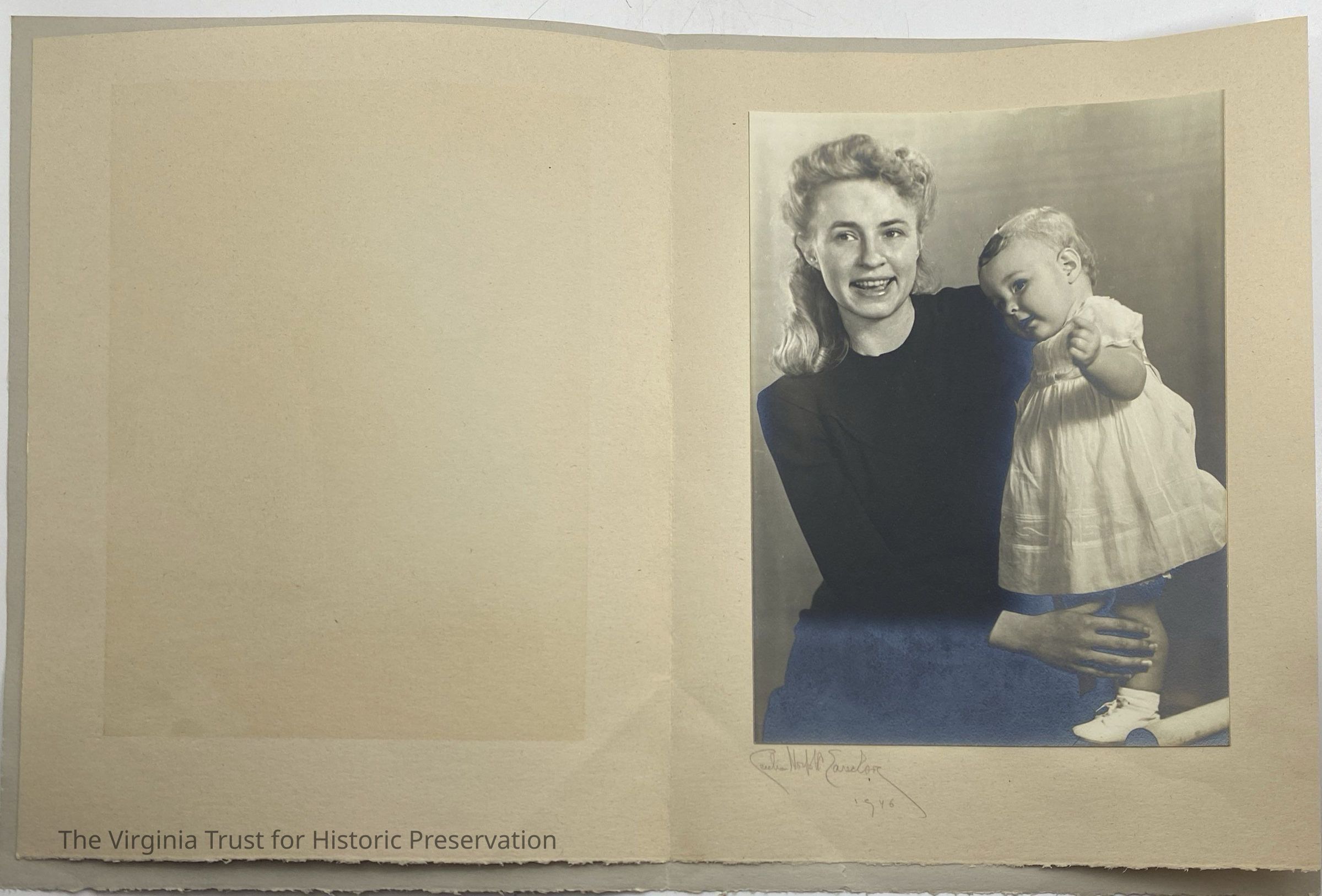 Photograph of a woman and child, probably a relative of John L. Lewis, enclosed in a folded board cover. Photograph is glued to an interior page of the cover.Dimensions