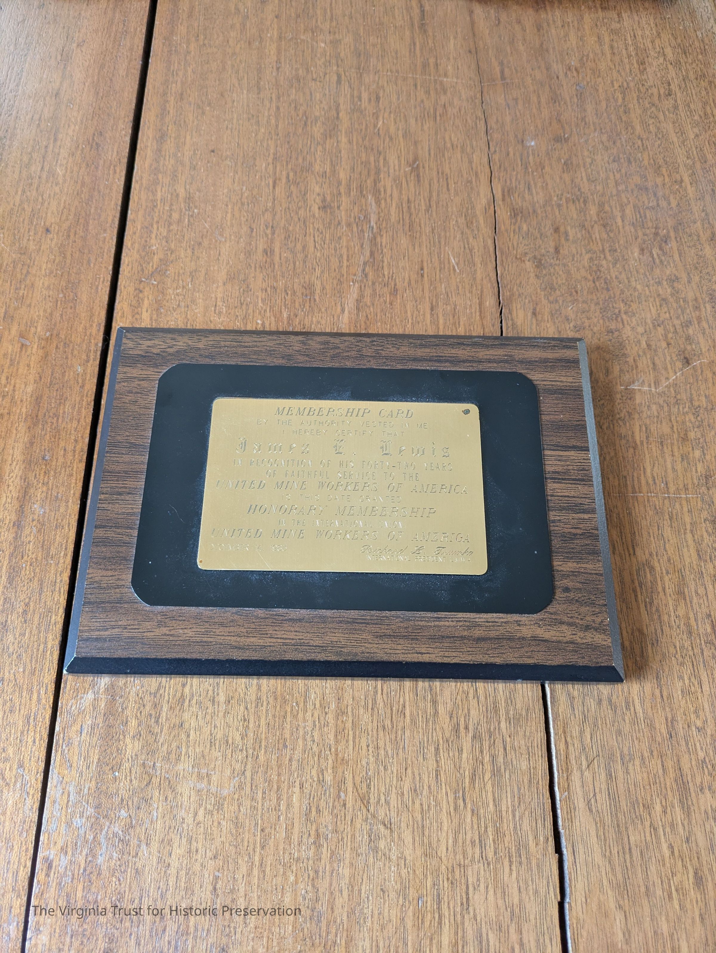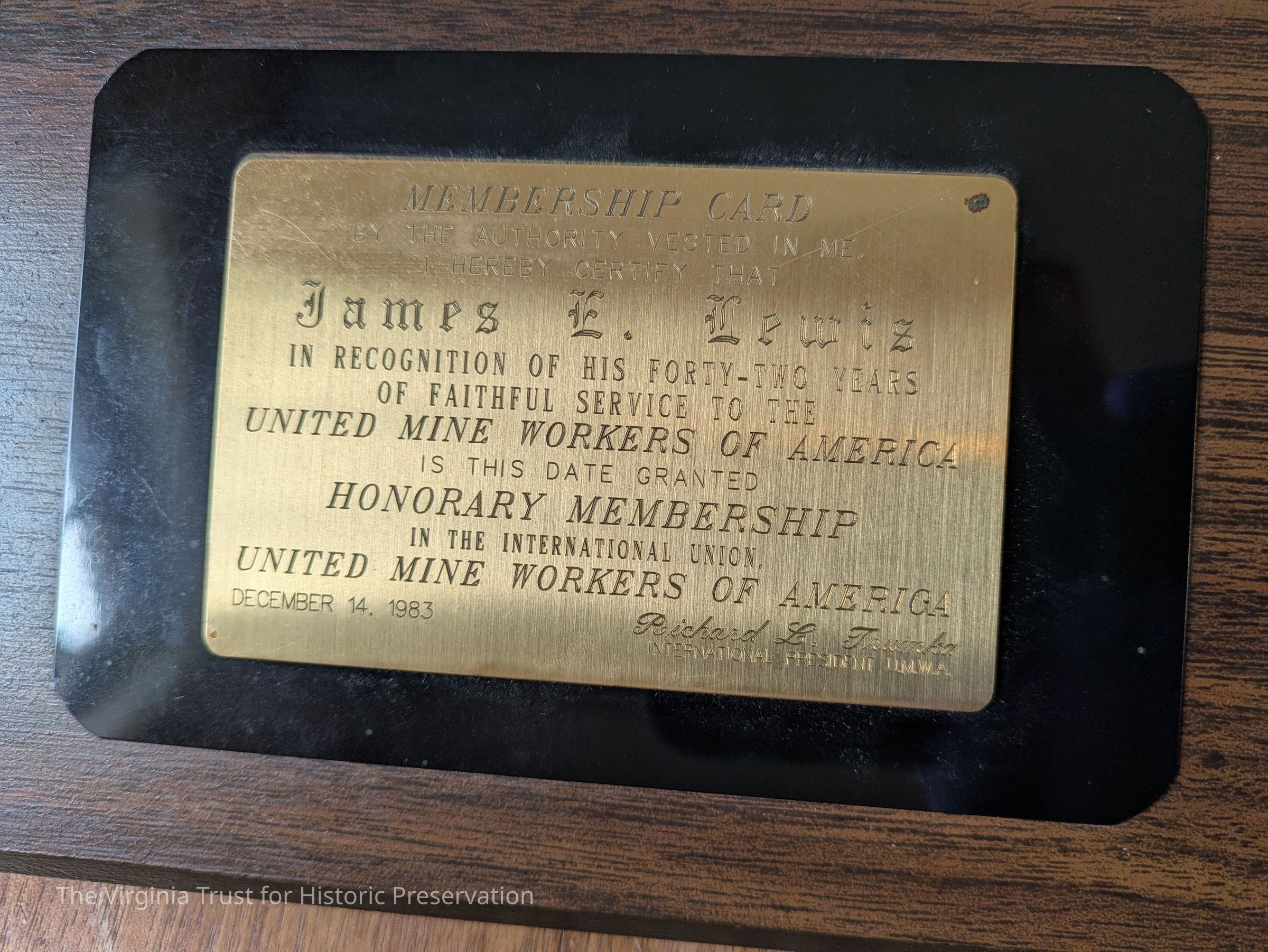 Honorary membership award for James Lewis from the United Mine Workers of America