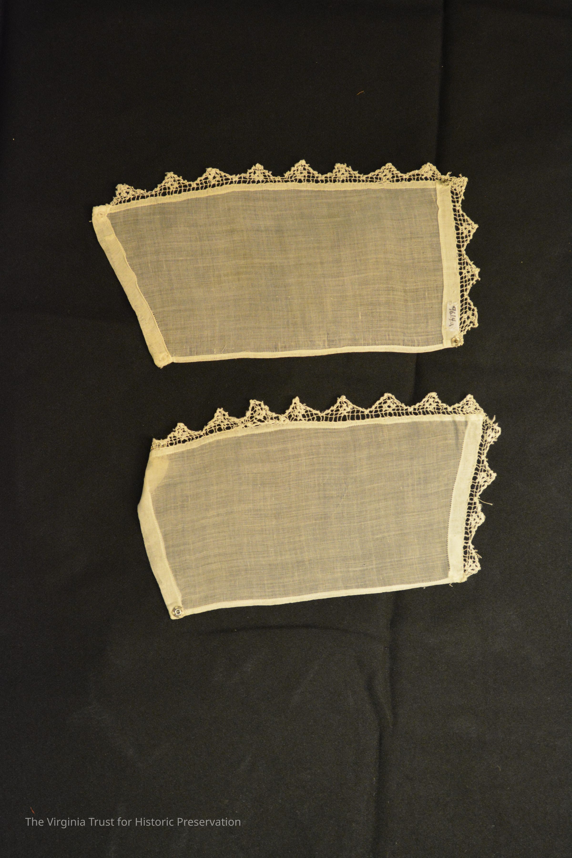 Set of cotton lawn white rectangular cuffs with triangular edging; made and worn by Elizabeth Dean Anderson.