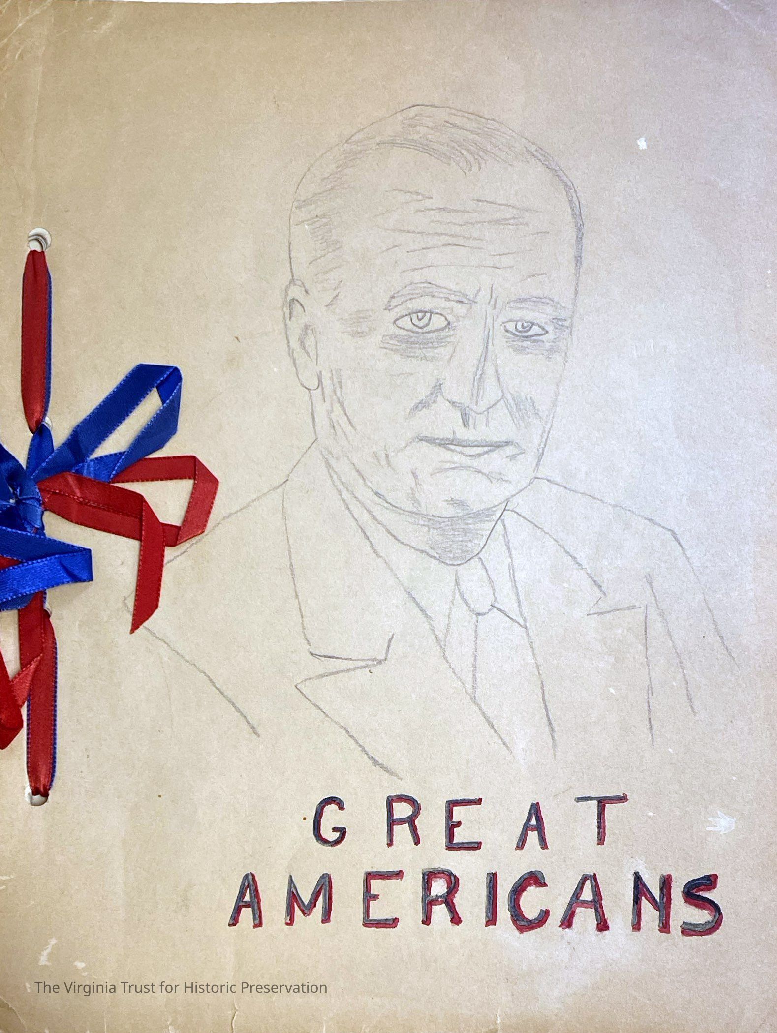 Booklet that was a school assignment. Titled "Great Americans", and includes drawings and write-ups of President Roosevelt (FDR), Harlan Stone (Associate Justice of Supreme Court), Vice President Wallace (Henry A. Wallace), Harry Hopkins (Secretary of Commerce), Cordell Hull (Secretary of State), General MacArthur, William Green (Labor Advisory Council, NLRB), Frank Knox (Secretary of Navy), John L. Lewis.
