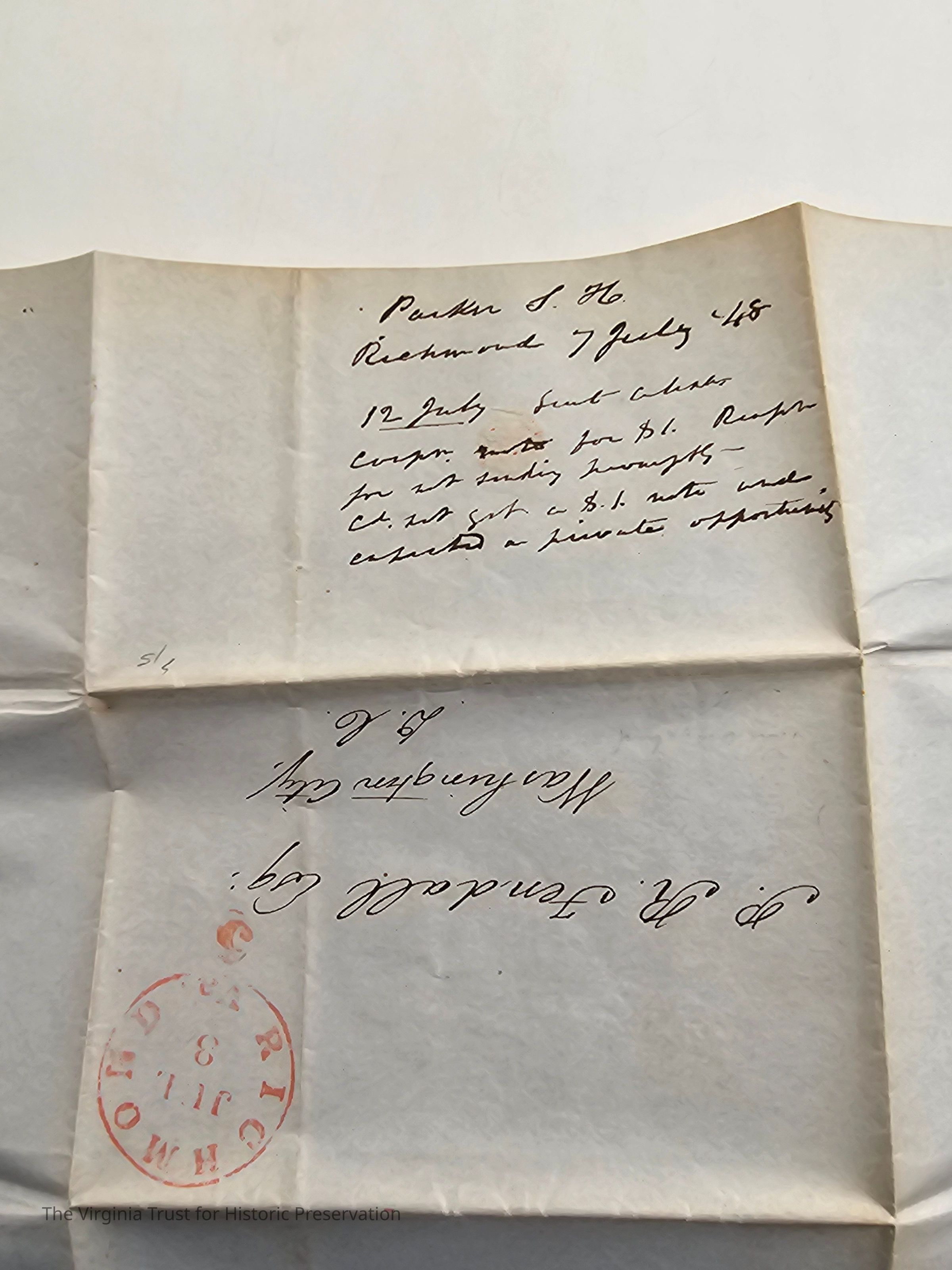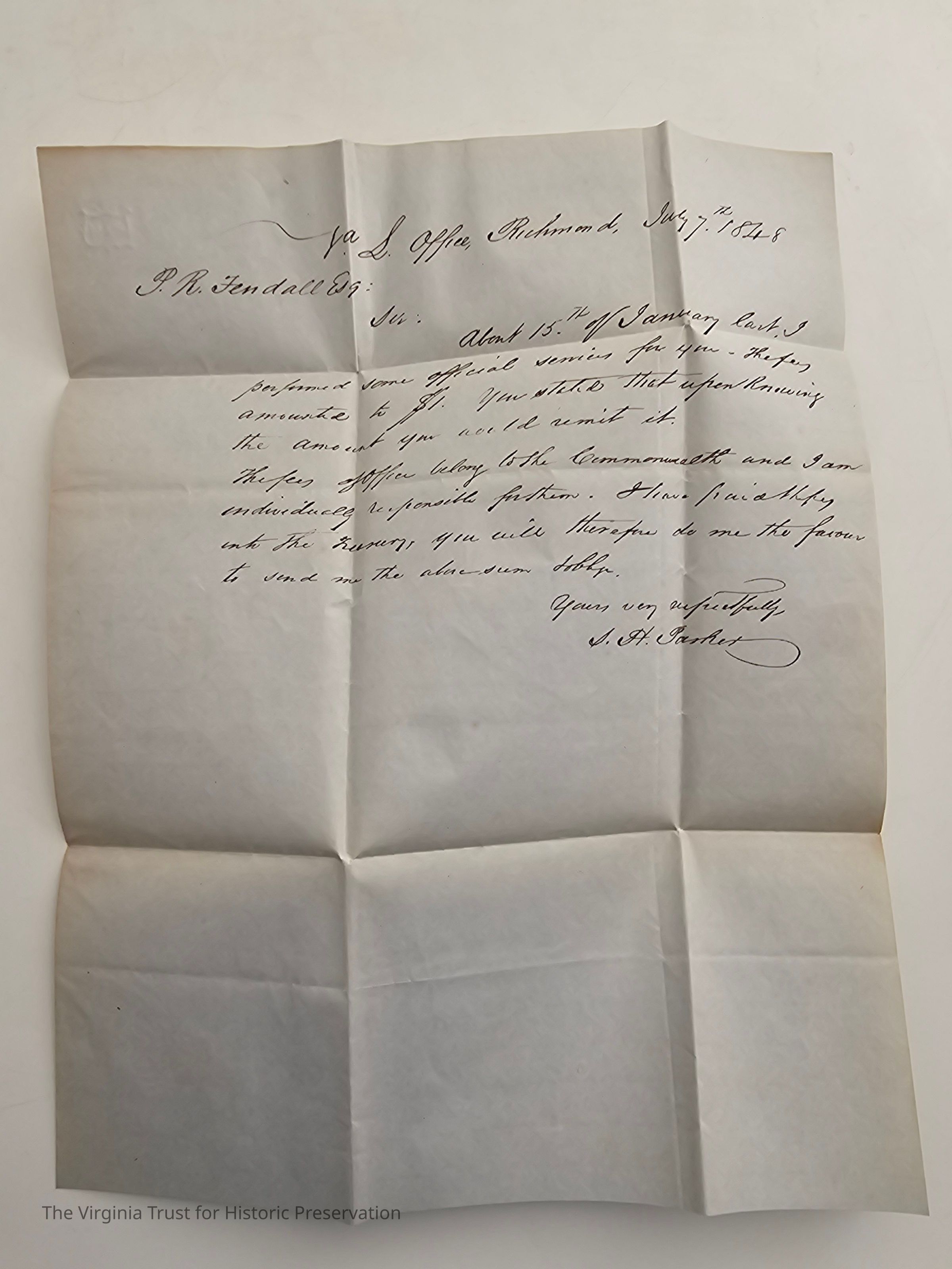 Letter written to Phillip Richard Fendall, Esq. by I. H. Parker, July 7, 1848.