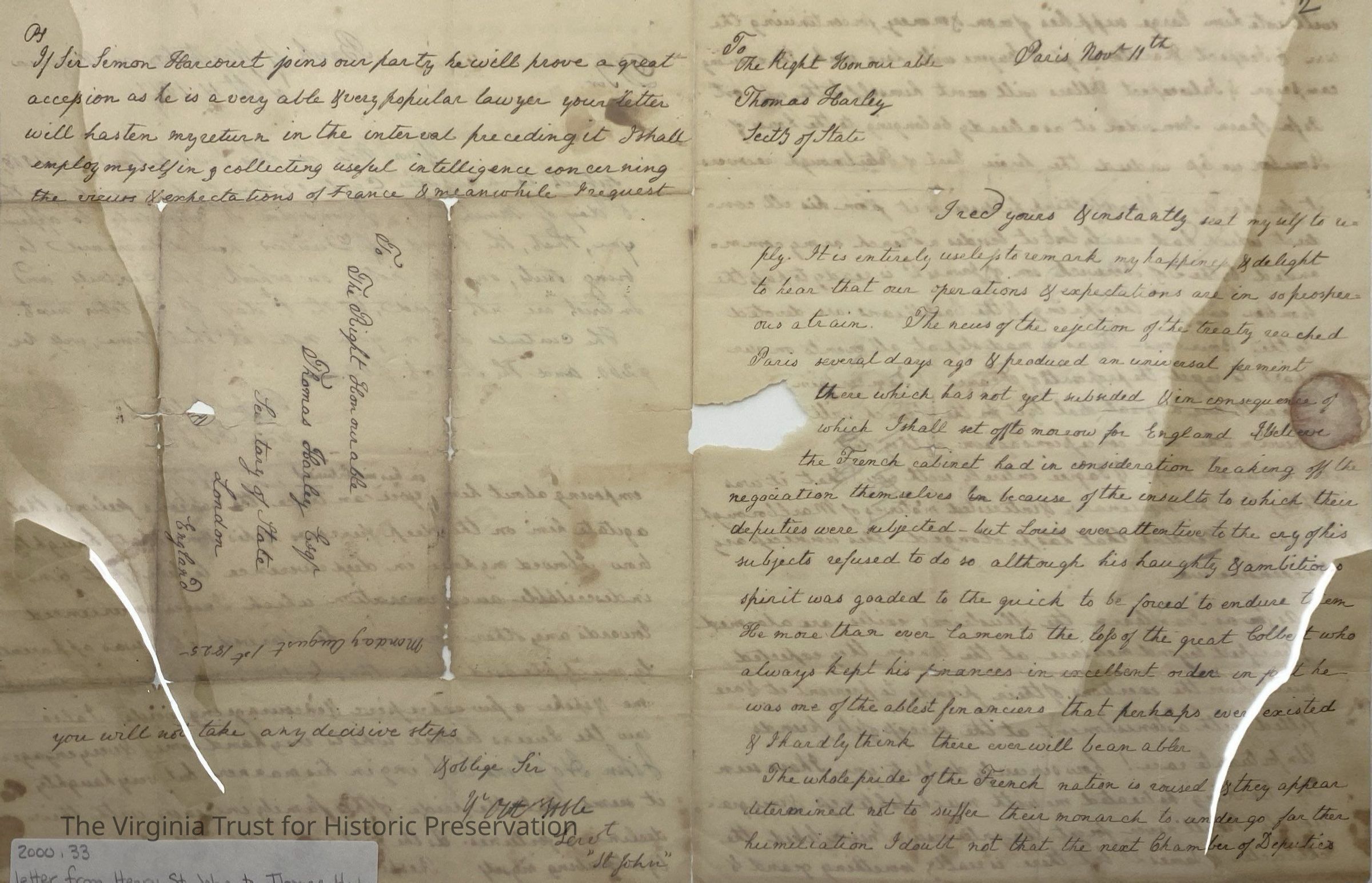 Handwritten letter from Henry St. John to Thomas Harley. Two pages double-sided. Dated September 11, 1817.Dimensions