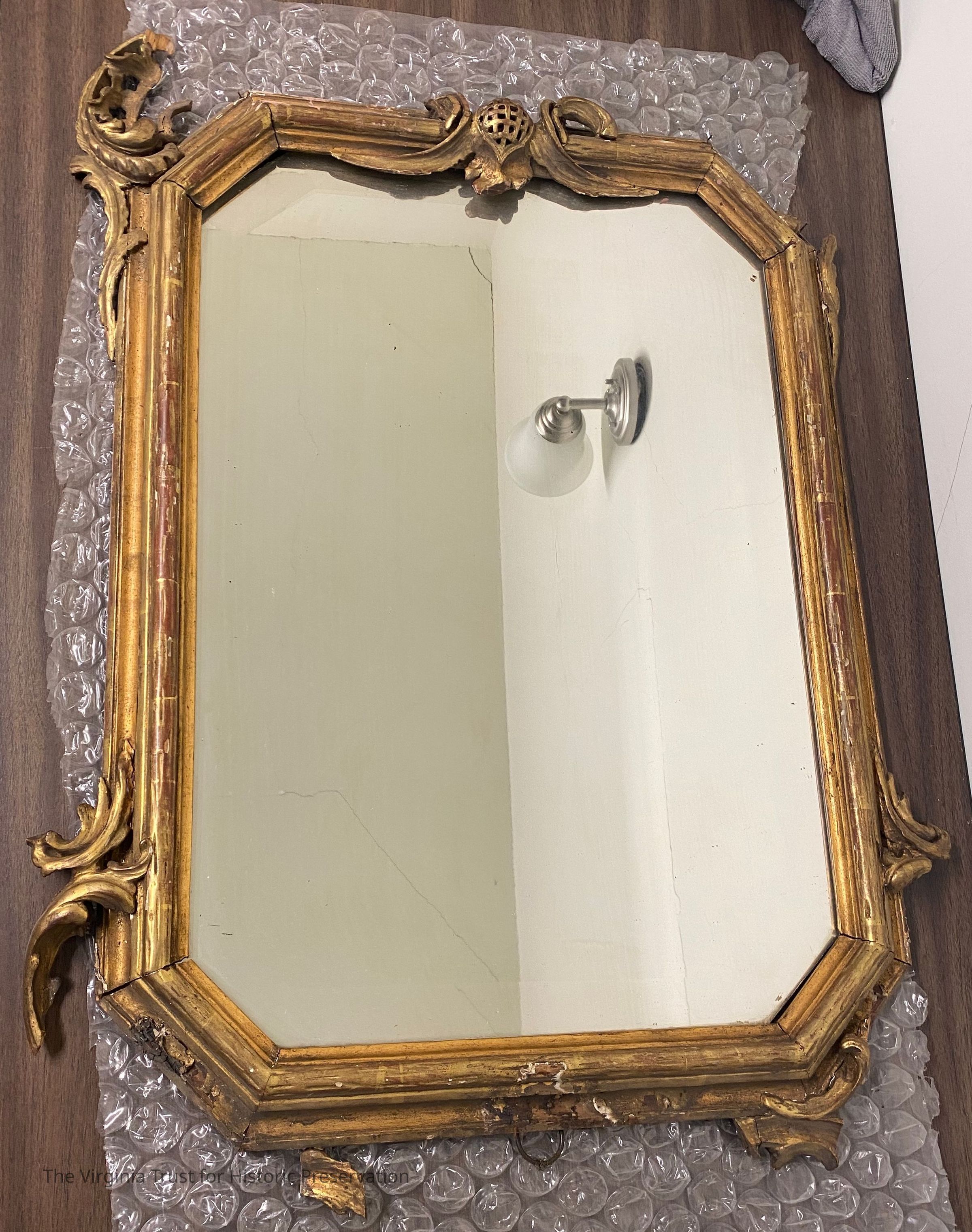 Octagonal Chippendale mirror in ornate gilded frame. Ornate floral designs along frame edges.
