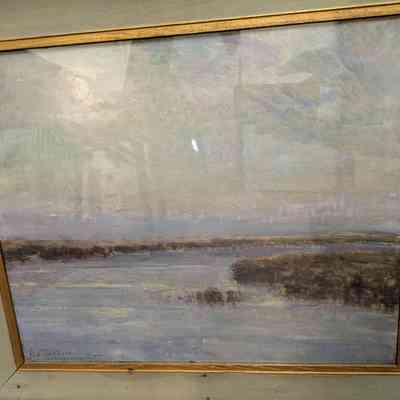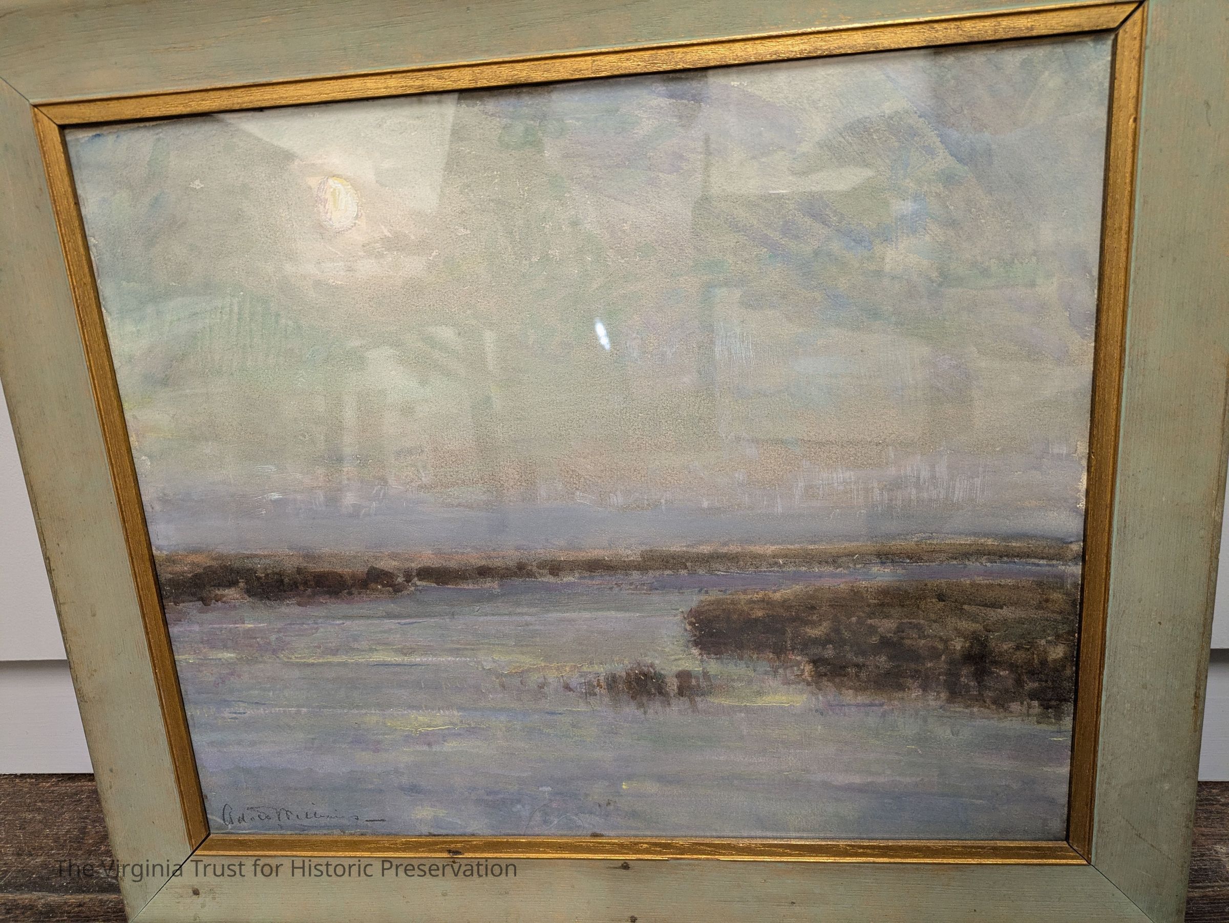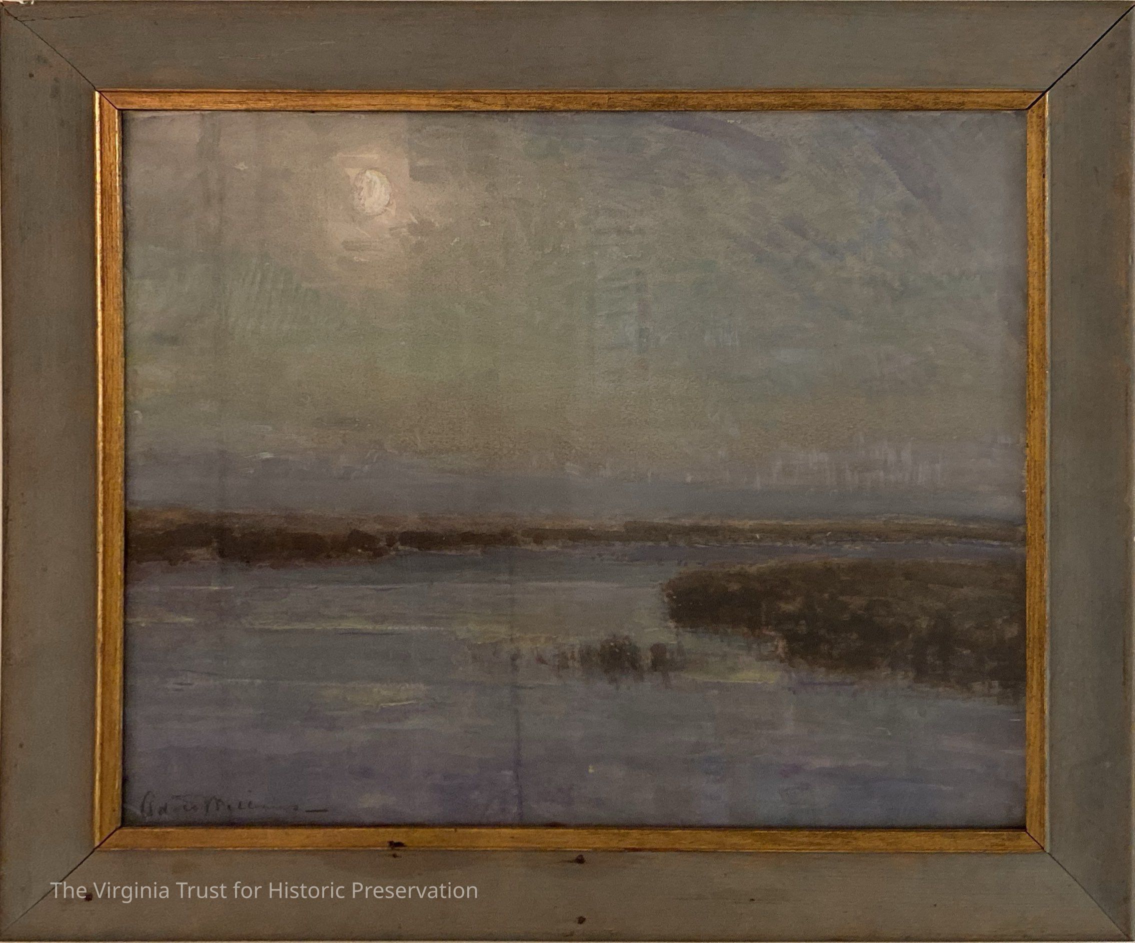 Framed pastel: "Blue Lagoon with Moon" by Alice Williams