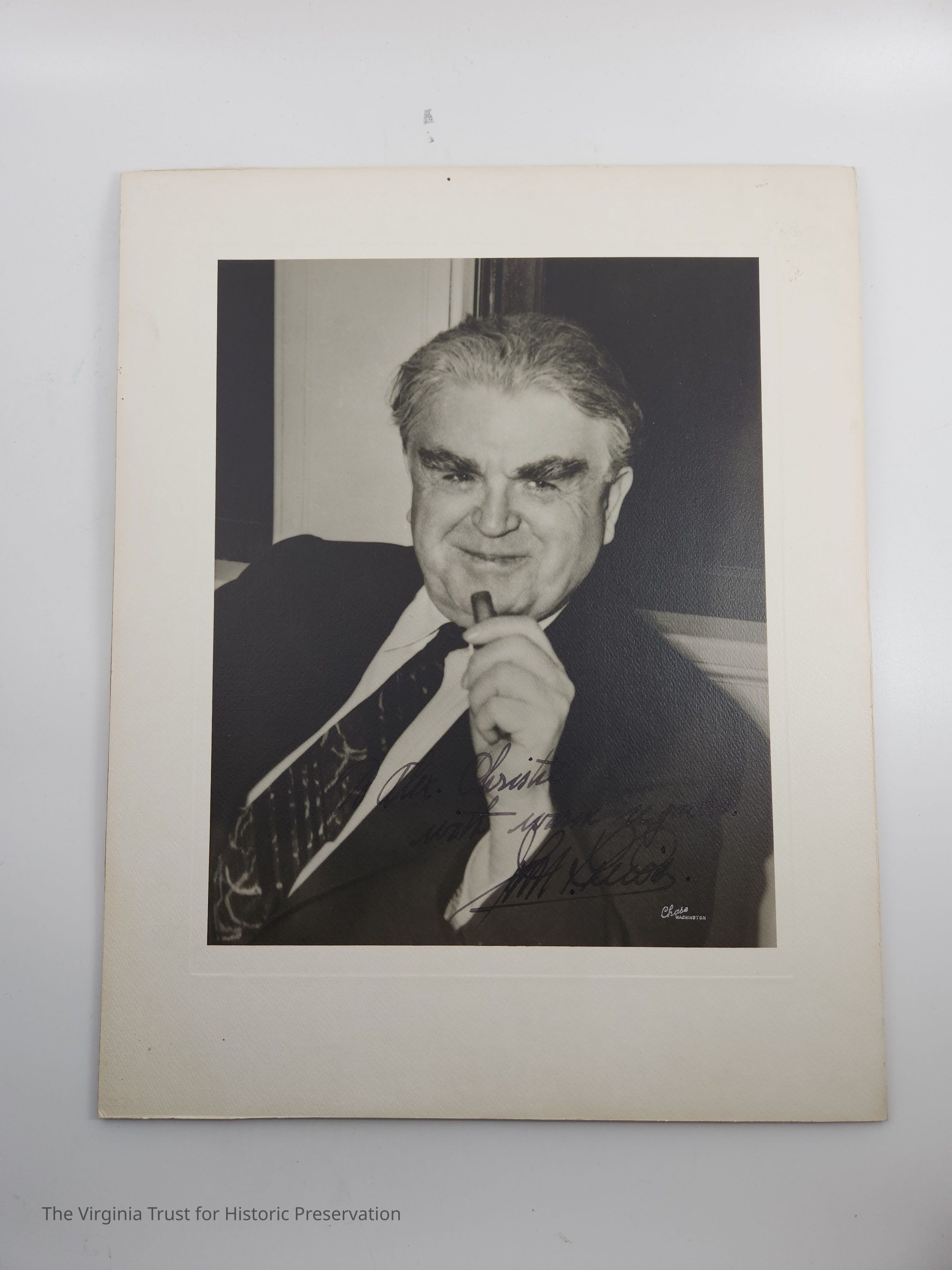 Photograph of John L. Lewis; autographed "Alex. Christie with warm regards. John L. Lewis"; studio marked in lower right corner "Chase Washington."