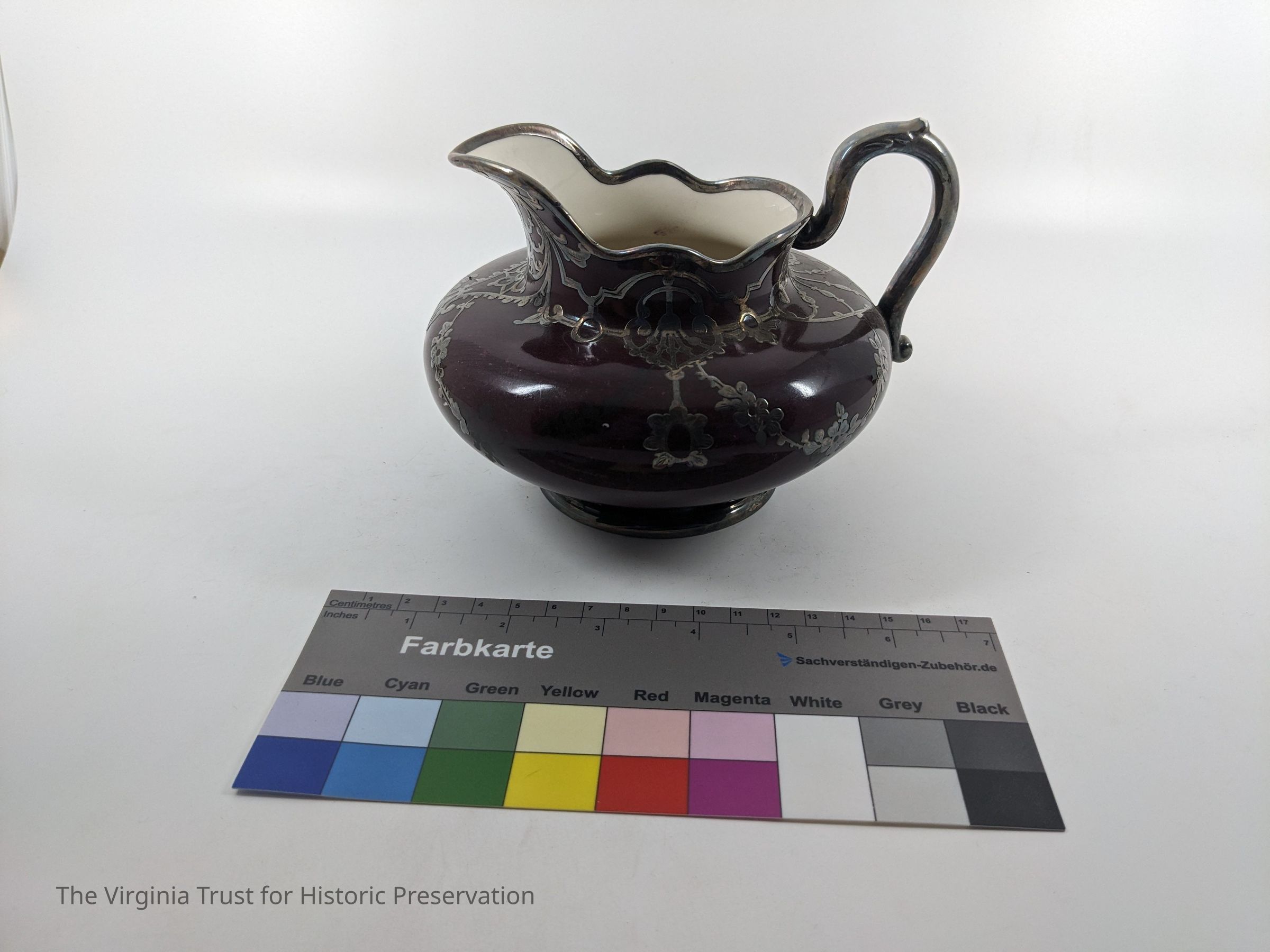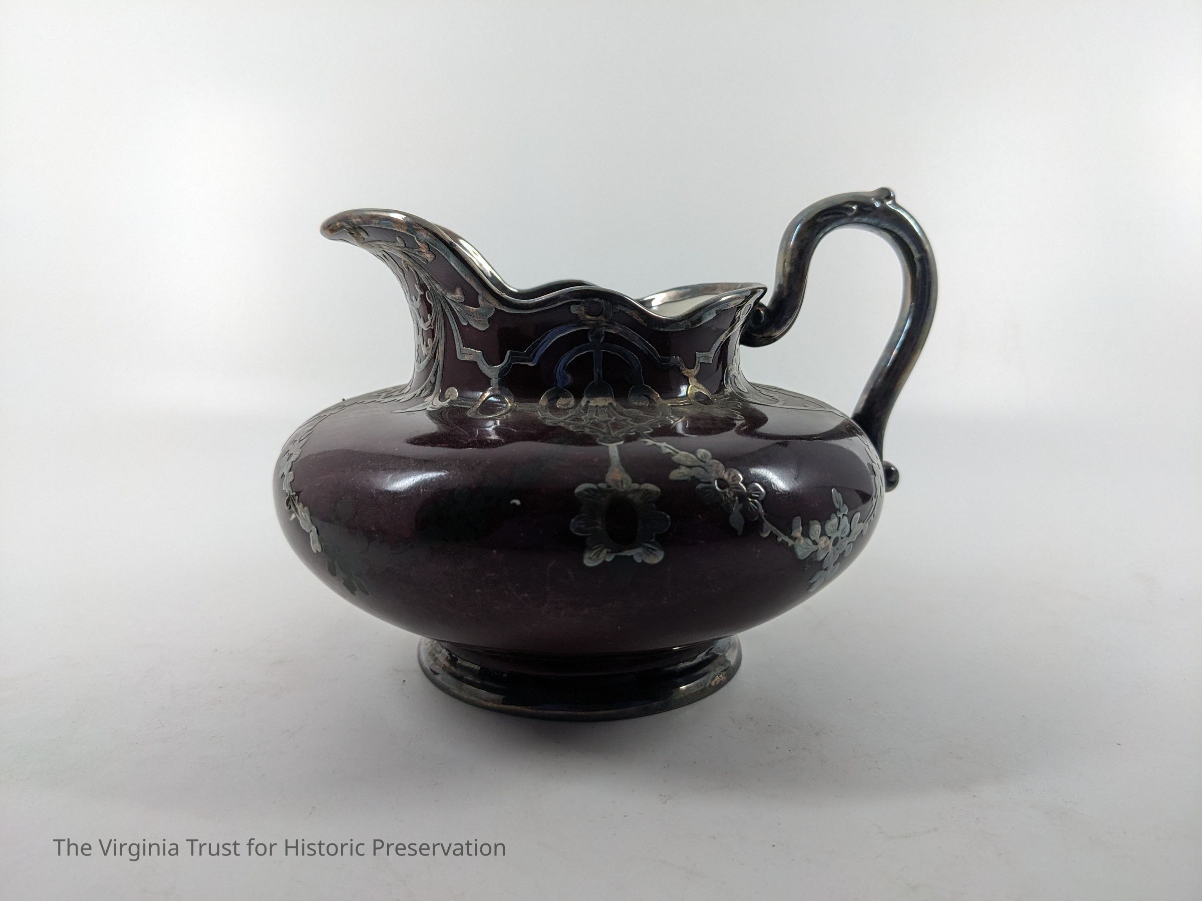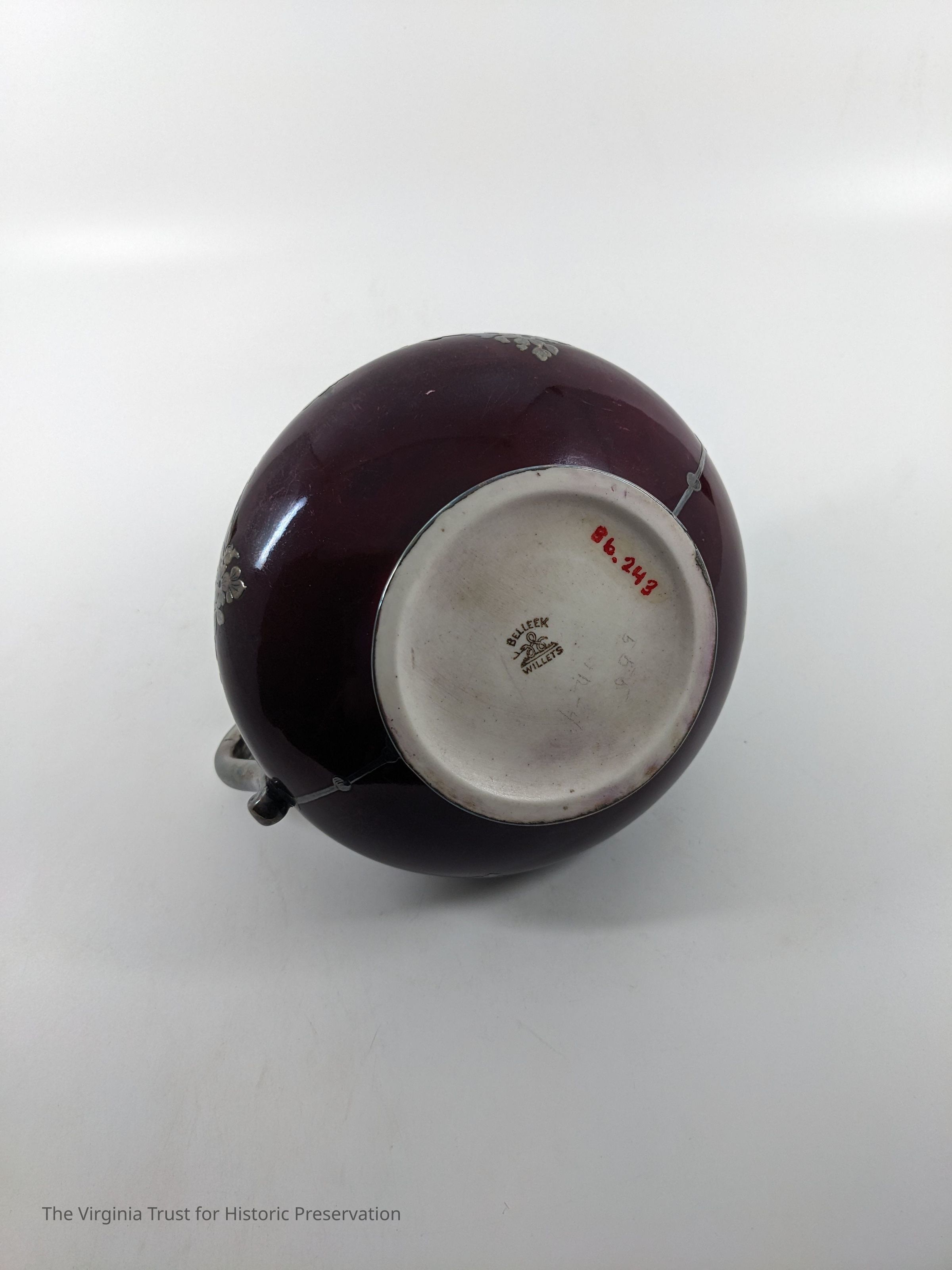 Dark reddish brown with silver overlay. Stamped "Belleek Willets."
