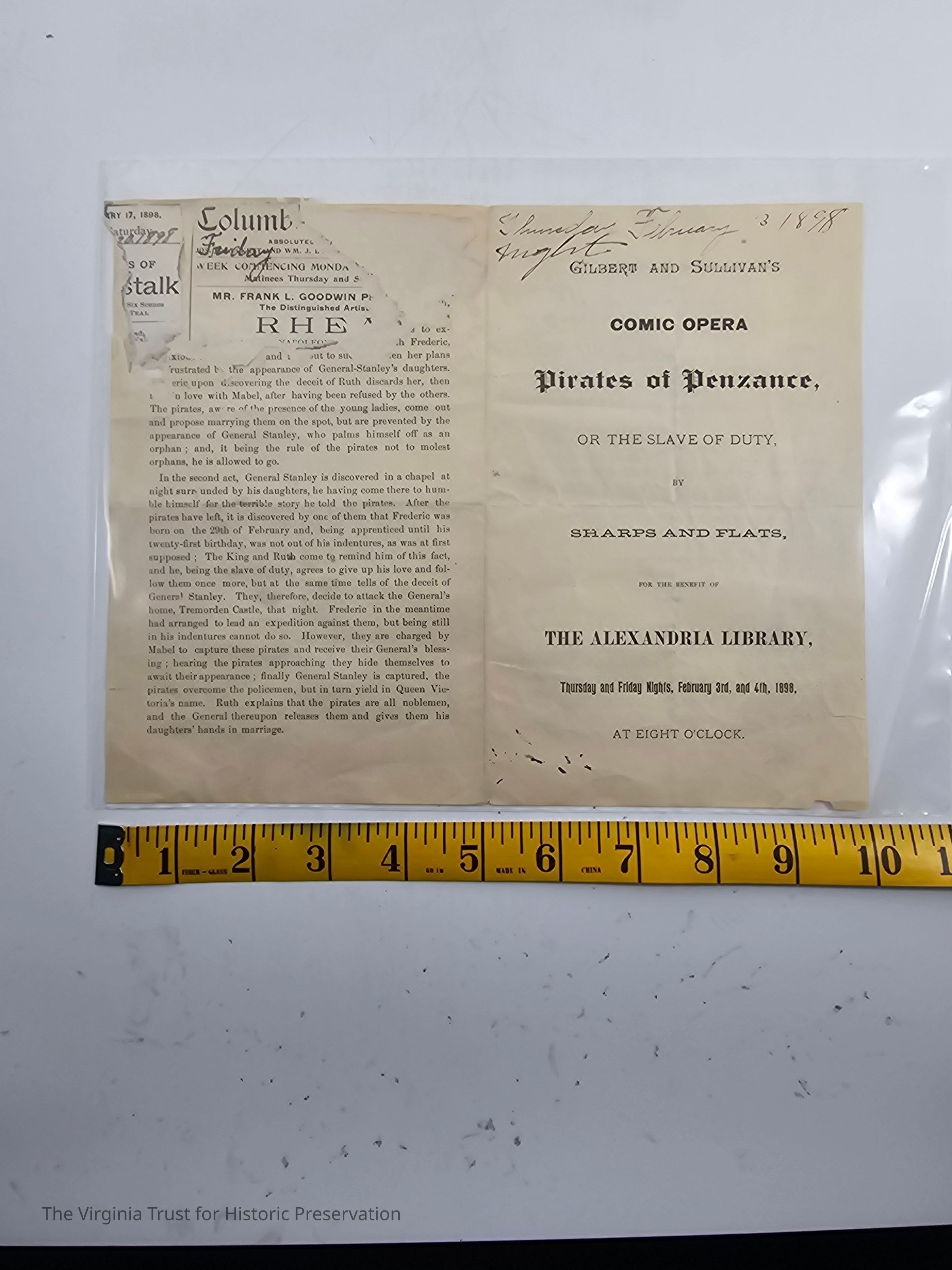 Gilbert and Sullivan's Pirates of Penzance Program Feb. 3, 1898