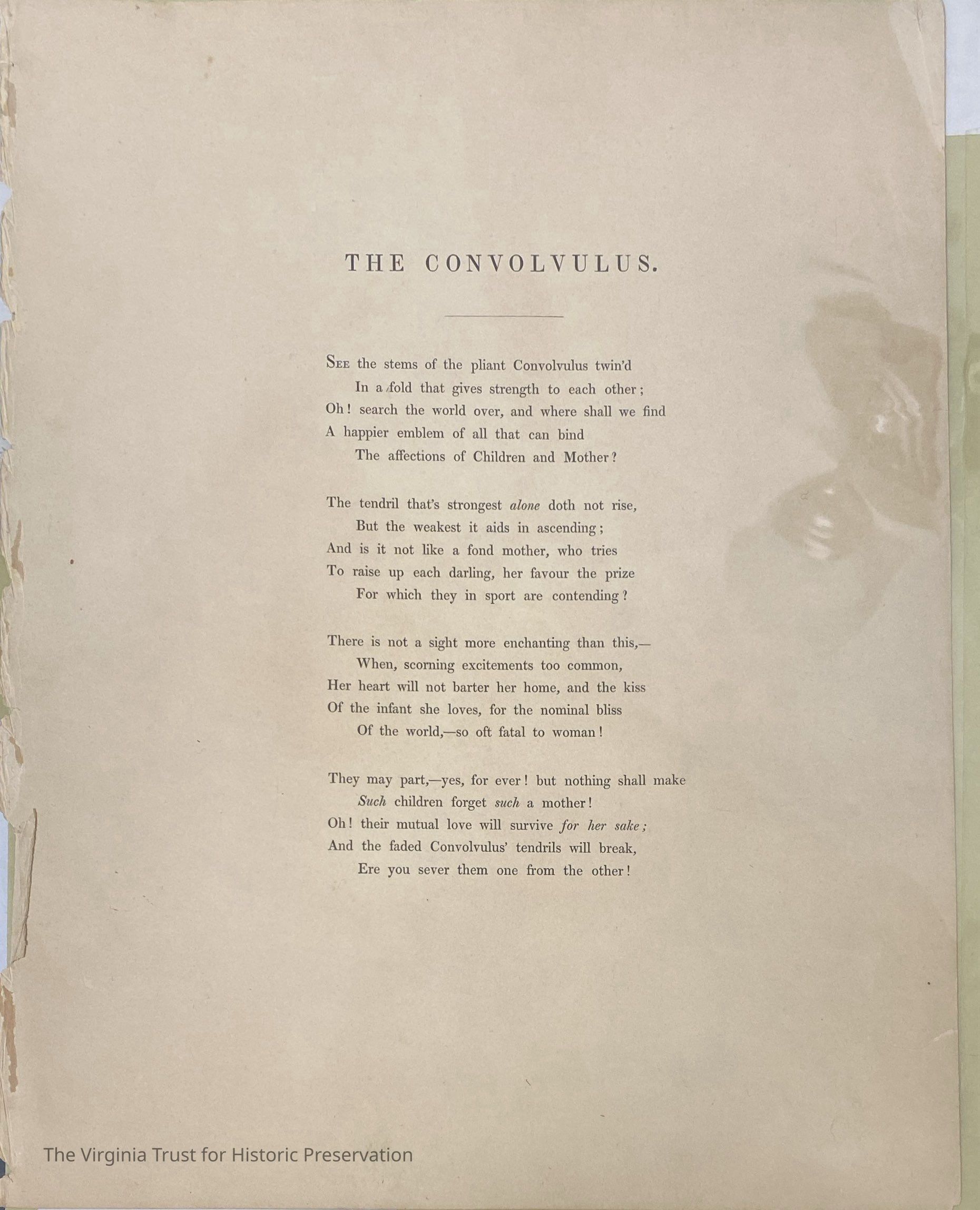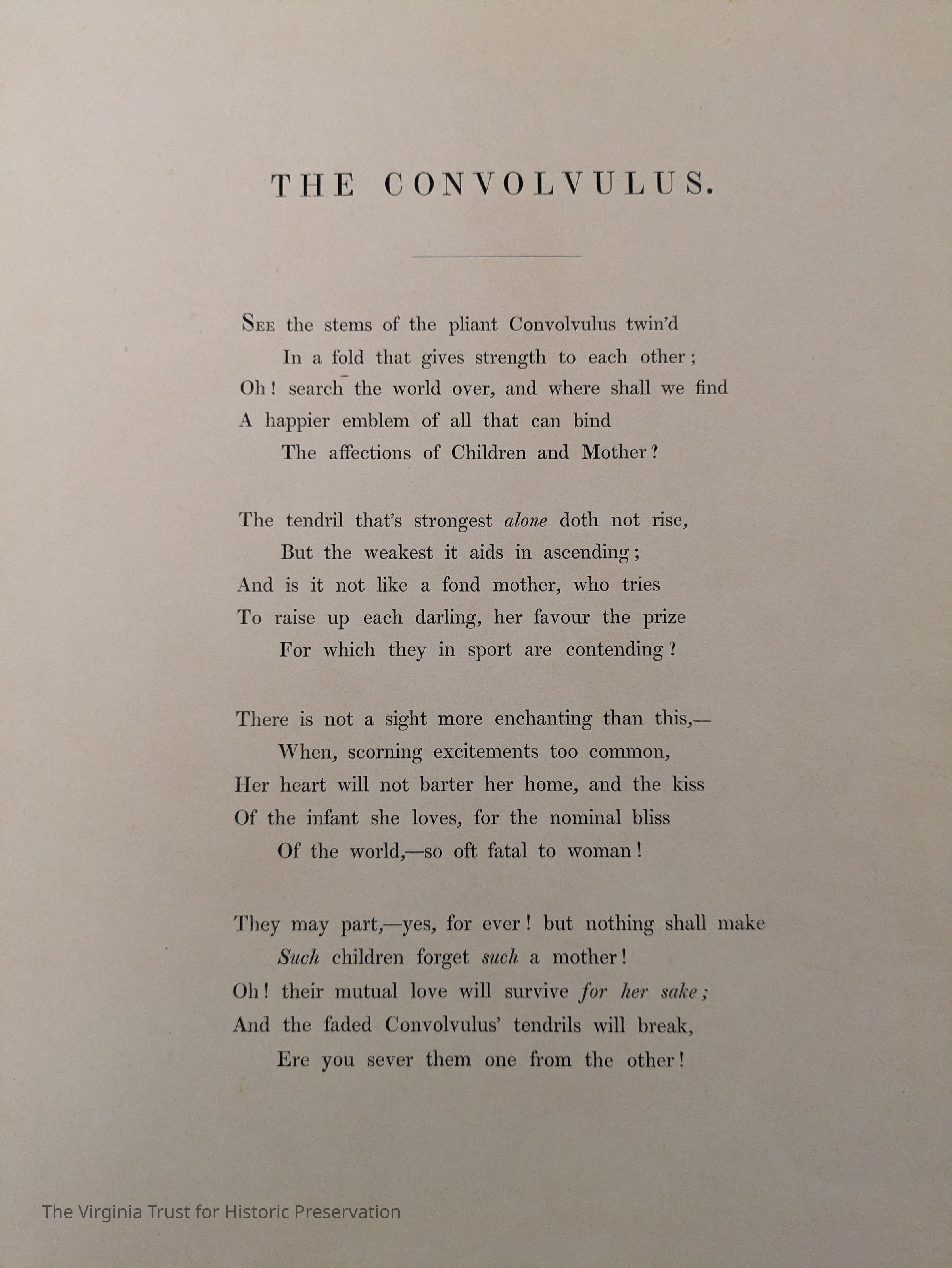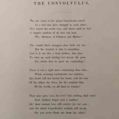 The poems come from a book titled "Flowers of Loveliness; Twelve Groups of Female Figures, Emblematic of Flowers" Designed by Various Artists with Poetical Illustrations, by Thomas Haynes Bayle, Esq. First published in London by Ackermann and Company, Strand, in 1837