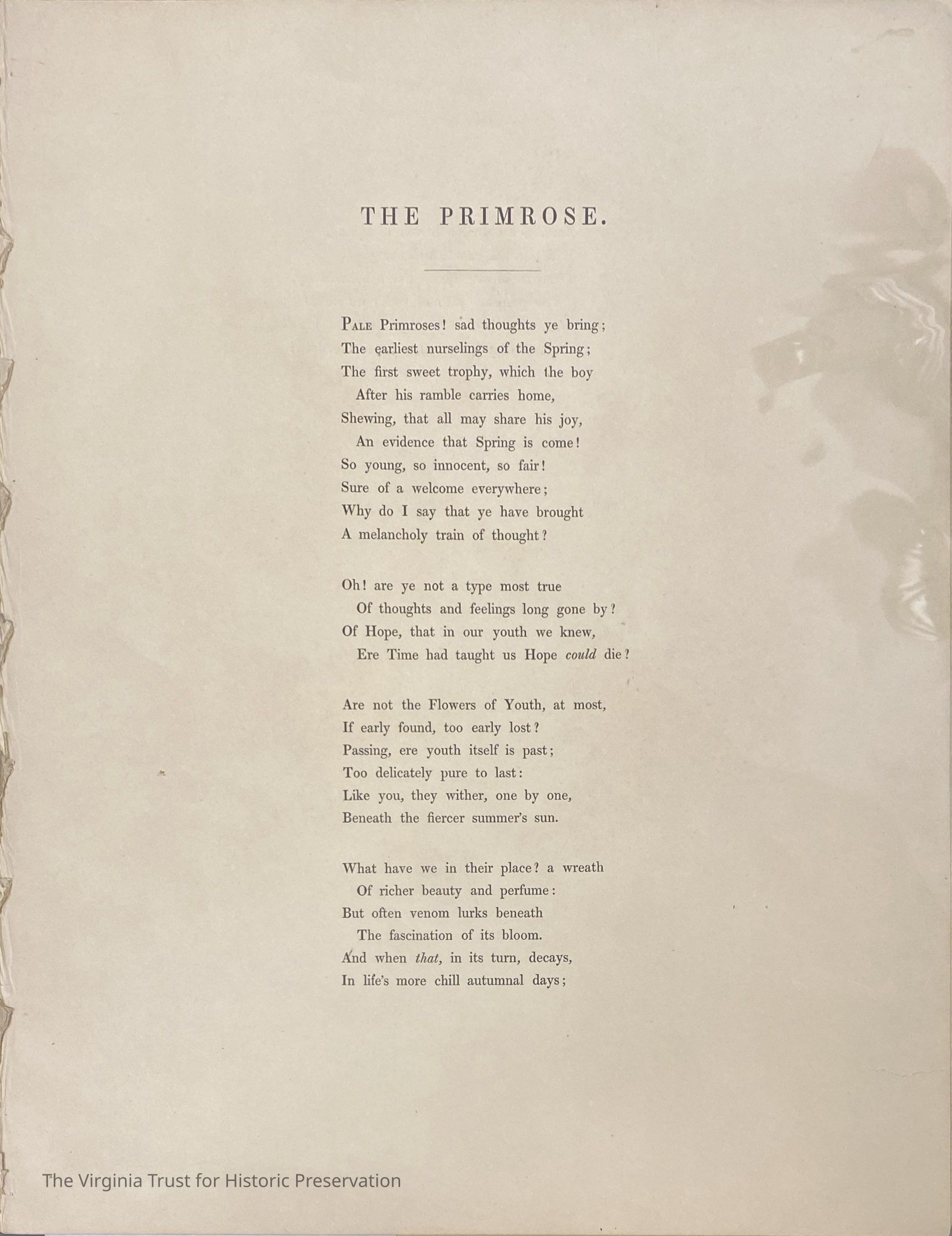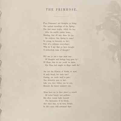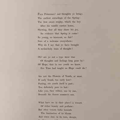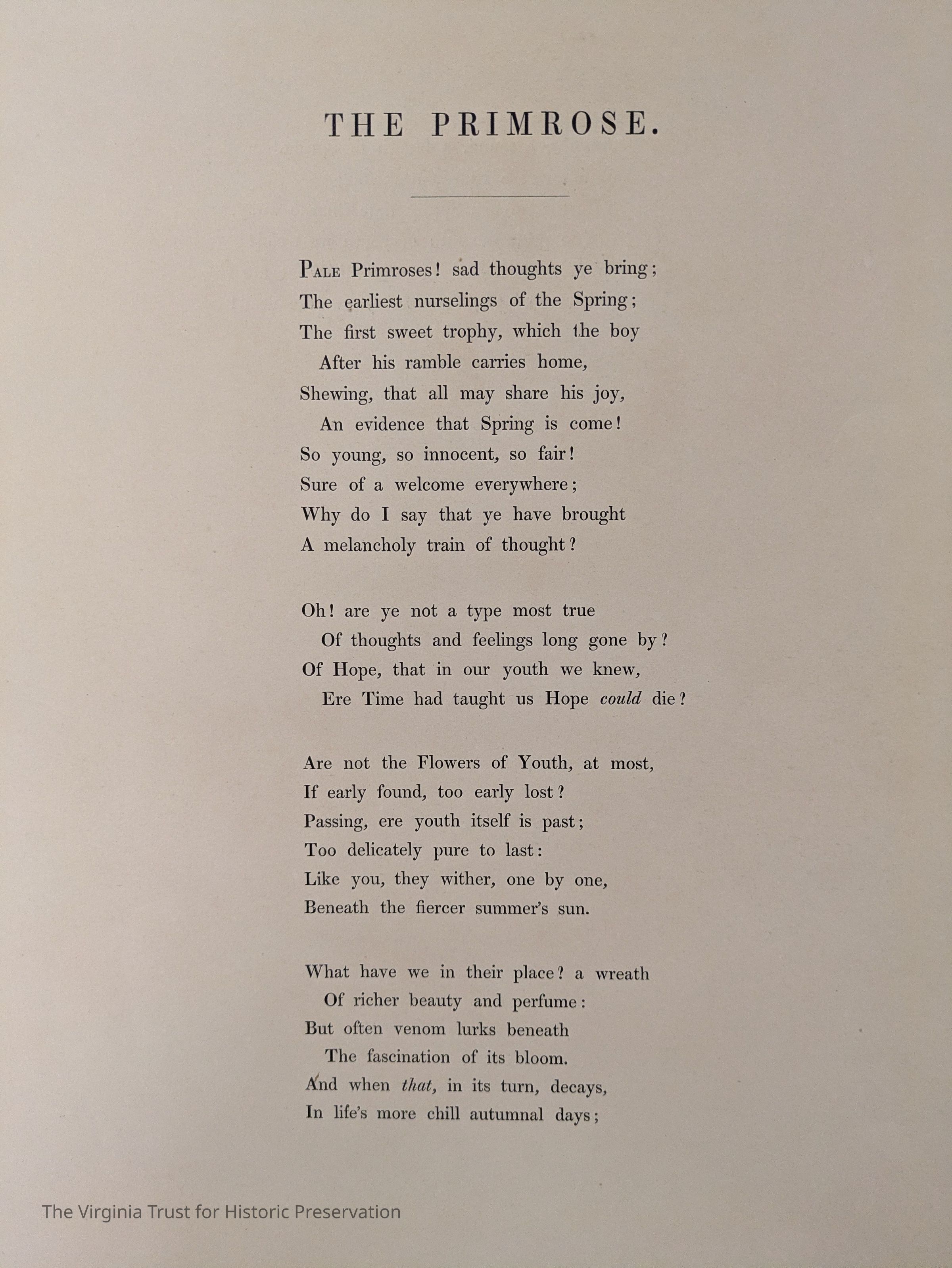 The poems come from a book titled "Flowers of Loveliness; Twelve Groups of Female Figures, Emblematic of Flowers" Designed by Various Artists with Poetical Illustrations, by Thomas Haynes Bayle, Esq. First published in London by Ackermann and Company, Strand, in 1837